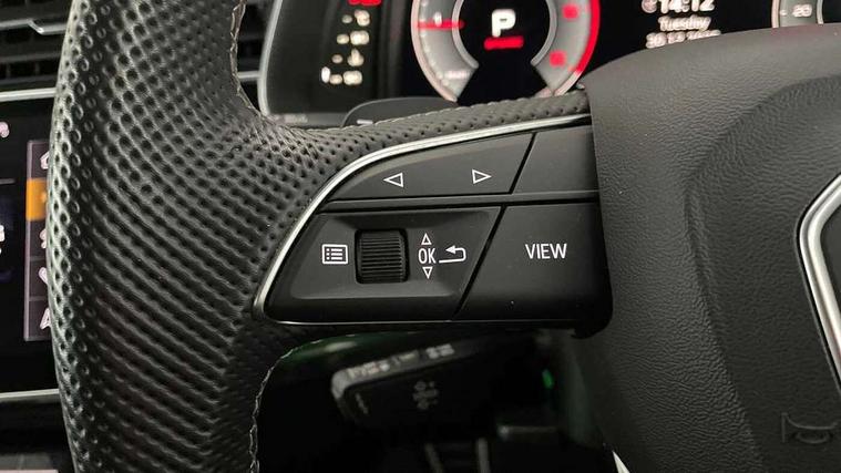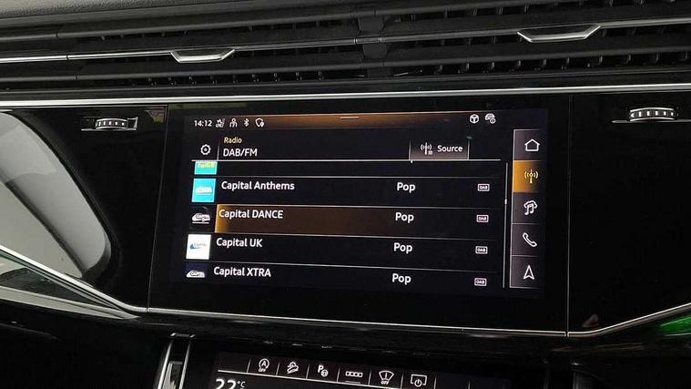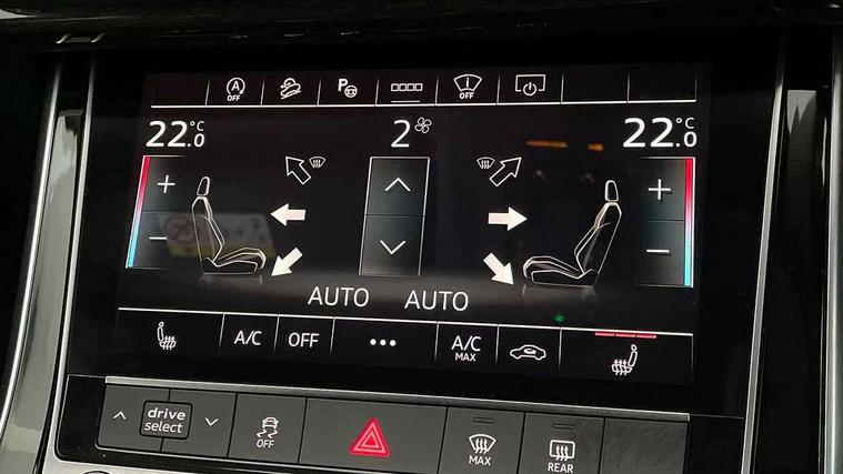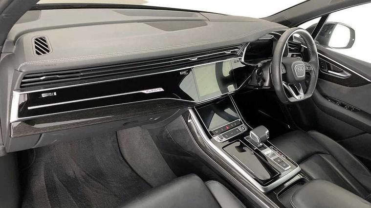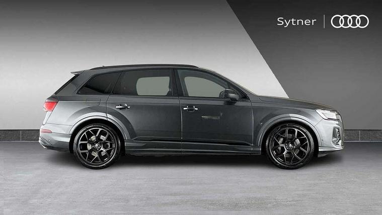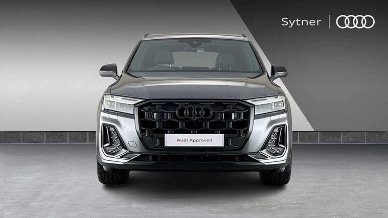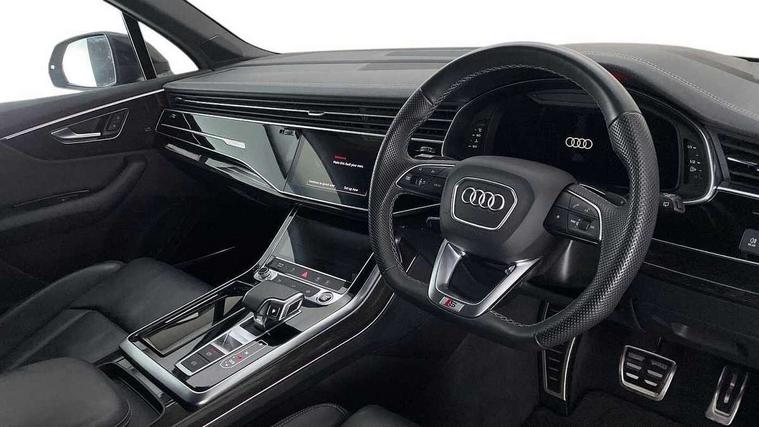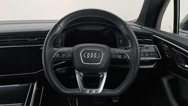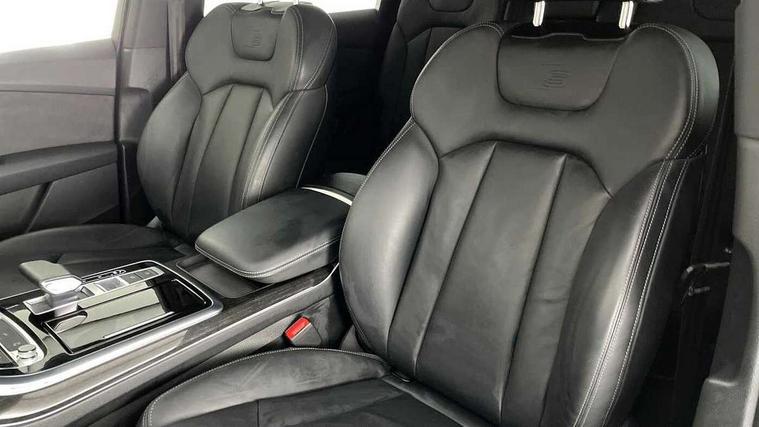 Audi connect safety and service (e-call), Audi connect with Amazon Alexa Integration, Audi drive select (Auto, Comfort, Dynamic, Efficiency, Individual, Off-road and All road), Audi phone box light with wireless charging, Audi virtual cockpit - 12.3" high-resolution LCD display with fully customisable instrument cluster, Bluetooth interface, Camera based traffic sign recognition, Electromechanical power steering, MMI navigation plus with MMI touch screens includes 10.1" and 8.6" screens with haptic feedback, Natural voice recognition, Operating buttons in Matte black, Parking system plus with 360 degree display (front, rear and side sensors) - acoustic and visual park assist system, Power operated tailgate, Rear view camera, Smartphone interface includes wireless Apple carplay/Android Auto, Start/stop system, 48V Mild hybrid technology, Adaptive air sports suspension, Quattro all wheel drive with self locking centre differential, Audi music interface - front 2 USB-C ports with charger and data functions, Audi sound system with 6 channel amplifier, 180 watt amplifying capacity and 10 loudspeakers including subwoofer, DAB digital radio module, Audi Beam uses LEDs to project S emblem with red rhombus onto the ground when opening the side doors (front/rear), Auto dimming frameless rear view mirror, Black exhausts, Black roof rails, Electrically adj heated/folding + automatically dimming exterior mirrors with memory + automatic kerb side function for passenger side exterior mirror, Heat insulating glass in windshield, Integrated LED indications in door mirrors, LED 3rd brake light, LED daytime running lights, LED rear tail lights, Loading edge protection in stainless steel, Matrix LED headlights with dynamic front and rear indicators, Privacy glass - dark tinted rear and rear side windows from B-pillar backwards, Rear side wing doors, Rear wiper, 2 seat bench in 3rd row, 2 zone automatic climate control, 3 seat bench in 2nd row, 7 seat layout with ISOFIX points for the front passenger seat and rear passenger seat, Black cloth headlining, Comfort front centre armrest, Electric adjustable front seat with 4 way lumbar support, driver memory functionality, Folding rear seats, Front head restraints, Front/rear floor mats, Heated front seats, Illuminated door sill trims with S logo, ISOFIX child seat mounting for front passenger seat and 2 outer rear seats with top tether child seat mounting for all 3 rear seats, LED interior ambient lighting, Luggage compartment cover, Luggage compartment sill protection in stainless steel, Rear head restraints, Single front passenger seat, Stainless steel pedals, Sunvisors with illuminated vanity mirrors, Black styling pack plus - Q7, 3 point seatbelts on all rear seats, Audi pre sense front, Child locks on rear doors, Convenience key with safelock and gesture tailgate, Driver and front passenger, front side and curtain airbags, Electromechanical parking brake, Electronic Stabilisation Control (ESC) including ABS, ASR and EDL, Extended pedestrian protection measures, Hill hold assist, Seatbelt reminder, Tyre pressure loss indicator, Warning triangle and first aid kit, Anti theft alarm with tow away protection, Anti-theft wheel bolts and wheel loosening detection, Keyless Go, Remote central locking, Polished oak trim with grey finish inlay, Tool kit, Tyre repair kit,