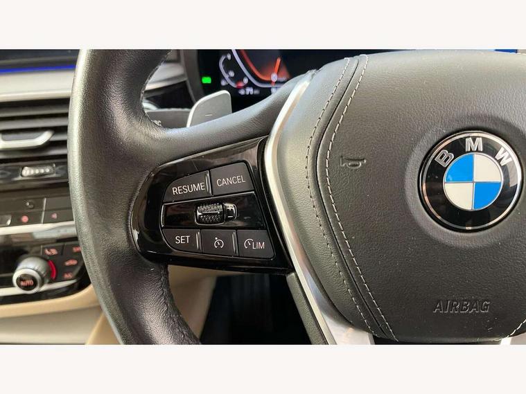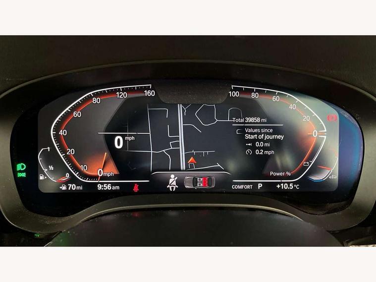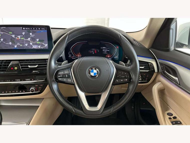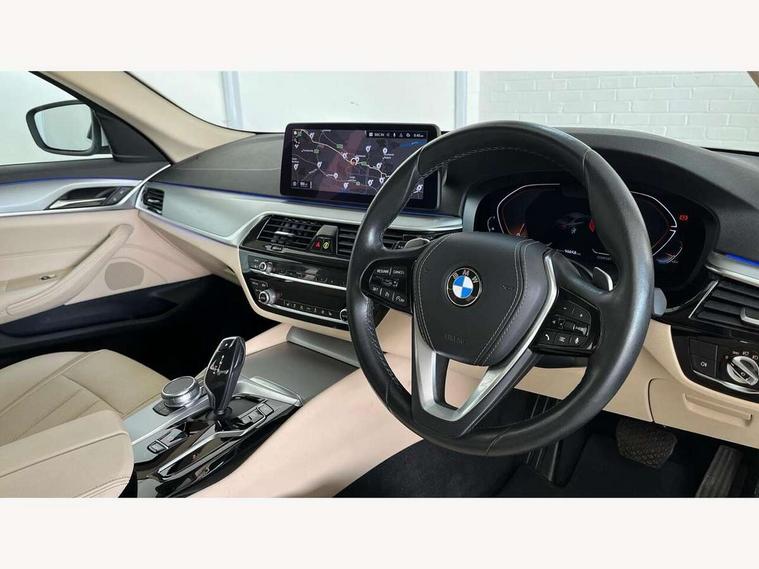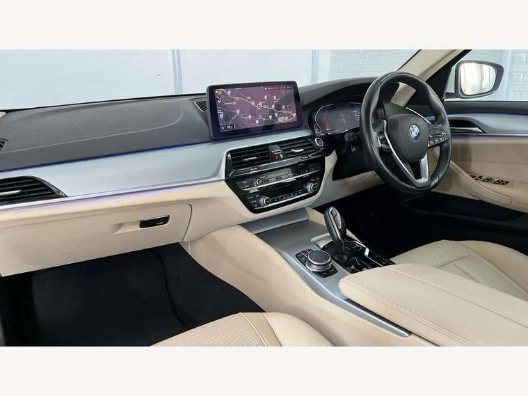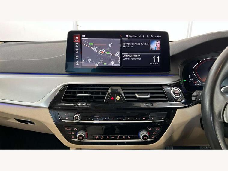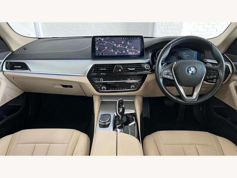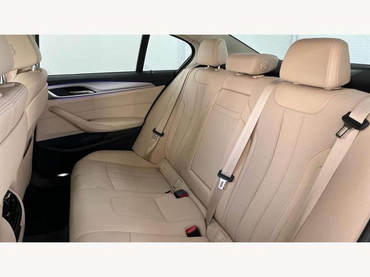 32GB hard disc drive (HDD) memory, Active Guard, BMW ConnectedDrive online services, BMW Live Cockpit Professional sat nav system with 12.3" instrument display and high resolution control display, BMW Teleservices, Brake pad wear indicator, Driving experience switch, eCall emergency call system, Electric Power Steering (EPS) with Servotronic, iDrive controller with shortcut buttons, Intelligent emergency call, Multifunctional instrument panel, Oil sensor for level and grade, On board computer inc. average speed, fuel consumption, liquid crystal Info display, journey computer, outside temperature display, personal profile, On-board diagnosis - OBD, Powered by Operating System 7.0, Service interval indicator, Stop/start button, 48V Mild hybrid technology, Drive performance control with ECO PRO comfort + sport mode, Engine cover with twin turbo designation, Petrol Particulate Filter, Steptronic sport transmission with gearshift paddle switches on steering wheel, DAB Digital radio, Favourite buttons, Acoustic glazing, All round anti-corrosion system, Automatic windscreen wipers and automatic headlight, Automatically dimming rear view mirror, Body colour door handles, Body coloured bumpers, Chrome exterior trim in kidney grille, air breather, window surround and window recess cover, Door handle illumination, Dynamic brake lights with LED technology, Electric front and rear windows with fingertip open/close + anti-trap facility and comfort closing function, Electrically adjustable and heated exterior mirrors includes integrated direction indicators and automatic parking function, Folding exterior side mirror with auto- dimming, Follow me home headlight function, Heated windscreen washer jets, High gloss black active air stream kidney grille, LED daytime running lights, LED third brake light, Preparation for high beam assistant, Rear boot, Rear side wing doors, Trapezoidal visible exhaust tailpipes, 12V power socket in front and rear, 3 seat bench in 2nd row, Armrest - front and rear integrated door trim, centre console includes storage compartment, rear centre includes 2 cupholders, Child seat ISOFIX attachment with rear outer seats includes top tether, Cup holders (2 front and 2 rear), Door sill finishers with BMW designation, Driver's lumbar support, Front and rear footwell lights, Front reading lights, Height and length adjustable steering column and activation via lateral lever on the steering column, Lockable glove compartment with light, Multifunction controls for leather steering wheel, Rear headrests, Single front passenger seat, Three spoke sport leather steering wheel, Velour floor mats, Ambient lighting pack - 5 Series, Connected package professional - 5 Series, Parking assistant pack - 5 Series, Airbags - driver/front passenger, rear and side, first and second row seats head airbags, front passenger seat airbag deactivation, Anti-lock braking system (ABS), Automatic Stability Control (ASC), Brake assist function, Brake energy regeneration, Cornering brake control (CBC), Crash sensor activating central locking release, hazard warning lights, fuel cut off and interior lighting, Deformation zones - front and rear with door reinforcements and bumpers up to 2.5 mph, DSC - Dynamic Stability Control, Dynamic brake control, Dynamic Traction Control - DTC, Electromechanical parking brake with automatic drive away release and auto hold function, Electronic brake force distribution, Engine drag torque control, Front and rear brake discs with interior ventilation, Front head restraints with anti-whiplash, Hill start assist, Mechanical child proof lock on rear doors, Passive protection for pedestrians, Rear door child safety locks, Side impact protection, Three point seat belts for all four seats, Two tone horn, Tyre pressure indicator, Warning triangle and first aid kit, Alarm system (Thatcham 1) with remote control and electronic engine immobiliser, Locking wheel bolts, Tyre repair kit,