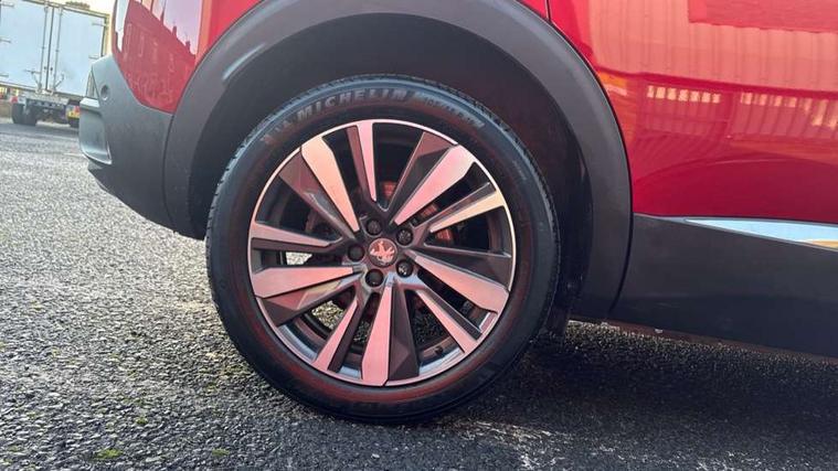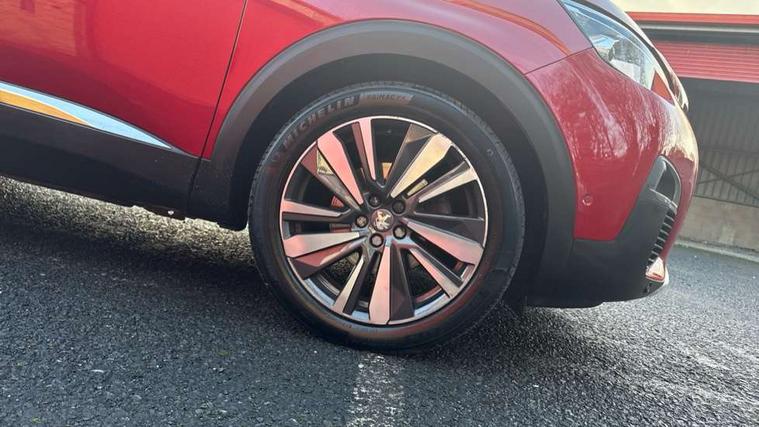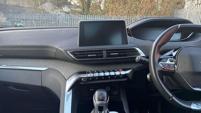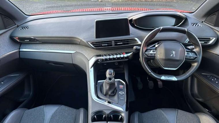 'Lights On' Reminder warning buzzer, 3D connected navigation + voice control + Peugeot connect SOS and assistance, Bluetooth telephone facility, Digital clock, Exterior temperature indicator with ice warning, Front and rear parking sensors, Lane departure warning system, Mirror screen with mirror link, apple carplay and android auto, Multi function trip computer, PEUGEOT i-Cockpit with 8.0" capacitive touchscreen in centre console, PEUGEOT i-Cockpit with compact sports steering wheel, PEUGEOT i-Cockpit with configurable 12.3" Head-up digital instrument panel, Smartphone charging plate, Speed limit recognition and recommendation, Sports button, Dynamic stability control and electronic anti-skid system, DAB Digital radio, Steering wheel mounted controls, USB socket, 2 X Rear number plate lights, Aluminium longitudinal roof bars, Auto self levelling headlights, Automatic triggered rear windscreen wiper in reverse gear, Black and chrome front wing trim, Body colour door handles, Body colour rear spoiler with stainless steel edging trim, Body coloured bumpers, Body protectors (bottom of front and rear bumpers + wheel arches + protection at bottom of doors) in black, Chrome front fog light trim, Chrome rear bumper facia, Chrome side window trim, Dark tinted rear side windows + tailgate window, Door mirror mounted LED Peugeot lion approach lights, Electric operated/heated door mirrors, Front windscreen wiper with magic wash cleaning system, Full LED headlights with LED fog lights with static cornering function, sports front bumper and grille, Gloss black B and C pillar and aerodynamic deflector trim, Gloss black rear cluster connecting strip, Gloss black windscreen surround, GT Line emblem in satin copper (front wings and tailgate), Headlights left on audible warning, Heated rear windscreen with integrated antenna, LED daytime running lights, LED sequential scrolling front indicators, LED side indicator lights integrated into door mirrors, Lion grey front bumper scuff plate, Nera black door mirrors, One touch electric front/rear windows with pinch protection, Panoramic opening glass roof, Power folding door mirrors with blind spot detection indicator and auto dipping function in reverse gear, Radiator grille in chrome edge trim with chequered design and black 'PEUGEOT' lettering, Rear LED Peugeot signature 'Claw Effect' lights, Stainless steel roof arches, Twin exhaust tailpipe, 1/3 to 2/3 split folding rear seats, 12V Sockets in dashboard, rear cabin and load area, 2 cupholders in front centre console, 2 rear reading spotlights, 230V socket on rear centre console, 2x Rear coat hooks, 3x Isofix child seat fittings in the front passenger and outer rear seats, 4 Grab handles retractable and damped, Aikinite stitching in armrest, gear lever and dashboard facia, Blue ambient lighting for connecting zone, Blue ambient lighting to front door panels, central storage and cupholders, Blue ambient lighting to head up instrument panel, Centre front armrest with butterfly wing opening and illuminated storage compartment, Driver and front passenger seat height adjustment, Driver seat manual adjustment, Dual zone automatic climate control, Electric power steering with reach and rake adjustable steering column, Fixing rings 4 in load compartment, Flocked front door pocket interior with blue ambient lighting, Flocked glovebox interior, Fold flat front passenger seat with picnic table, Footwell illumination, Front interior light with 2 reading spotlights and rear interior light with timer, Front passenger seat manual adjustments, Front seat back map pockets, Gear shift indicator, Illuminated glovebox, Illuminated vanity mirrors, Imila cloth/Leather upholstery, LED interior lighting in storage spaces and load area, Mistral floor mats with Aikinite contrast stitching, Mistral full grain perforated leather steering wheel with aikinite stitch detail and satin chrome 'GT Line' emblem, Rear armrest with ski flap and two cup holders, Rear centre console ventilation system, Reclining front seats, Roof LED interior lighting, Roof lining - Mistral black, Satin chrome dashboard trim, Satin chrome digital instrument panel and touchscreen trim, Satin chrome front door panel recess trim, Satin chrome gear lever, Satin chrome interior door handles, Satin chrome scorpion's tail and toggle switch trim, Seatbelt not fastened audible and visual alert for front seats, Seatbelt unfastened on the move audible and visual alert for front and rear seats, Stainless Steel Scuff Plates, Two position boot floor, Driver sport pack - 3008, Safety pack - 3008, Safety Plus Pack - 3008, Visibility pack - 3008, 3x Rear three-point retractable seatbelts with force limiters in the outer rear seats, Adaptive driver and front passenger airbags with passenger airbag deactivation function, Anti lock braking system + Electronic brake force distribution, Driver and front passenger side airbags, Electric child locking functionality on rear windows and doors, Electric parking brake, Front and rear curtain airbags, Front optimised safety headrests and 3 x rear retractable headrests with height adjustable, Front three point retractable seatbelts with pre tensioners and force limiters, Front ventilated disc brakes and rear disc brakes, Height adjustable front seatbelts, Hill start assist, Tyre pressure sensor, Anti theft alarm, Automatic door locking when moving off, Automatic hazard light activation upon heavy brake application, Central locking button on dash, Deadlocks, Electric tailgate with Peugeot open & go system, Electronic immobiliser, Locking wheel bolts, Remote control central locking with two plip keys, Brumeo fabric Dashboard, front and rear door panel finish, 19" Washington two tone diamond cut alloy wheels, Space saver spare wheel,