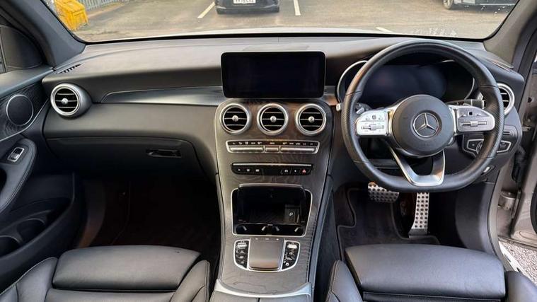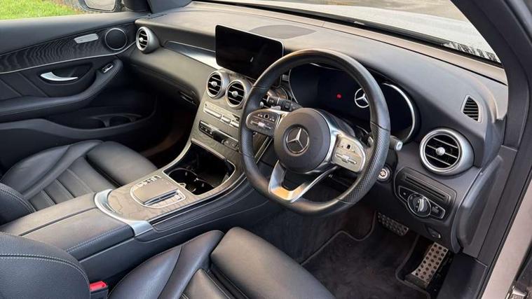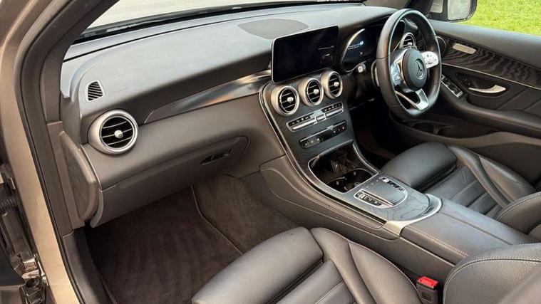 Attention assist, Bluetooth interface for hands free telephone, Collision prevention assist plus, Cruise control with speedtronic variable speed limiter, Direct steer speed sensitive steering, DYNAMIC SELECT with a choice of driving modes (ECO, Comfort, Sport, Sport+ and Individual), Easy pack automatic powered tailgate, ECO start/stop function, Hard disk navigation, Hey Mercedes Voice activation, Instrument cluster with12.3-inch digital instrument cluster display. High resolution instrument cluster screen with choice of three display styles, MBUX augmented reality for navigation, MBUX Interior assistant, Mercedes connect me with remote online services, Multi function trip computer, Outside temperature display, rear seatbelt status indicator, Parktronic system with rear cross traffic alert and drive away assist, Remote boot release, Reversing camera, Service indicator (ASSYST), Smartphone integration with Apple CarPlay and Android auto, Traffic sign assist, Wireless charging, 4MATIC permanent four wheel drive, 66 litre fuel tank, 9G TRONIC plus automatic transmission with steering column gear selector, DIRECT SELECT steering wheel gearshift paddles, Diesel particulate filter, Sports suspension tuned for improved handling and driving dynamics, MBUX multimedia system with DAB digital radio and touchpad including satellite navigation, Media display 10.25-inch touchscreen display, Mercedes Benz sound system (225w) includes mid-range sound system, Pre installation for Mercedes Benz Link, USB ports x 2 in centre console, Adaptive brake lights, Aluminium roof rails, AMG bodystyling - AMG front apron with sporty air intakes and chrome trim element, AMG diffuser-look rear apron with insert in black, Body colour door mirrors, Body coloured bumpers, Electric windows one touch open/close, Electrically adjustable and heated door mirrors, Front, side and rear exterior chrome trim, Headlamp assist automatic headlamp activation, LED tail lamp, Motor way mode function and locator lighting, Multi beam LED headlamps with 84 indiviually control LED, daytime running lamps, Active Light, cornering light, enhanced fog lamp, adaptive Highbeam Assist, Privacy glass with dark glass from B pillar backwards, Radiator diamond grille, Rain sensor windscreen wipers, Range adjustable headlights, Rear wiper, Running boards, Tinted glass all round with single layer safety glass, Two chrome plated tailpipe trim elements, 2 way rear head restraints, 3-spoke multifunction sport AMG steering wheel in black nappa leather with flattened bottom section, chrome insert and perforated leather in grip area, 40:20:40 split folding rear seats, Ambient lighting, AMG floor mats with edging and embroidered AMG lettering, AMG sports seats, Artico man-made leather upper dashboard with contrast topstitching, Automatic child seat recognition sensor, Black roof lining, Dividing net - rear, Double cup holder in centre console, Easy-pack removable load compartment cover, Front armrest with storage box, Front door sills with Mercedes Benz lettering, Front head restraints, Front seats with electric adjust (backrest, height and seat cushion inclination) with 4 way electric lumbar support and manual cushion depth adjust, Heated front seats, Height/reach adjustable steering column, Illuminated and lockable glove compartment, Leather upholstery, Rear top tether child seat ISOFIX attachment, Sports pedals with stainless steel surfaces and rubber studs, Steering wheel with touch control buttons, THERMOTRONIC 3 zone automatic climate control, Interior lighting pack - GLC, Mirror pack - GLC, Storage pack - GLC, 3 rear 3 point seatbelts, Active bonnet, Adaptive brake system with HOLD function and brake drying in the wet, ASR, Black seat belts, Brake calipers with Mercedes-Benz lettering + perforated brake discs, Child proof door locks, Dual-stage airbags - driver and front passenger, driver knee bag and window bags for driver, front passenger and rear passengers, Electronic parking brake, Electronic stability programme (ESP) with curve dynamic assist and cross wind assist, Front and rear seatbelt reminder, Front passenger seat occupancy sensor, Hill hold function, Tyre pressure monitoring system, Warning triangle and first aid kit, Alarm system/interior protection/immobiliser, Automatic door locking, KEYLESS-GO starting function, Remote central locking, Open pore black ash wood trim, 20" AMG multi spoke design alloy wheels painted in titanium grey with high sheen finish, Run flat tyres,