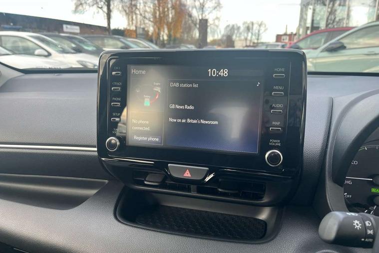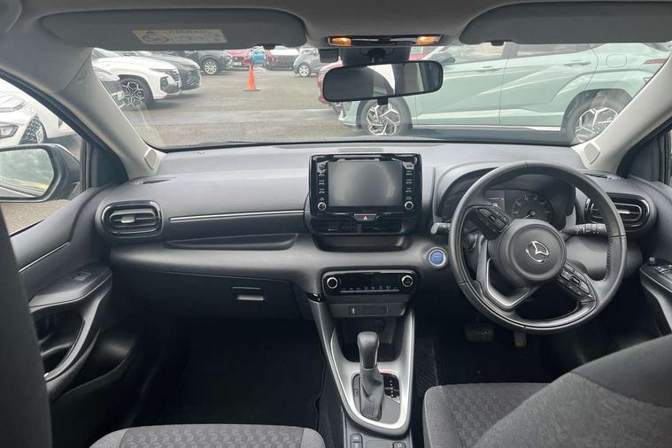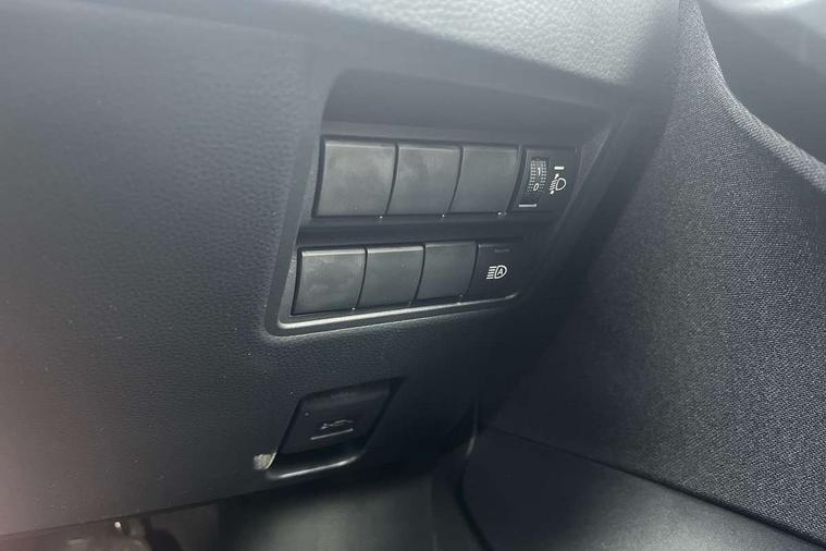 Adjustable speed limiter, Analogue speed display meter, Apple car play/Android Auto, Drive mode selection and paddle shift, Dynamic radar cruise control, E-call with GPS, Emergency stop signalling system, Engine start/stop button, EV drive mode, Hybrid system indicator, Integrated bluetooth, Lane tracing assist includes Lane centering, Lane departure alert, Steering assist and Vehicle sway warning, Multi-information display, PAS, Pre-collision system enhanced with emergency steering assist, Reversing camera, Road sign assist - RSA, Service indicator, Tailgate, Trip computer, i-stop, AM/FM/DAB radio with 6 speaker audio system and 8" colour screen centre display, Steering wheel mounted audio/bluetooth controls, Automatic high beam - AHB, Black lower window garnish, Body coloured electrically adjustable heated door mirrors, Body coloured front bumper, Body coloured rear bumper with satin black lower mouldings, Coming/leaving home lighting function, Dusk sensing headlights, Front and rear electric windows, Gloss black rear roof spoiler, Halogen front fog lights, Halogen headlights with manual headlight levelling and Halogen daytime running lights, LED rear combination light with halogen turn signals, LED third brake light, Rain sensing front wipers with adjustable sensitivity and speed, Rear side wing doors, Rear wiper, Satin black front grille, Shark fin antenna, 12V power outlet, 3 seat bench in 2nd row, 60/40 split rear seats, Climate control air conditioning, Cloth upholstery, Door panel in soft touch material, Driver, front passenger and two rear door storage, Driver, Front passenger and two rear grab handles with coathooks, Drivers seat manual slide recline and height adjustment, Drivers/front passengers with covered vanity mirrors, Front centre armrest, Front centre storage with two cupholders, Front head restraints, Glovebox, Interior courtesy light, ISOFIX child seat anchorage points attached on outer rear seats, Leather handbrake, Leather steering wheel and gear knob, Luggage compartment light, Single front passenger seat, Three height adjustable rear head restraints, Tilt/telescopic adjustable steering wheel, USB input, 2x3 point front seatbelts with pre-tensioners, 3 point seatbelts on all rear seats, Anti-lock braking system (ABS), Collision mitigation braking system, Driver and passenger central airbags, Dynamic stability control + Traction control, Electronic parking brake with auto-hold and auto-disengage function, ESP, Front and rear curtain airbags, Front driver, passenger and rear seat seatbelt warning, Front dual stage driver and single stage front passenger airbags, Front side airbags, G-Vectoring control plus, Hill start assist control (HAC), Manual child lock in rear doors, Passenger airbag cut-off switch, Regenerative braking system, Tyre pressure monitoring system, Deadlocking system, Smart keyless entry, Thatcham approved immobiliser and alarm, 15" Alloy wheels, Emergency tyre repair kit,