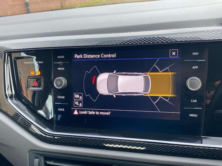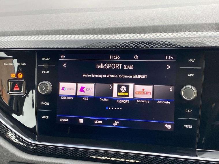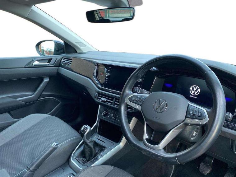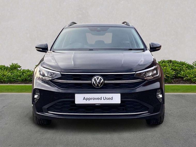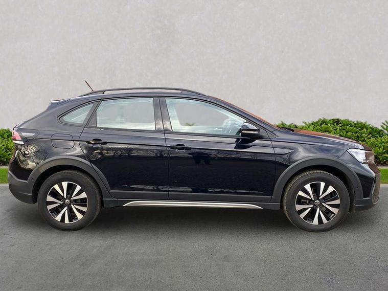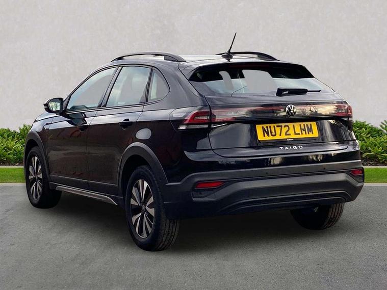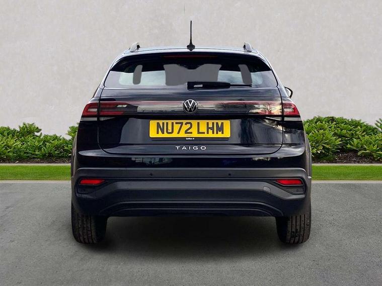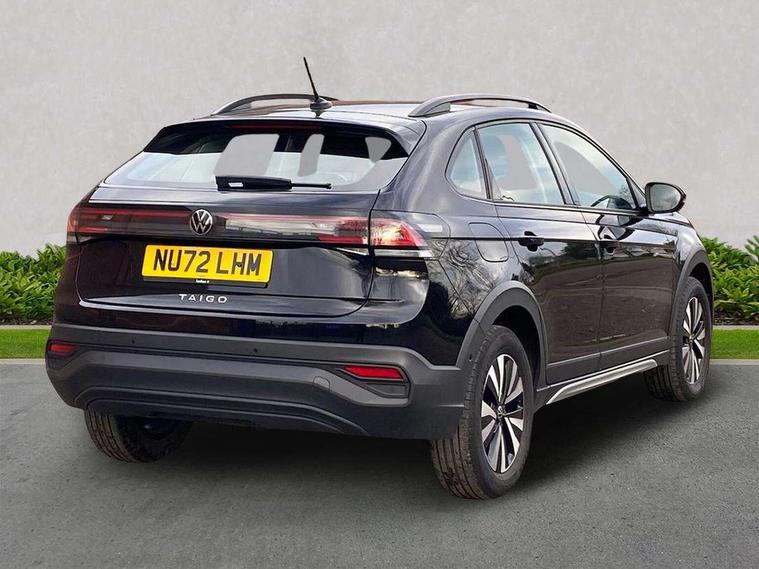 Driver alert system, e-Call (emergency call), Power Steering, Travel assist including emergency assist, Washer fluid level indicator, Wireless Charging including Bluetooth, Start-stop system with battery regeneration (recuperation - energy recovery during braking), WeConnect plus, Ambient lighting with logo projection, Aspherical driver's exterior mirror, Auto headlights, Body coloured bumpers, Body coloured exterior mirror housings and door handles, Electric windows, External USB type C socket and charging sockets, Front fog lamps with cornering function, Headlight range control, Heat insulating glass windscreen, LED headlamps, LED rear combination lamp, LED third brake light, Left convex exterior mirror, Power folding adjustable/heated exterior mirrors and front passenger exterior mirror lowering function, Rear fog light on one side, reversing light on both sides, Rear side wing doors, Rear wash/wipe with intermittent wipe setting, 'Slash/ Austin' Cloth upholstery, 12V socket in centre console, 2 front reading lights, 3 rear head restraints, 3 seat bench in 2nd row, Black carpets, Child seat anchor for child seat system i-Size, 2x top tether and child seat anchor in front on front passenger side, Door and side trim panels in titan black, Driver and front passenger seat height adjustment, Front centre armrest, Handbrake lever handle in leather, Height and reach adjustable steering wheel, Leather trimmed gear knob, Leather wrapped multifunction steering wheel, Luggage compartment floor, Luggage compartment light, Lumbar support for driver's and front passengers seat, Seat covers in titanium black, Single front passenger seat, Split folding backrest with centre armrest and unsplit rear seat bench, Storage compartment under front seats, Sun visors with illuminated vanity mirrors, Chrome Package - Taigo, Drivers assistance pack - Taigo, Light and Sight pack including High beam assist - Taigo, 2 x 3-point seatbelts/outer rear seats with ECE label, 3-point seat belts in front with pretensioner and height adjustment, 3-point seatbelt for centre rear seat, Driver and front passenger airbags with front passenger airbag de-activation, front side and curtain airbags, Driver and front passenger safety-optimised head restraints, Electronic stability control, Extended and predictive pedestrian/ cyclist protection, Front and rear disc brakes, Front curtain and side airbags with center airbag, Hill start assist, Manual rear child locks, Single tone horn, Tyre pressure loss indicator, Anti-theft alarm system with interior monitoring, backup horn, and towing protection, Anti-theft wheel bolts, Lava stone black gloss/matt decorative inserts in dash and front door panels, Low rolling resistance tyres,