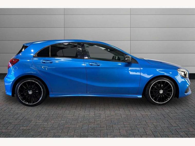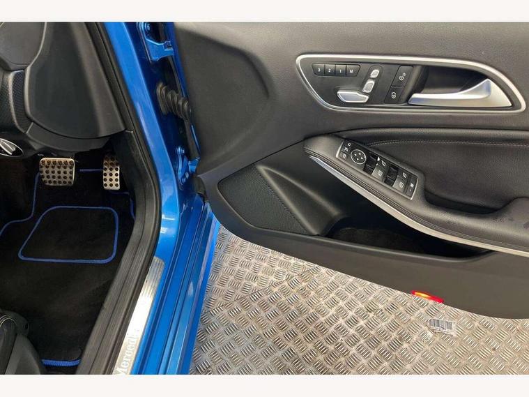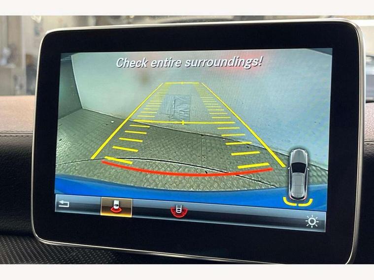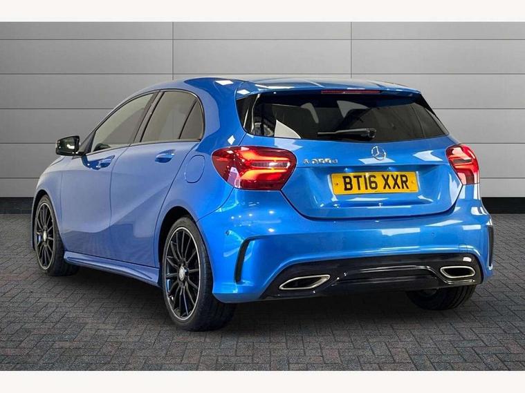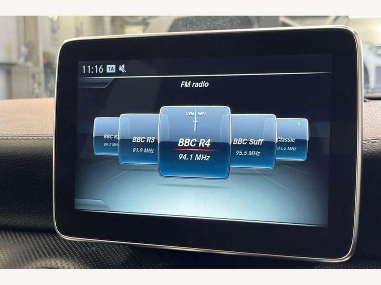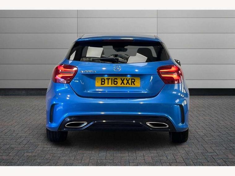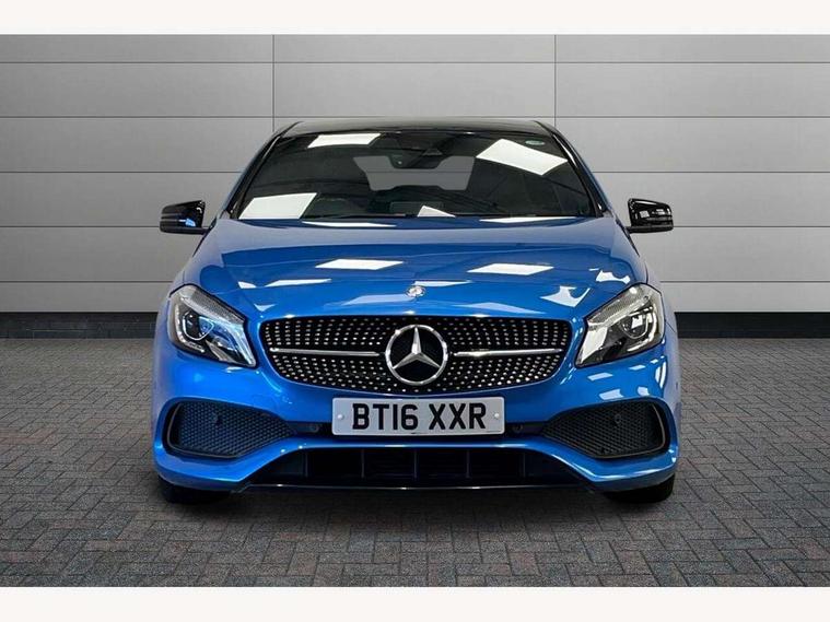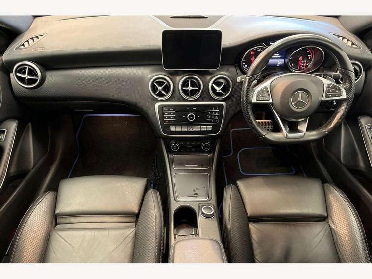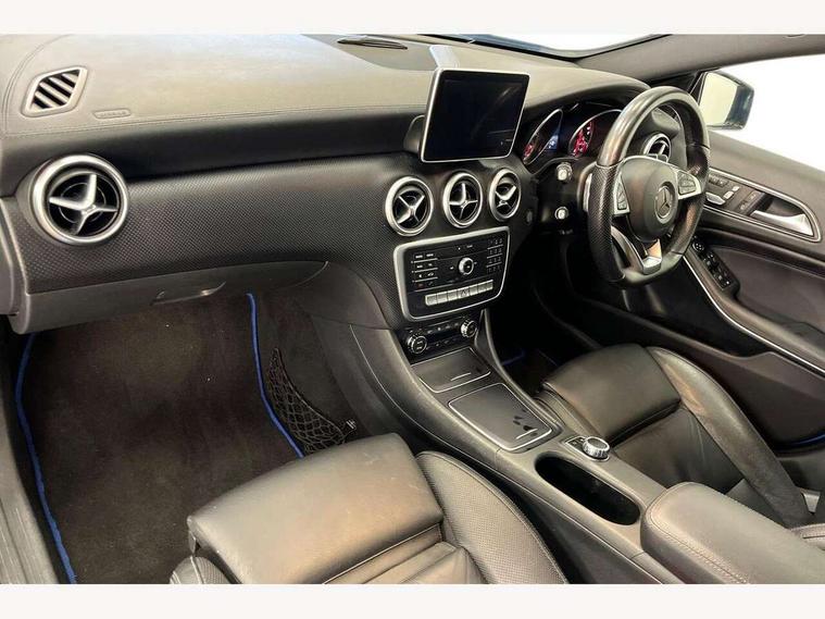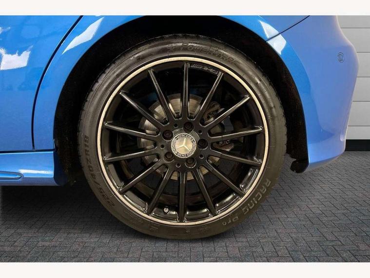 8" colour display screen, Active park assist with parktronic system, Attention assist, Bluetooth interface for hands free telephone, Bulb failure indicator, Collision prevention assist plus, DYNAMIC SELECT with a choice of driving modes (ECO, Comfort, Sport, Sport+ and Individual), External temperature gauge, Low fluid warning light, Reversing camera, Service indicator (ASSYST PLUS), Speed sensitive variable PAS, Trip computer, Lowered suspension, USB port, Adaptive brake lights, AMG body styling, Auto dimming driver's door mirror, Auto dimming rear view mirror, Body colour bumpers, Body colour door handles, Body colour side skirt, Daytime running lights, Electric adjustable heated door mirrors, Electric folding door mirrors, Electric front windows, Electric rear windows, Headlamp assist, Heated rear window with timer, High beam assist, LED Headlights, Panoramic sliding sunroof, Radiator grille with 2 louvres in Silver with chrome trim, Rain sensor windscreen wipers, Rear wiper, Twin Trapezoidal tailpipes, 1/3 to 2/3 split folding rear seats, 12 colour Ambient lighting, 12V socket, 3 Spoke sports multifunction flat bottomed leather steering wheel, 4 way adjustable lumbar support, AMG floor mats with red stitching, Auto Mercedes-Benz child seat recognition sensor, Black headlining, Brushed stainless steel sports pedals, Dual zone automatic climate control, Electric front seats with memory function, Footwell lights, Front and rear reading lights, Front centre armrest with storage compartment, Front head restraints, Front sport seats, Gearshift paddles on steering wheel, Heated front seats, Height adjustable front seats, Height/reach adjustable steering column, Illuminated door sills, Illuminated glovebox, Illuminated storage compartment, Isofix rear child seat preparation, Load securing rings in luggage compartment, Luggage compartment cover, Luggage net under rear parcel shelf, Rear head restraints, Storage compartment under load area floor, Sunvisors with illuminated vanity mirrors, Twin front cupholders, Seat comfort pack - A Class, Stowage Pack - A Class, 3 rear 3 point seatbelts, ABS with Brake Assist, Active bonnet, Adaptive brake system, Brake calipers with Mercedes-Benz lettering + perforated brake discs, Child proof door locks, Crash responsive emergency lighting, Drivers knee airbag, Dual stage driver/passenger airbags, Electronic parking brake, ESP with ASR, Front and rear seatbelt reminder, Front head airbags, Front passenger seat occupancy sensor, Front side airbags, Hill start assist, Tyre pressure monitoring system, Warning triangle and first aid kit, Window airbags, Alarm system/interior protection/immobiliser, Keyless Go access/ignition system, Remote central locking, Carbon effect trim, Chrome air vent surrounds, Tirefit sealant with electric air pump,