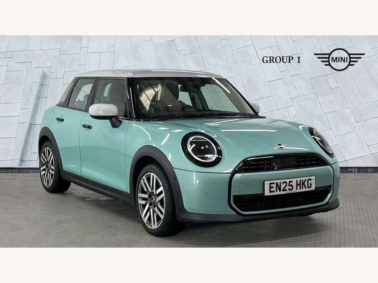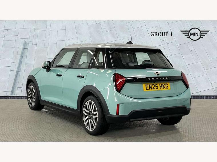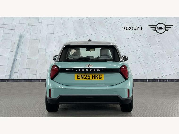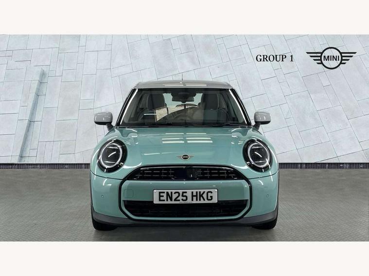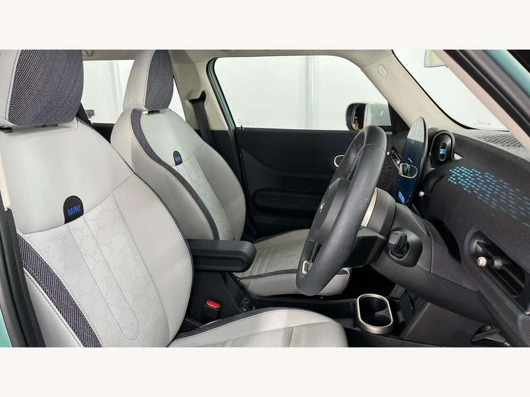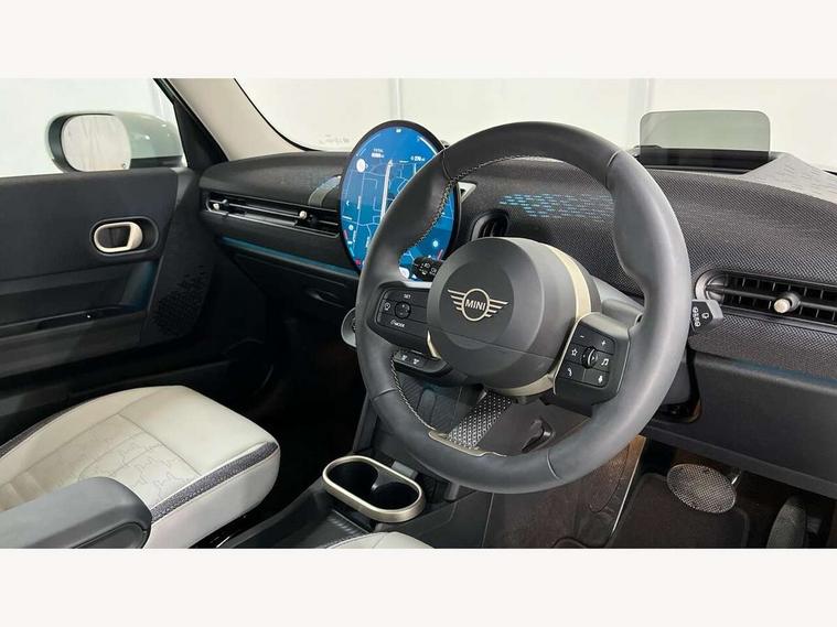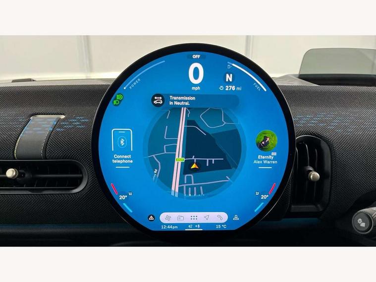 Central toggle bar, Circular OLED Screen, Compatible mobile phone bluetooth with audio streaming, Cruise control, Digital instrument cluster, Electro-mechanical speed dependant steering assistance, Emergency call service, MINI Experience Modes, Mini navigation system, On board computer, Service interval indicator, Tailgate, 7 speed steptronic transmission with double clutch, DAB Digital radio, Personal eSim, Auto headlights, Electric adjustable heated door mirrors, Electric front+rear windows, Heated rear window, Heated windscreen washer jets, LED 3rd brake light, LED daytime running lights, LED Headlights, LED indicator lights, LED rear lights, Rain sensor window wipers, Rear fog lights, Rear side wing doors, Rear window wiper, 2 zone automatic air conditioning, 3 seat bench in 2nd row, 60/40 rear seat bench, Ambient lighting, Cupholders, Front and rear floor mats, Front and rear head restraints, Front compact armrest, Heated steering wheel, Height adjustable passenger seat, Light headliner, Luggage compartment lighting, Single front passenger seat, Sport Vescin Steering Wheel black with vibrant silver accents, Sunvisors with vanity mirrors, Vescin/Cloth upholstery includes dash knit in black with blue accents, Driving assistant pack - Cooper Hatchback, Park assistant pack - Cooper Hatchback, 3 point seatbelts on all five seats, 6 Airbags - front, side, head and seat belt tensioners, Anti-lock braking system (ABS), Child locks on rear doors, DSC - Dynamic Stability Control, Electronic parking brake, Front and rear disc brakes, Front ISOFIX (iSize), Front passenger airbag deactivation, Traction control, Tyre pressure monitoring system, Alarm, Immobiliser, Remote central locking, Tyre repair kit,