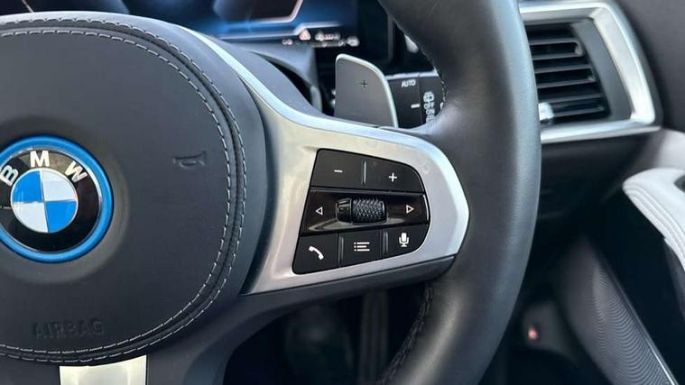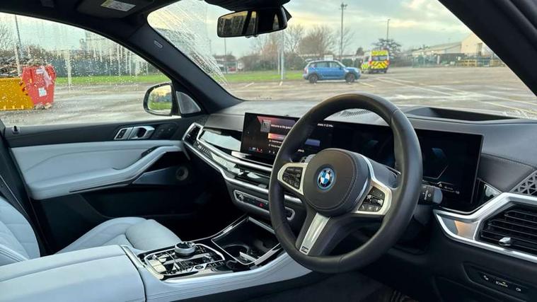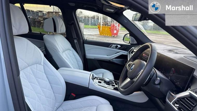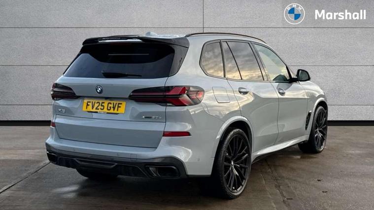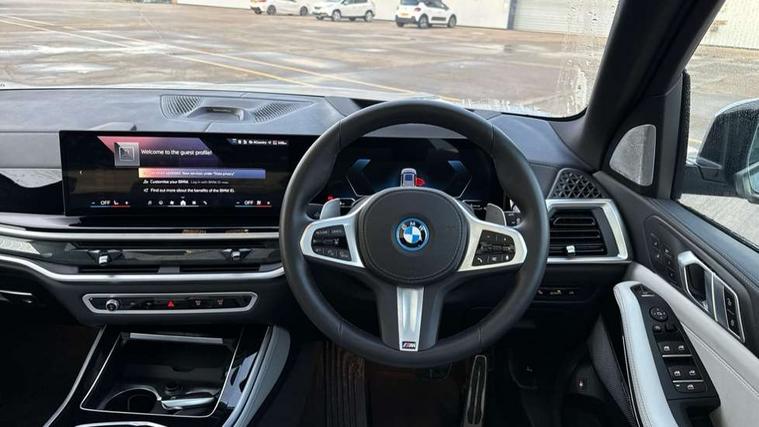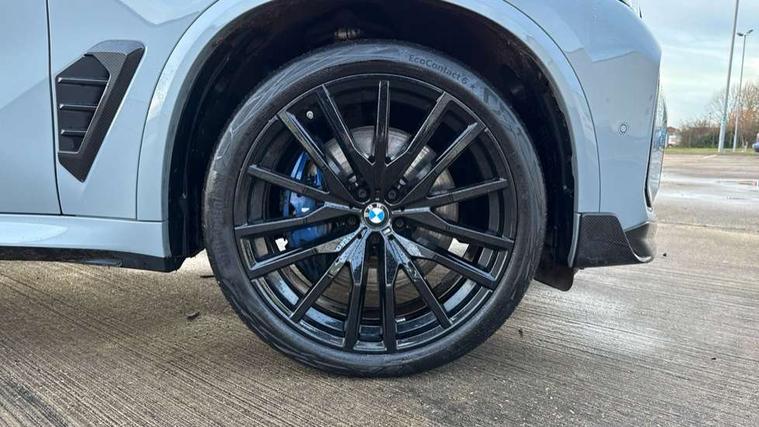Attentiveness assist, Automatic tailgate operation, BMW ConnectedDrive online services, BMW live cockpit + with curved 12.3 instrument cluster/14.9 central display, nav/Tuner with diversity reception, RDS/4GLTE/remote software upgrade, BMW Teleservices, Condition based service, Cruise control with brake assist, eCall emergency call system, Enhanced bluetooth with wireless charging, Integrated owner's handbook, PAS, Speed limiter, Wi-Fi hotspot, AC Fast charging preparation (Maximum charging power 11kW), Adaptive 2-axle Front and rear air suspension, Drive performance control with ECO PRO comfort + sport mode, Eight speed steptronic sport automatic transmission and gearshift paddles on the steering wheel, Adaptive LED Headlights, Front and rear electric windows, High beam assistant, High gloss black shadow line roof rails, LED daytime running lights, Rain sensor, Rear side wing doors, Third brake light in rear spoiler, Variable intermittent rear wash/wipe, 12V - Power sockets with 2x centre console and 1x luggage compartment, 3 seat bench in 2nd row, Foldable rear centre armrest with 2 cupholders and storage compartment, Front and rear side armrest integrated into door trim, Headrests for all seats, Luggage compartment separating net, Lumbar support with height and depth adjustment in backrest, Single front passenger seat, Three spoke sport M leather steering wheel, Velour floormats, Ambient light interior pack - X5, Driving assistant pack with radar based driver assistance system - X5, Expanded exterior mirror pack - X5/X5 M, M aerodynamics pack - X5, Parking assistant pack - X5, 3 rear seatbelts, Acoustic protection for pedestrians, Active protection, Airbags - driver/front passenger, rear and side, first and second row seats head airbags, front passenger seat airbag deactivation + knee airbag, Anti-lock braking system (ABS), Automatic Stability Control (ASC), Brake energy regeneration, Cornering brake control (CBC), Crash sensor activating central locking release, hazard warning lights, fuel cut off, interior lighting + activation of safety battery terminal clamp, DSC - Dynamic Stability Control, Dynamic Traction Control - DTC, Electromechanical parking brake with automatic drive away release and auto hold function, Electronic brake force distribution, Hill start assistant, M Sport blue painted brake calipers with 'M' designation, Mechanical child proof lock on rear doors, Tyre pressure monitoring system, Tyre pressure sensors, Ventilated front and rear disc brakes, Warning triangle and first aid kit, Alarm system, Closing system with central locking, Comfort access system, Locking wheel bolts,