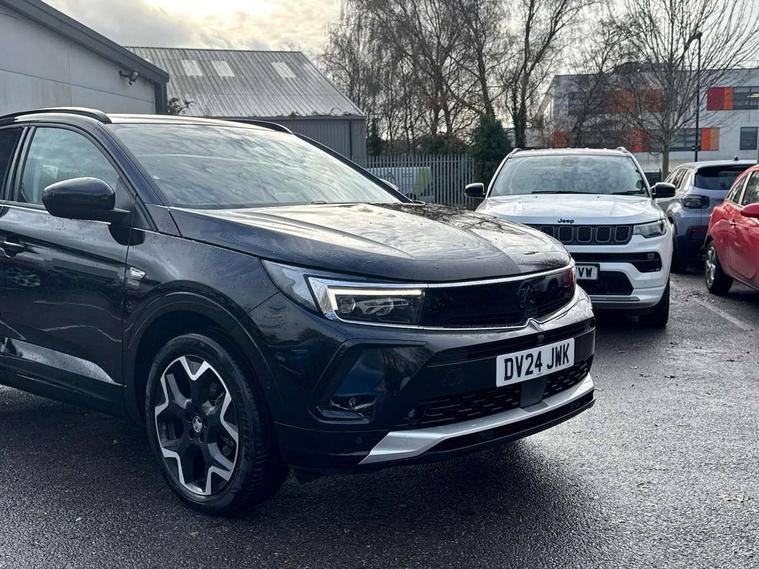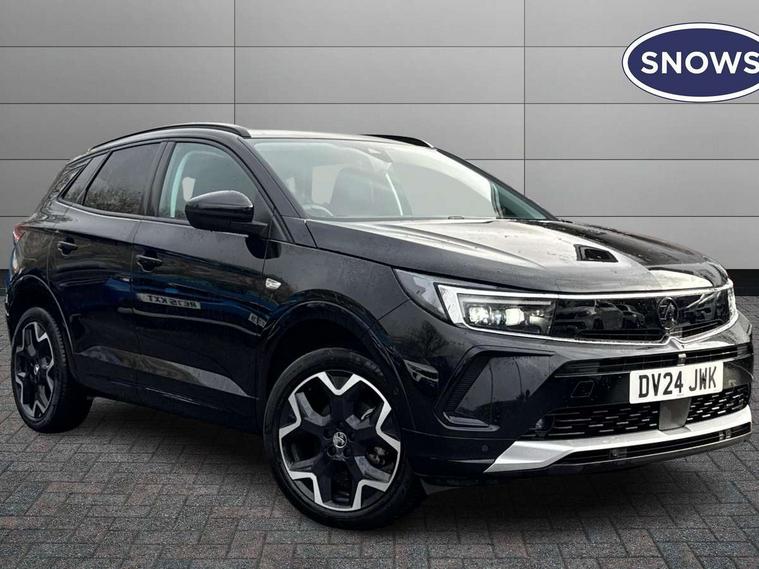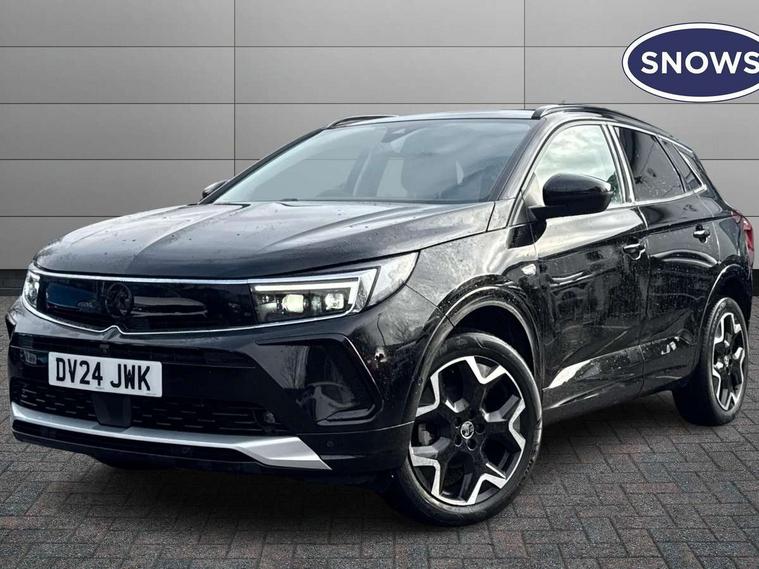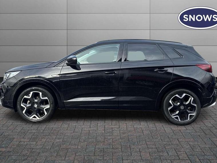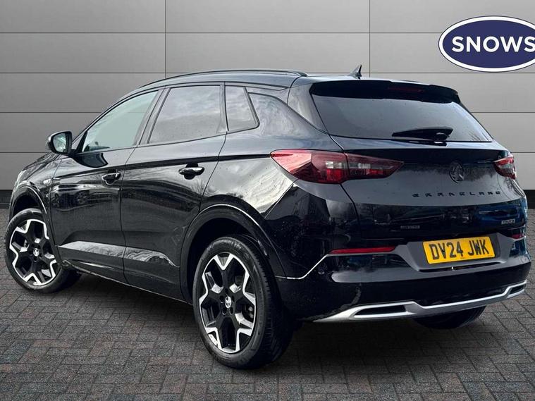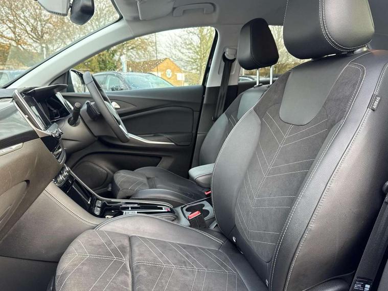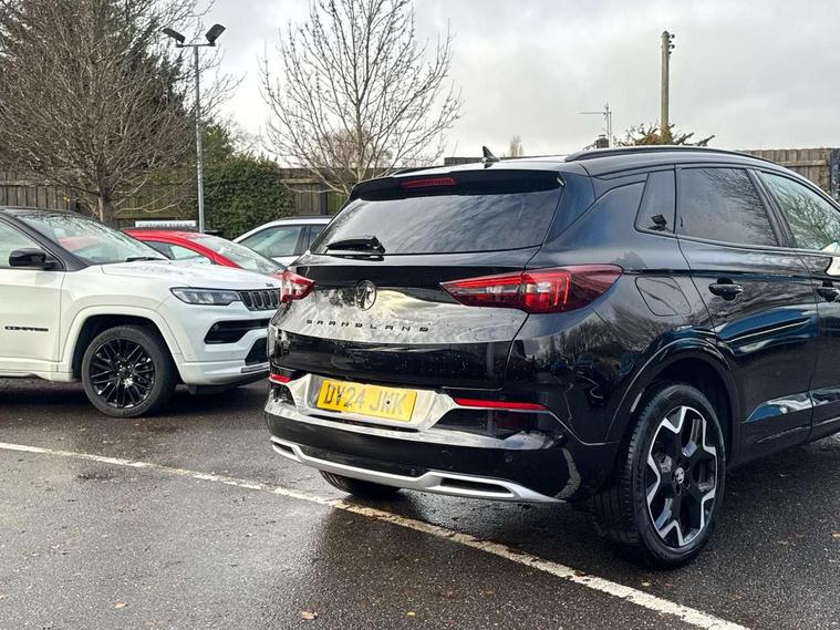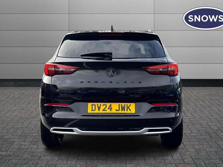 Central facia display with digital clock, outside air temperature and audio information, Digital fuel gauge with low fuel level warning light, Digital rev counter, Digital speedometer, Digital water temperature gauge with warning light, Drive mode selector (Eco, Normal, Sport), Driver drowsiness alert system, Driver information - Total mileage, service indicator, oil life, Front and rear parking distance sensors with 360 degree rear view camera and advanced park assist, Gearshift up/down indication light, Highway integration assist (Lane positioning assistant and Adaptive cruise control), Lane departure warning system, Lane keep assist, Lights on audible warning, Multi function trip computer - Trip odometer, vehicle range, average speed and fuel economy, instantaneous fuel economy and driving time, Multimedia Pure Panel Navigation System incl 10" colour touchscreen, 12" digital instrument cluster & satellite naviagtion, Power operated tailgate with foot sensor, Side blind spot alert, Speed sensitive electric power assisted steering, Speed sign recognition, Start/stop system, Vauxhall connect including Emergency call (SOS e-call) and Breakdown call (b-call), Wireless charger for mobile devices, Anti-roll bars, Compound crank rear suspension with coil springs and gas pressure dampers, Independent decoupled MacPherson strut front suspension with gas pressure dampers and coil springs, anti-roll bar, Six speaker - four front + two rear, Steering wheel mounted audio/phone/cruise controls, Automatic lighting control, Automatically dimming anti dazzle rear view mirror, Black door mirrors, Black side window trim, Body colour door handles, Body colour lower front and rear bumpers, protective wheel arches and lower door cladding, Body colour upper front bumper, Collapsible windscreen wipers, Dark tinted rear windows, Door to door illumination, Electric adjustable/heated/folding door mirrors, Electrically operated front and rear windows with safety auto reverse and one touch up/down facility, Front wiper system spraying directly from wipers, Hazard warning lights, Heated rear screen with timed cut off, Heated windscreen, High beam assist, High gloss black exterior detailing, High gloss black Griffin for Vizor and tailgate with high gloss black Grandland tailgate lettering, High gloss black roof rails, High level centre rear brake light, IntelliLux adaptive LED pixel headlights and LED tail lights, Intermittent rear window wash/wipe, LED daytime running lights, LED front fog lights, Magic wash, Manual headlight beam levelling, Rain sensor windscreen wipers, Rear side wing doors, Rear spoiler, Reversing light, Shark fin aerial, Silver effect protective front and rear skid plate, Soundproof insulated windscreen, Two speed windscreen wipers with variable intermittent wipe, Upper and lower bumper design, Vizor front grille, Welcome lighting, 12V electrical accessory socket in front, 3 bench rear seats in 2nd row, 3 spoke heated flat bottom leather effect steering wheel with satin chrome effect bezel, 6 way adjustable Ergonomic active heated sports style front seats AGR approved with seat cushion extension and lumbar adjustment, 60/40 split folding rear seat with centre rear seat armrest and load though facility, Advanced predictive logic control system using a sun sensor, Alcantara upholstery, Ambient centre console downlighter, Automatic air direction and fan speed with manual override, Charcoal filter, Chrome effect interior door handles, Covered storage compartment in centre console and in driver armrest, Driver's centre armrest, Driver/passenger sunvisors with illuminated vanity mirrors, Dual zone electronic climate control, Front door pockets with 2.6 litre capacity, Front seat back storage pockets, Fully carpeted luggage area, Height adjustable headrests, Illuminated luggage area, ISOFIX on front passenger and rear outer seats, Luggage compartment cover, Reach + rake adjustable steering column, Rear centre seat head restraint, Rear door pockets with 1.8 litre capacity, Rear passenger compartment heating ducts, Rear reading lights, Two drinks holders in centre console, Anti-lock braking system (ABS), Automatic emergency braking with pedestrian detection, Child proof locks on rear doors, CSC - Cornering stability control, Deactivation switch for front passenger front and side impact airbags, Deflation detection system, Driver airbag, Dual seatbelt pretensioners on front seats, EBD - Electronic brakeforce distribution, Electronic parking brake, Electronic stability program (ESP) including traction control, Forward collision alert, Front brake ventilated disc 304mm diameter, Front passenger airbag, Front seat side impact airbags, Full-size curtain airbags for driver and front passenger, Hill start assist, Hydraulic Brake Assist (HBA), Inertia reel lap and diagonal seatbelts for all seats, Load limiters on outer rear seatbelt retractors, Pretensioners on outer rear seatbelt retractors, Rear brake ventilated disc 268mm diameter, Smart seatbelt reminder for front and rear seats, Tyre pressure monitoring system, Central locking, Deadlocking system, Electronically protected audio equipment, Engine deadlock immobiliser, Keyless entry and start, Locking wheel nuts, Remote security alarm system, Black door panels with black premium leather effect inserts, Dax decor facia panel with palladium medium finish, 19" diamond cut bi-colour alloy wheel,