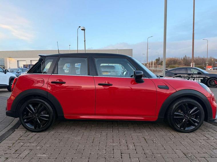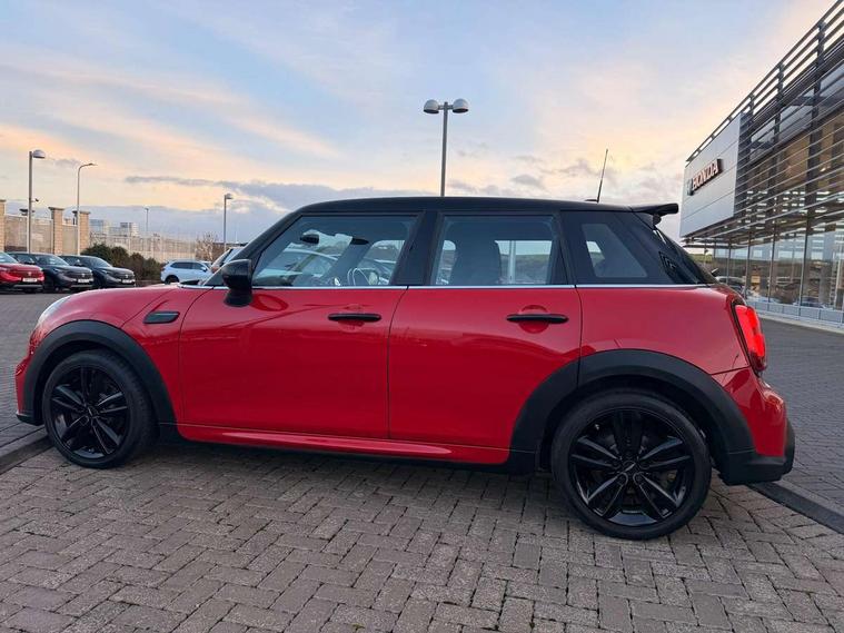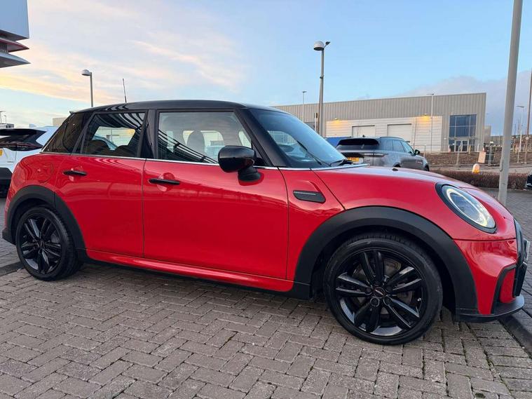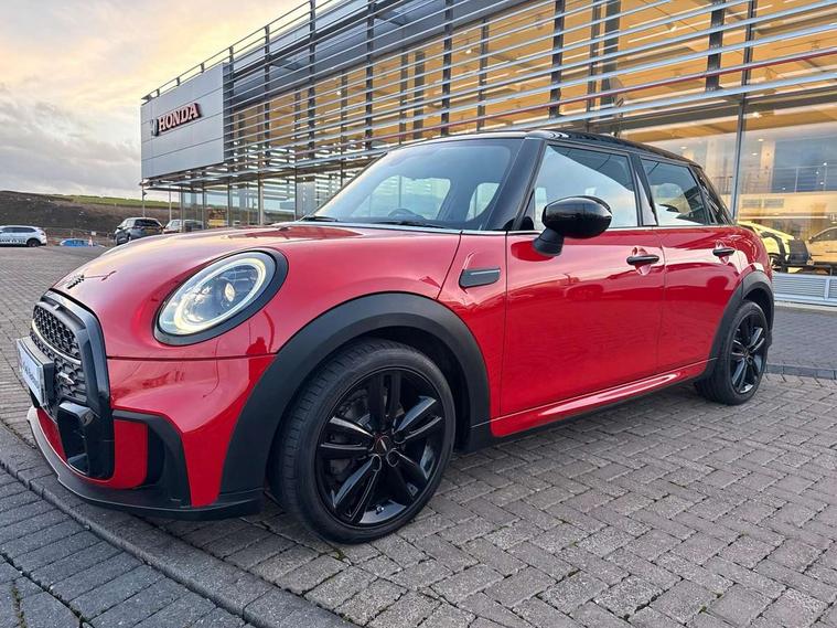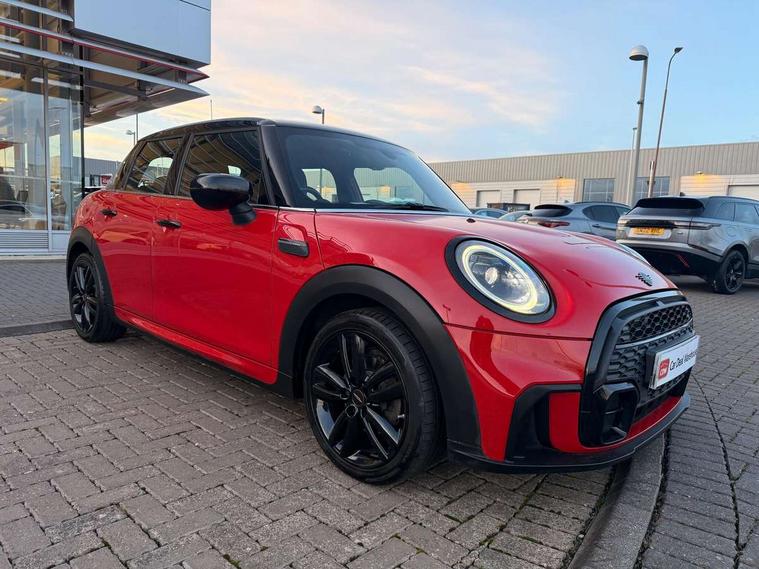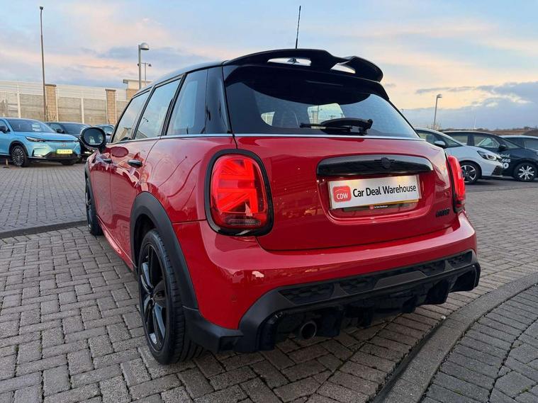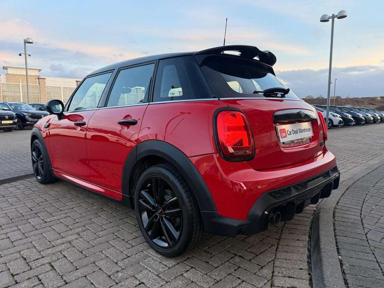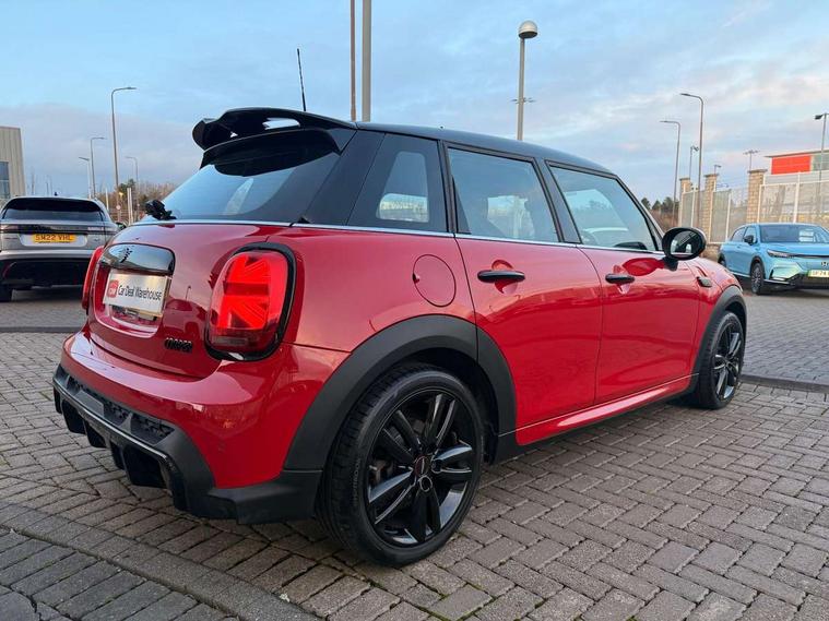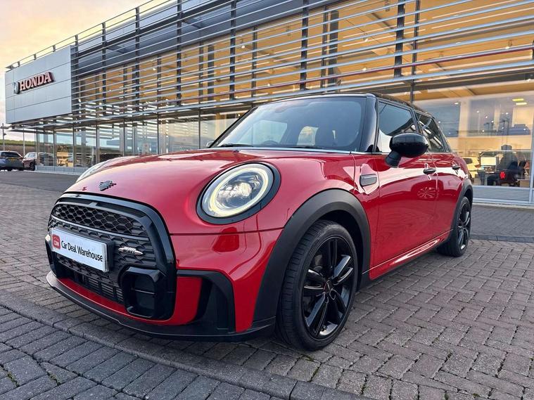 Automatic start/stop function with brake energy recuperation, Compatible mobile phone bluetooth with audio streaming, Cruise control with brake assist, Electro-mechanical speed dependant steering assistance, Flexible car sharing preparation, Instrument cluster, MINI Driving Modes - centre toggle switch to control driving setting (sport, mid and green), Mini E-call, MINI TeleServices, On board computer, Rear park distance control, Service interval indicator, 6 Speed manual transmission including gear change indicator display, Adaptive suspension, Double Vanos system, Fully variable valve control, High precision injection, Performance Control, 6 speakers in front door trims and underneath front seats, 8.8" touchscreen with LED ring, FM tuner and DAB digital radio, Automatic headlight activation switch, Body colour fuel filler cap, Chrome border high gloss black slats radiator grille, Dynamic brake lights, Electric front+rear windows, Exhaust tailpipe on left with chrome finisher, Heated rear window, Heated windscreen washer jets, JCW Aerodynamic kit - Front and rear bumpers with sporty JCW styling and part-painted side sills with MINI John Cooper Works door sill finishers, John Cooper Works rear spoiler, LED headlight with closed ring and daytime driving lights, Metal door sill strips with MINI imprint, Model logo Cooper on right of tailgate, Rain sensor window wipers, Rear fog lights, Rear LED lights with union jack design, Rear window wiper, Side scuttle panel with integrated indicator, Sun/heat protection glass, White indicator lenses, 12V Accessory socket in centre console, 4 lashing eyes in luggage compartment, 60/40 split folding rear seat, Anthracite headliner including grab handles and clothes hooks, Carbon black colour line - Knee roll and door armrest, Chrome interior highlights, Cupholders, Front and rear isofix with front passenger airbag deactivation, Glove compartment, Height and length steering column adjustment, Interior lighting with 12 different colours across the dashboard, underneath door bezel with illuminated laser-engraved design on central display, JCW Sport seats with integrated headrests, adjustable thigh support and John Cooper Works logo, Leatherette gearshift lever and handbrake gaiters, LED reading lights, vanity mirror lights, front foot well light and spotlight on front seats, Manual air conditioning, Mechanical seat adjustment - forward/back & backrest for front seats and driver seat height adjust, Multifunction steering wheel, Storage compartments in doors, Sunvisors with vanity mirrors, Velour floor mats, Walknappa leather steering wheel with grey seam and John Cooper Works badge on Piano Black lower steering wheel spoke, Piano black exterior pack - Mini Hatchback Cooper, 3 point seatbelts on all five seats, 6 Airbags - front, side, head and seat belt tensioners, Anti-lock braking system (ABS), DSC - Dynamic Stability Control, Front and rear disc brakes, Hill start assist, Single tone fanfare horn, Tyre pressure monitoring system, Alarm system with tilt sensor, monitoring doors, bonnet interior and tailgate, Electronic vehicle immobiliser, Start/stop toggle with keyless go, Piano black interior trim, Tool kit,