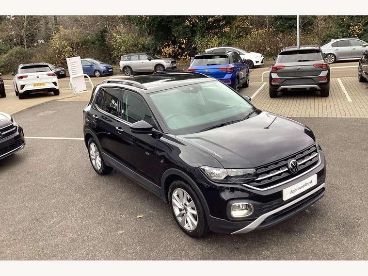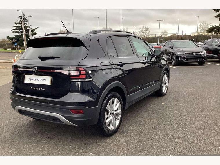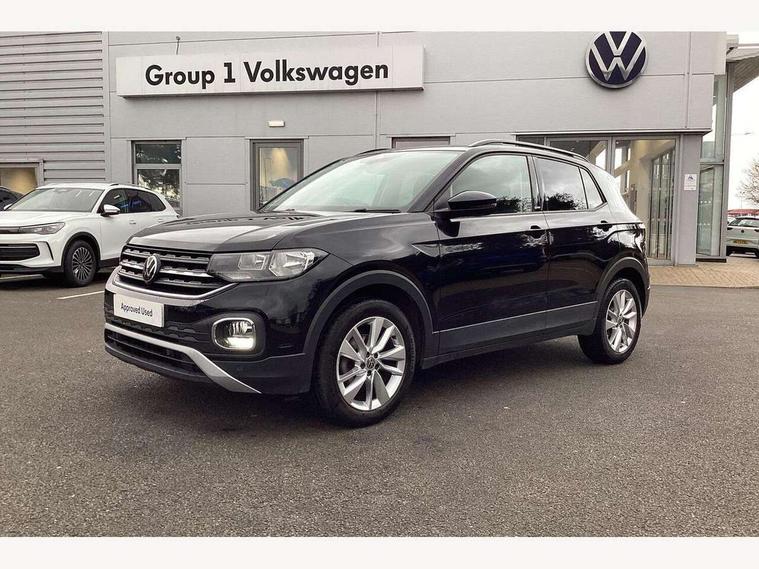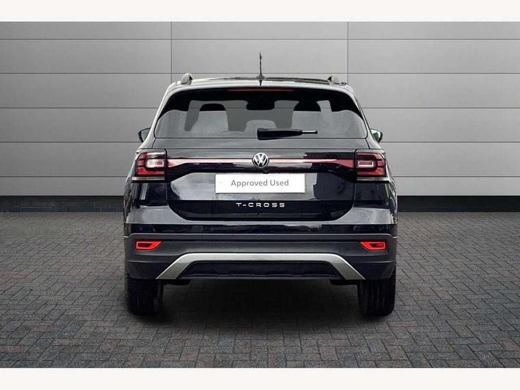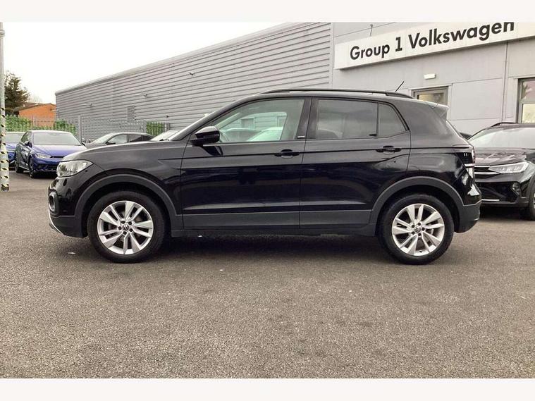'Lights On' Reminder warning buzzer, Adaptive cruise control including front assist, forward collision warning, autonomous emergency braking, speed limiter, Blind spot monitoring, Bluetooth telephone and audio connection for compatible devices, Car information display, Driver alert system, eCall emergency call system, Lane assist, Low washer fluid warning light, Multifunction computer with visual gear change recommendation for fuel consumption, Operating permit alteration, Power assisted speed sensitive steering, Speedo, rev counter, electronic odometer, trip, service interval display, exterior temperature and fuel gauge, Stop/start system, Warning sound and light for doors and tailgate open, Warning sound and light for front seatbelts unfastened, We Connect Go Dongle, Wireless Car net app connect with Apple CarPlay, combined functionality of Apple CarPlay/Android Auto and MirrorLink, Battery regeneration during braking, Misfuel prevention device, 2x USB connection with USB charging sockets and in rear centre console, DAB Digital radio receiver, Diversity antenna for FM reception, Multi device interface (MDI) with USB connection, Music playback - MP3, WMA and AAC files, Premium USB cable for Apple or Android smartphone compatibility, Simultaneous pairing of 2 compatible mobile devices, Title and cover art display, 3D active badge on B-pillar, Active door sills, Active sill panel trims, Automatic hazard lights activation under emergency braking, Black roof rails, Body colour door handles, Body coloured bumpers, Dusk sensor + automatic driving lights, Electrically foldable, adjustable and heated door mirrors with reverse activated kerb view adjustment on passenger's side, Front and rear electric windows, Front fog lights with static cornering function, Galvanised body, Heated rear window, High level 3rd brake light, Lower door sills and door pillars in black, Radiator grille with high gloss surface and chrome strip, Rear fog light on one side, reversing light on both sides, Rear lights incorporating LED technology, Rear side wing doors, Rear tinted glass 65% approx light absorbing from B pillar backwards, Rear window aerial, Rear windscreen washer and wiper with interval delay, Reflectors in all doors, Tailgate with integrated roof spoiler, Windscreen wipers/ intermittent wipe + 4 position delay, 12V Accessory socket in centre console, 3 rear head restraints and 3 rear three point seat belts with ECE label, 3 seat bench in 2nd row, 60/40 split folding rear seat backrest, Ambient lighting and sourround lighting, Brushed stainless steel pedals, Drawer under drivers seat, Driver and front passenger sunvisor with vanity mirror, Driver's sunvisor with ticket holder, Dust and pollen filter, Front + rear carpet mats, Front and rear reading lights X 2, Front centre armrest with storage compartment, Front seat back storage pockets, Front seats with adj lumbar support, Glovebox, Heating and fresh air system with 4 stage blower, Height/reach adjust steering wheel, Instrument lighting white adjustable panel illumination, Interior light with delay, Isofix child seat preparation for 2 rear child seats, Luggage compartment cover, Luggage compartment lighting, Moveable and foldable Rear bench seat, Single front passenger seat, Storage compartment in drivers and front passengers door, Three spoke multi-function leather trimmed steering wheel and gearknob, Trapeze cloth upholstery, Variable boot floor, Winter pack - T-cross, Anti-lock Braking System (ABS) with Hydraulic Brake Assist (HBA), Automatic post collision braking system, Driver and front passenger safety-optimised head restraints, Drivers and Front Passengers airbags with front passengers airbag deactivation switch, ESC with EDL, ASR, EDTC and trailer stabilisation function, Extended and proactive pedestrian protection, Front and rear curtain airbags, Front seat side impact airbags, Height adjustable 3 point automatic front seatbelts with pretensioners, Hill start assist, Pre crash preventive occupant protection, Rear door child safety locks, Rigid safety cell with front and rear crumple zones, Single torn horn, Tyre pressure loss indicator, Volkswagen roadside assistance, Alarm with interior protection and deactivation via infotainment system, Child security locks in rear doors, Electronic engine immobiliser, Remote tailgate unlocking using key fob, Decorative strips in doors in matt silver/ center console, 17" Clayton alloy wheels + anti theft wheel bolts, Breakdown kit,