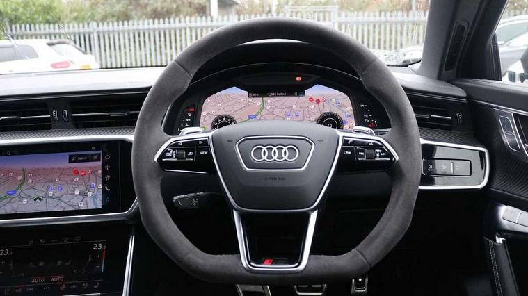 Audi connect safety and service (e-call), Audi connect with Amazon Alexa Integration, Audi drive select with 2 configurable RS modes, Audi smartphone interface with app store includes wireless Apple carplay, Android auto and Amazon alexa integration, Audi virtual cockpit plus with RS specific design and 12.3" display with additional graphic display options, Automatic start/stop system, Bluetooth interface, Convenience key, Dynamic all wheel steering, Head up Display, Lane departure warning system, MMI navigation with MMI touch + twin touch screens 10.1" and 8.6" with haptic and acoustic feedback, Operating buttons in black, glass look with haptic feedback including extended aluminium look, Power operated tailgate, Service interval indicator, Surround view camera system, Voice control system, 48V Mild hybrid technology, 73 litre fuel tank, Increased top speed to 174mph, Quattro sports differential, Audi music interface, Bang & Olufsen 3D Premium Sound System, DAB Digital radio, 3rd brake light, Adaptive windscreen wipers with integrated washer jets, Black audi rings and black RS badges, Electric front/rear windows, Electrically adjustable, heated and folding door mirrors with integrated LED indicators and kerb view function for passenger side, Frameless auto dimming interior rear view mirror, HD Matrix LED headlights with Audi laser light with dynamic light design and dynamic turn signal, Headlight washers, Heat insulating darkened glass in side and rear windows, LED daytime running lights, LED rear combination lamps with dynamic light design and dynamic turn signal, Matt grey mirror housing, Privacy glass with rear/side windows and acoustic glazing side windows, Radiator grille in honeycomb structure, large front air inlets and rear diffuser in gloss black, Rain and light sensors, Rear side wing doors, Rear wiper, RS front bumper with air inlets on both side, RS rear spoiler in body colour, RS sports exhaust system with high gloss black oval tailpipe trims, Towbar preparation, 3 seat bench in 2nd row, 3 spoke RS flat bottom alcantara leather multifunction steering wheel with shift paddles, heated funtion, contrast stitching, RS mode button/RS emblem, 4 way electric lumbar support for driver and front passenger, 4 zone deluxe automatic climate control, Audi phone box light, Electric steering wheel adjustment, Electrically adjustable front seats with driver memory, Entry LED with RS Performance projection (Audi Beam) in front and rear, Front and rear headrests, Front centre armrest, Front seat ventilation, Heated front seats, Illuminated front and rear door sill trims with aluminium inlays and RS6 logo, ISOFIX and Top Tether child seat mounting for the outer rear seats, ISOFIX child seat mounting and Top Tether with front passenger airbag deactivation, RS sports seat plus, Single passenger seat, Stainless steel pedals and foot rest, Air quality pack - RS6, Ambient lighting pack plus - RS6, Matt grey exterior styling pack - RS6, Park assist pack with park assist plus - RS6, Storage pack - RS6, 3 point rear seatbelts, Audi pre sense basic, Audi pre-sense front, Curtain Airbag System, Direct tyre pressure monitoring system, EBD - Electronic brakeforce distribution, Electromechanical parking brake, Electronic Stability Control (ESC) including ABS, ASR and EDL, Extended pedestrian protection measures, Manual child lock in rear doors, Warning triangle and first aid kit, Anti theft alarm with tow away protection, Immobiliser, Keyless Go, Remote central locking, Tyre repair kit,