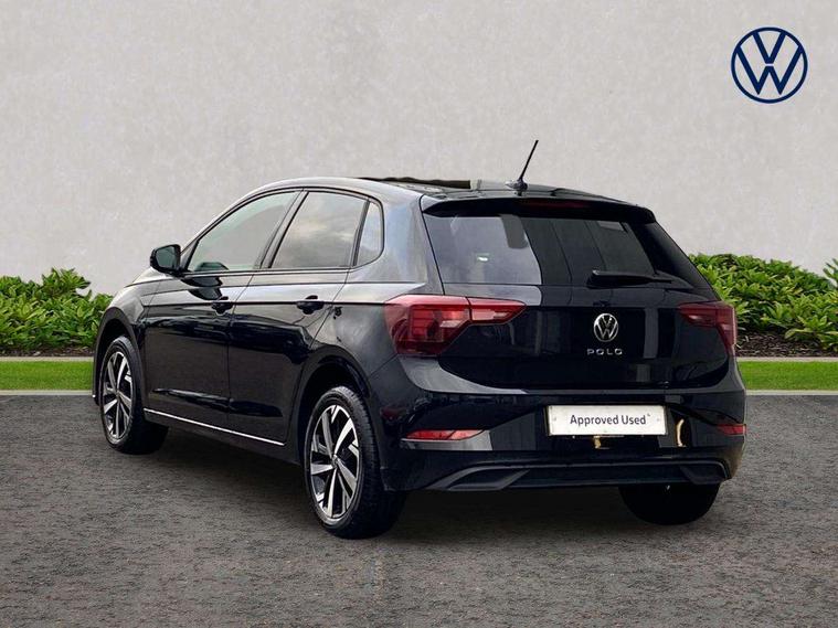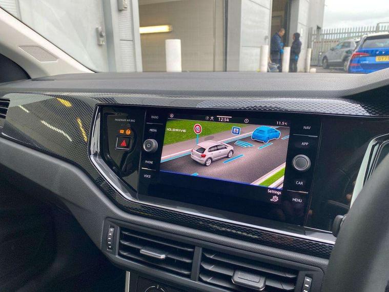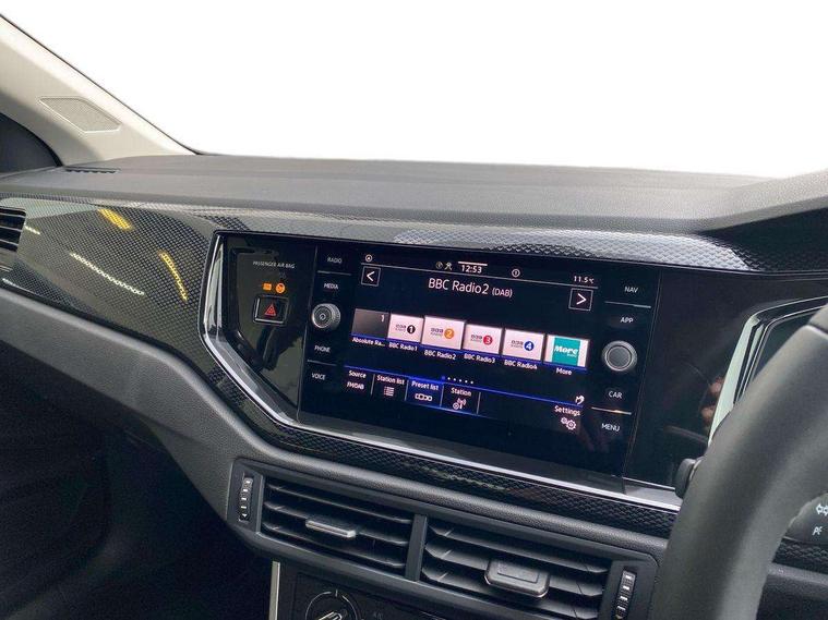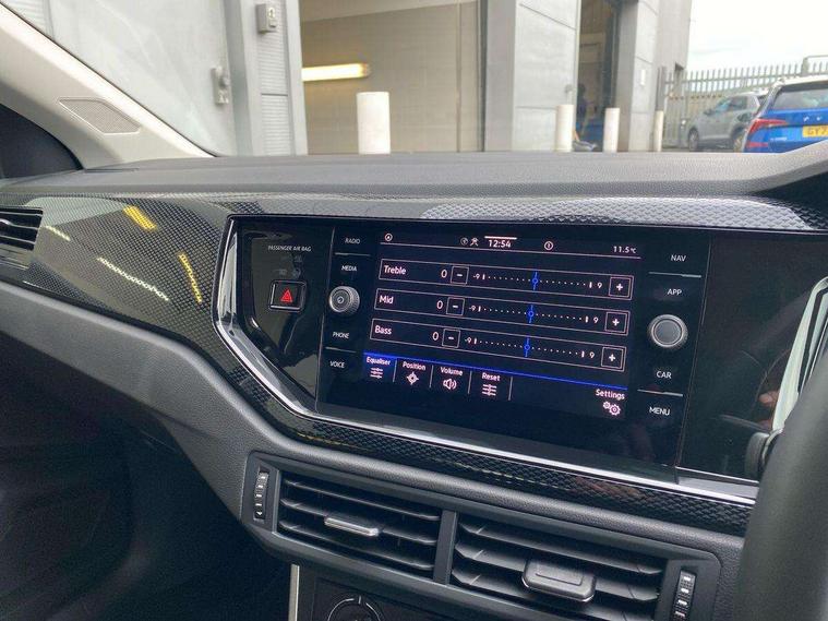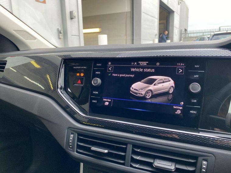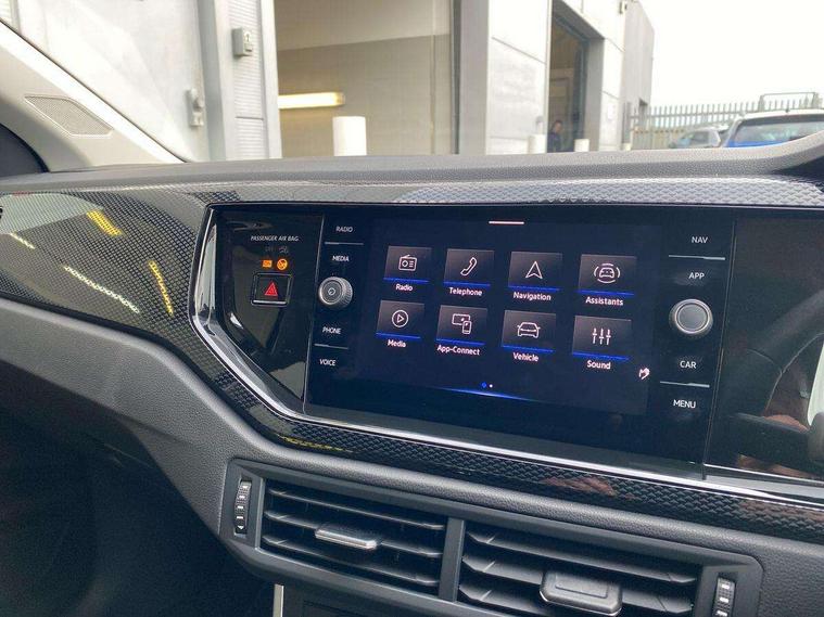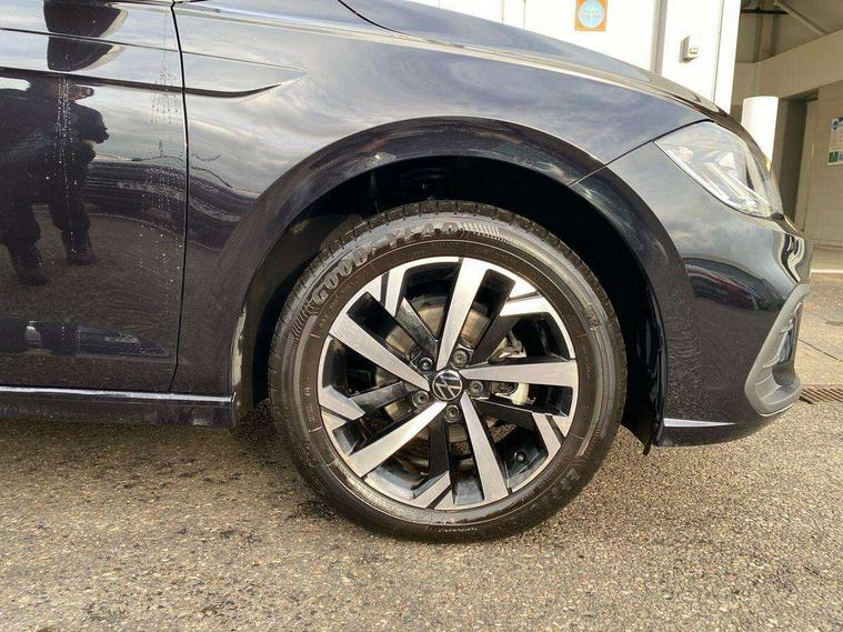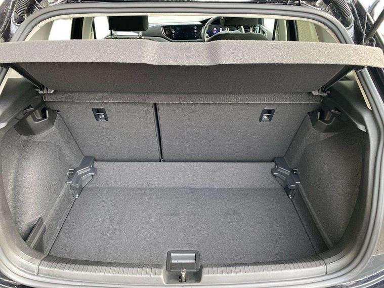 Advanced driver attention and drowsiness monitor, Bluetooth mobile phone interface, Dynamic road sign display, Emergency call service, Mobile phone preparation with inductive charging function, Multifunction front facing camera for distance control, Power assisted speed sensitive steering, Predictive adaptive cruise control without follow-to-stop and speed limiter, Preparation for navigation system with media and internet package, Preparation for We connect and We connect plus, Rear view camera, Speedo and rev counter, electronic odometer, trip, service interval display and exterior temperature gauge, Standard rear axle, Travel Assist - Lane keeping system and traffic jam assist, Travel assist including emergency assist, Trip computer, Warning signal and warning light for front and rear seatbelts not fastened, Washer fluid level indicator, Wireless app connect, Front wheel drive, Rear shock absorpion, Start-stop system with battery regeneration (recuperation - energy recovery during braking), DAB Digital radio, Diversity antenna for FM reception, Automatic dimming interior rear view mirror, Automatic headlight control with LED separate daytime running lights with coming/leaving home function, Body colour bumpers with chrome inserts, Body colour door handles, Body colour door mirrors, Electric front windows, Engine badge deletion, Headlight range adjustment, Heat insulating and laminated safety glass windshield, LED Headlights, LED rear combination lamps, Power folding adjustable/heated exterior mirrors and front passenger exterior mirror lowering function, Rain sensor, Rear electric windows, Rear fog light, Rear side wing doors, Rear tinted glass from B-pillar backwards approx 65% tinted, Rear windscreen washer and wiper with interval delay, Third brake light, 12V power socket in centre console, 2 front and 2 rear reading lights with switch off delay and dimmer, 2 USB-C ports in the front, 2 USB-C charging sockets on the center console in the rear, 3 rear head restraints, 60/40 split folding rear seat and rear seat bench not split, Ceramique roof lining, Chrome plated radiator grille inserts, air vent surrounds and light switch surrounds, Door and side trim panel, Driver and front passenger seat height adjustment, Driver/passenger sunvisors with illuminated vanity mirrors, Front centre armrest, Front seat backrest storage pockets, Front standard seats, Handbrake lever handle in leather, Hartley/Thomas cloth upholstery, Headliner in recycled material, Isofix child seat preparation easy-fit (for two outer rear seats, and front passenger seat) compatible with I-size, Leather trimmed gear knob, Luggage compartment cover, Luggage compartment lighting, Removable luggage compartment floor, Single front passenger seat, Standard climatic zones, Standard pedal cluster, Three spoke leather wrapped multifunction steering wheel with shifting paddles, Light and vision pack - Polo, 3 point height adj front seatbelts + pretensioners, 3 point seat belt for centre rear seat, 3 point seatbelts, outer rear with ECE lable, ABS, Driver and front passenger airbag with front passenger airbag deactivation, Drivers and front passengers safety optimised head restraints, ESC (Electronic stability control) + EDL (Electronic Differntial lock) and ASR (Traction control), Extended and predictive pedestrian/ cyclist protection, Front assist with autonomous emergency braking (for Adaptive Cruise Control ACC up to 130 mph), Front curtain and side airbags with center airbag, Front disc brakes, Hill hold control, Manual child lock in rear doors, Rear drum brakes, Single tone horn, Tyre pressure loss indicator, Alarm with interior protection, Anti-theft alarm system with interior monitoring, backup horn, and towing protection, Anti-theft wheel bolts, Electronic engine immobiliser, Lava stone black gloss/matt decorative inserts in dash and front door panels, 16" Torsby alloy wheels, Low rolling resistance tyres,