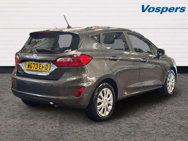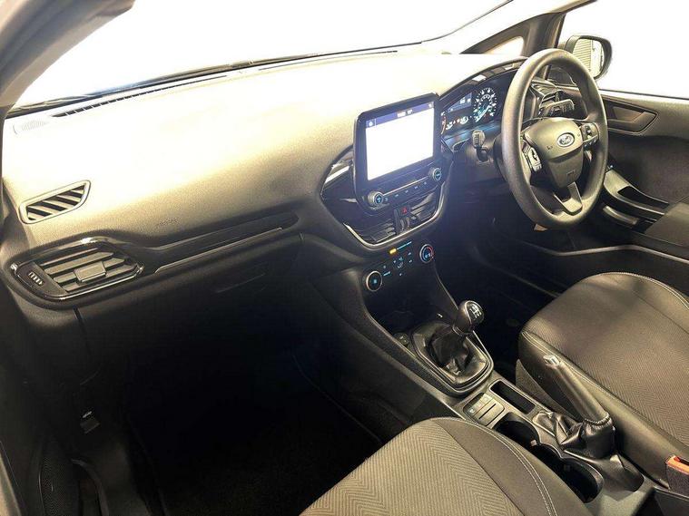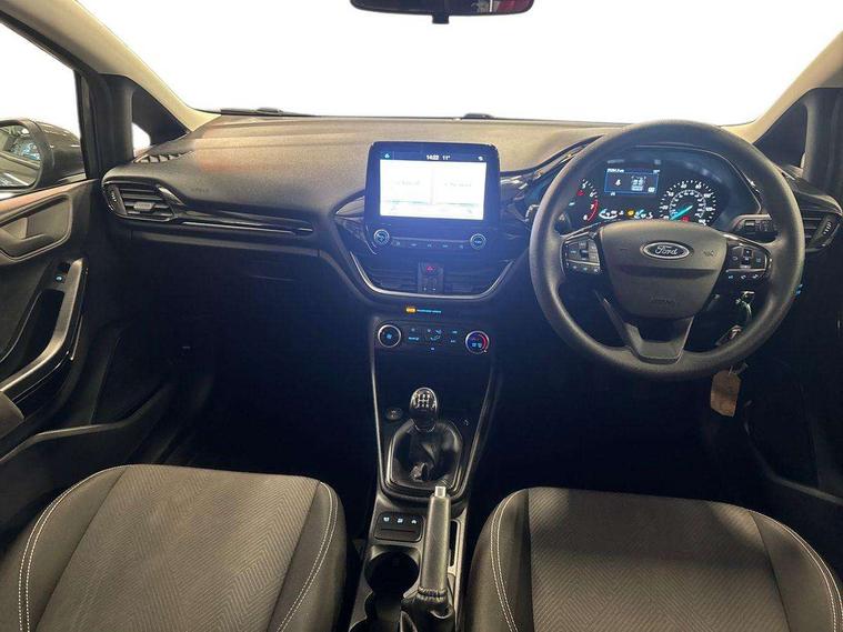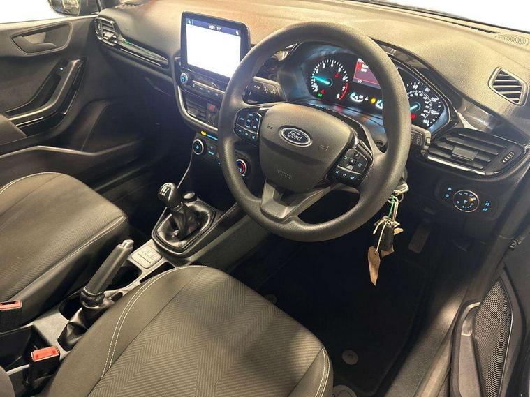 Bluetooth system, Electric power steering, Ford easy fuel, Trip computer, 2 USB ports, Auxiliary input socket, DAB Digital radio, Ford SYNC includes 8" touchscreen, 6 speakers, apple carplay, android auto and emergency assistance, Steering wheel mounted controls, Body colour bumpers, Body colour door handles, Body colour rear spoiler, Chrome beltline trim, Electric front windows/one touch facility, Electric rear windows, LED projector low beam headlamps with LED daytime running lights, Mesh design front grille with chrome surround, Quickclear heated windscreen, Rear wiper, 12V Accessory socket in centre console, 60/40 split folding rear seat, Adjustable head restraints, Ambient lighting, Boot carpet, Chrome inner door handles, Cloth upholstery, Footwell illumination, Front floor mats in velour, Front map reading lights, Front seat and rear pockets, Illuminated glovebox, Load area light, Luxury woven headliner, Manual 2 way passenger seat adjust, Manual 4-way driver seat adjust, Manual air conditioning, Overhead console with sunglasses holder, Pollen filter, Rake/reach adjustable steering wheel, NCAP Pack - Fiesta, 3 point seatbelts on all rear seats, ABS+EBA, Curtain airbags, Driver and passenger airbags, Drivers knee airbag, Electronic stability control with hill start assist, Front passenger airbag deactivation, Front side airbags, Tyre pressure monitoring system, MyKey system, Remote central locking & engine immobiliser, Thatcham Cat.1 alarm, 16" 8 spoke alloy wheels with rock metallic machined finish, Tyre repair kit,