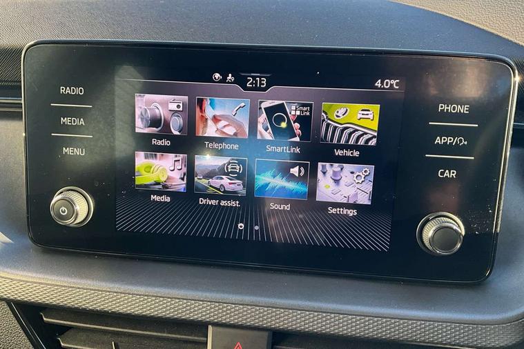 Bluetooth system, E-call, Front assist system, PAS, Service indicator, Speed limiter, Wireless Smartlink for Apple CarPlay (wired for Android Auto), 8 Speakers, Auxiliary input socket, DAB Digital radio, Body colour bumpers, Body colour door mirrors and handles, Chrome grille surround, Dimming rear view mirror with black surround, Electrically adjustable and heated door mirrors, Front and rear electric windows, Headlight range control, Heated rear window, LED rear lights - low functionality, LED third brake light, Light sensors, Rain sensor, Rear fog lights, Rear side wing doors, Rear wiper, 12V Accessory socket in centre console, 3 seat bench in 2nd row, Chrome inner door handles, Cloth upholstery, Front head restraints, Glove compartment with illumination, Ice scraper, Isofix child seat fittings on outer rear seats, ISOFIX on front passenger seat, Manual lumbar support for front seats, Rake/reach adjustable steering wheel, Reading lights, Single front passenger seat, Sun visors with illumination on front passenger, Textile floor mats, Third rear headrest, Top tether for front passenger seat, Umbrella in driver's door, 3x3 point rear seatbelts, Airbags - driver and front passenger, ESP, Front passenger airbag deactivation switch, Front side airbags with curtain airbags, Hill hold control, Manual parking brake, Manual rear child locks, One tone horn, Rear disc brakes, Seatbelt reminder for driver an co-driver, Traction control, Tyre pressure monitor, Anti-theft alarm system with interior monitoring, backup horn, towing protection and remote central locking with SAFE system, Anti-theft wheel bolts, Electronic engine immobilizer,