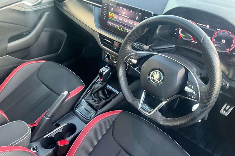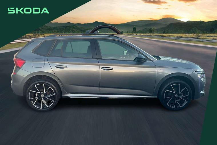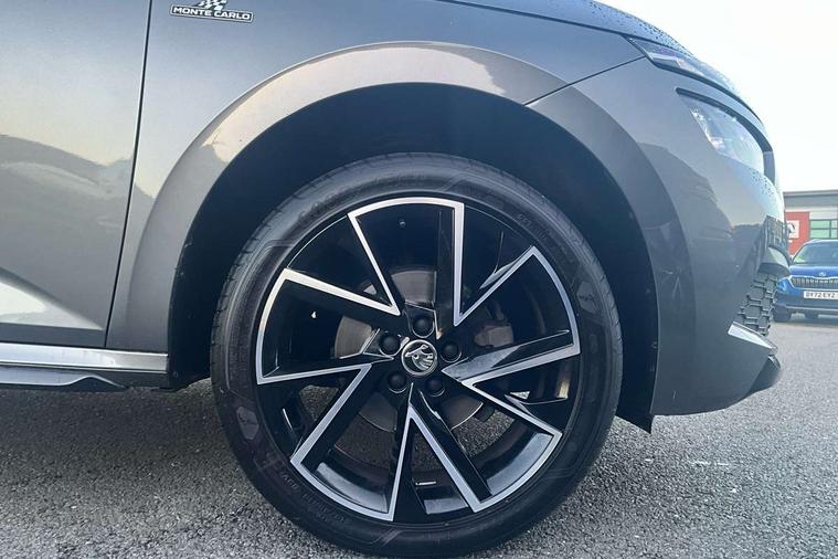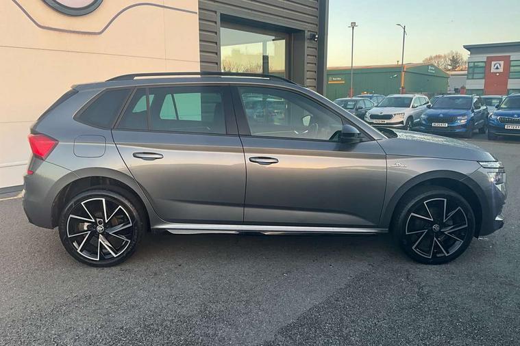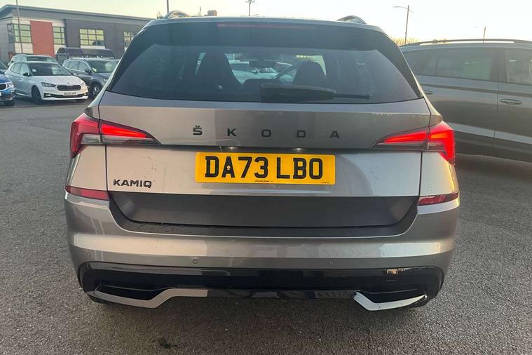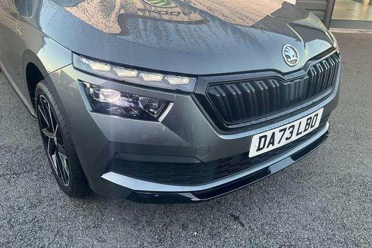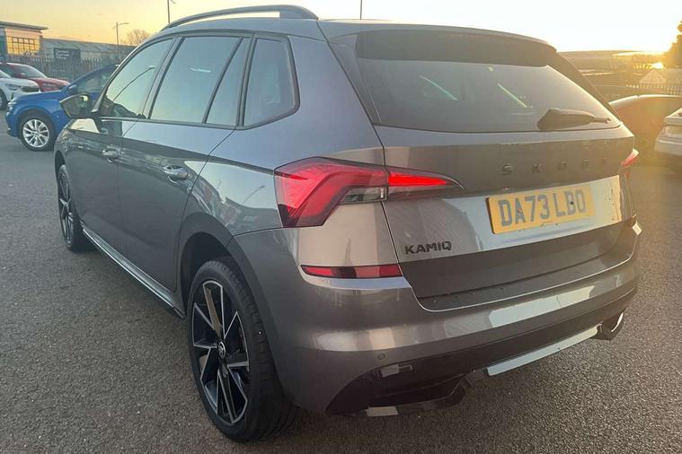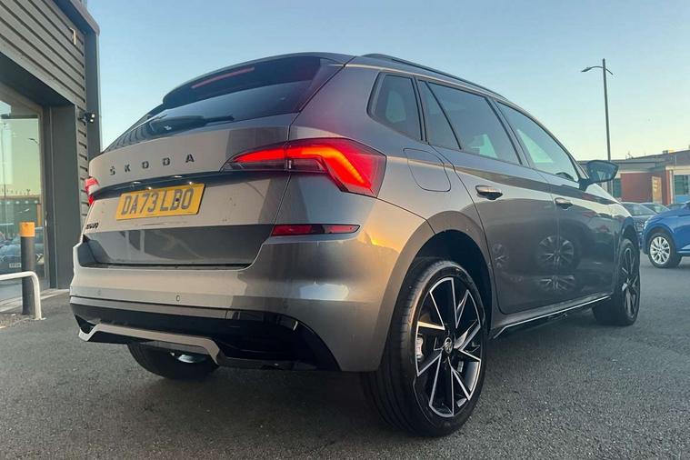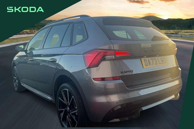 Amundsen satellite navigation with 9.2" glass colour touchscreen display, web radio, voice control and traffic sign recognition, Bluetooth system, E-call, Front assist system, Gesture control, PAS, Service indicator, Speed limiter, Wireless Smartlink for Apple CarPlay (wired for Android Auto), 8 Speakers, Auxiliary input socket, DAB Digital radio, Black door mirrors, Black radiator grille, Black rear diffuser, Body colour bumpers, Body colour door handles, Body colour roof spoiler, Boot lettering in black, Chrome grille surround, Dimming rear view mirror with black surround, Electrically adjustable and heated door mirrors, Fixed panoramic sunroof with black roof rails, Front and rear electric windows, Front sport bumper, Full LED headlights with adaptive front light system, cornering function, fog lights and dynamic indicators, Headlight range control, Heated rear window, High functionality rear led lights with dynamic indicators, KAMIQ Door sills, LED daytime running lights, LED third brake light, Light sensors, Monte carlo plaque, Privacy glass, Rain sensor, Rear fog lights, Rear side wing doors, Rear wiper, 12V Accessory socket in centre console, 3 seat bench in 2nd row, Aluminium pedals, Black ceiling for black/beige interior, Black roof lining, Chrome inner door handles, Cloth upholstery, Front head restraints, Glove compartment with illumination, Height adjustable front passenger seat, Ice scraper, Isofix child seat fittings on outer rear seats, ISOFIX on front passenger seat, Leather gear lever, Manual lumbar support for front seats, Rake/reach adjustable steering wheel, Reading lights, Single front passenger seat, Sports seats, Sun visors with illumination on front passenger, Textile floor mats, Third rear headrest, Top tether for front passenger seat, Umbrella in driver's door, 3x3 point rear seatbelts, Airbags - driver and front passenger, ESP, Front passenger airbag deactivation switch, Front side airbags with curtain airbags, Hill hold control, Manual parking brake, Manual rear child locks, One tone horn, Rear disc brakes, Seatbelt reminder for driver an co-driver, Traction control, Tyre pressure monitor, Anti-theft alarm system with interior monitoring, backup horn, towing protection and remote central locking with SAFE system, Anti-theft wheel bolts, Electronic engine immobilizer, Chrome air vent surrounds, 18" Vega alloy wheels in black,