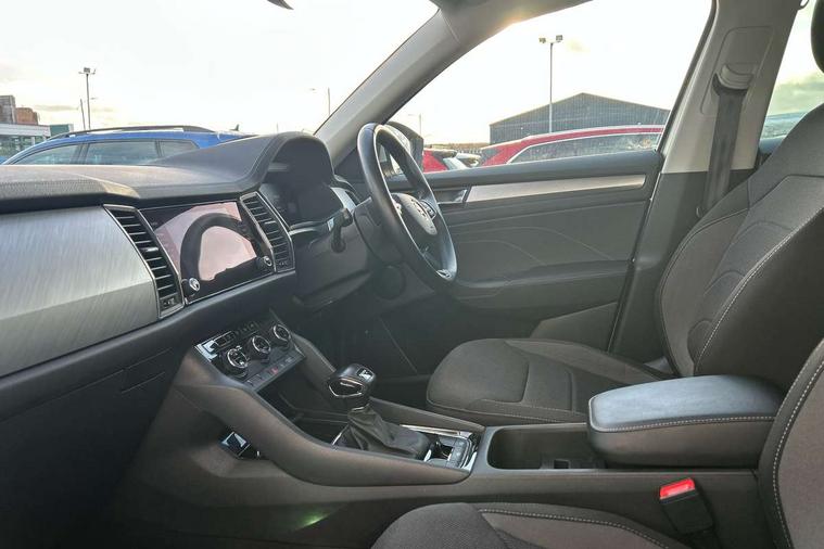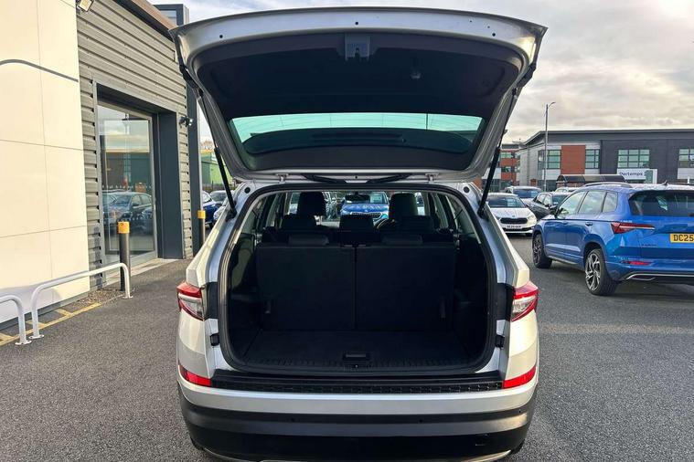 Bluetooth system, Colour multifunction trip computer, E-call, ECO Stop/start function, Exterior temperature indicator, Power assist steering, Smartlink wireless for apple carplay and wired for android auto, Speed limiter, Tailgate unlocking from outside, USB C Port x 2 in front centre console, 8 Speakers, DAB Digital radio, Aero front windscreen wipers with intermittent function, Aero rear window wiper, Auto dimming rear view mirror, Black wheel arch surrounds, Body colour bumpers, Body colour door mirrors and handles, Electric front and rear windows, Extended rear spoiler with finlets in gloss black, Front fog lights, Headlight washers, Heated rear window, Invisible tailpipe, LED rear fog light, LED third brake light in rear spoiler, Light assistant (coming/leaving home/tunnel light), Off-road style lower front bumper element, Privacy glass, Radiator grille frame in matt black with chrome strip, Rain and light sensors, Rear LED lights (high functionality) with welcome effect and dynamic indicators, Rear side wing doors, Safety reflectors on front and rear doors, Window control switches with black trim, 12V socket in boot, 2 rails with 2 hooks, 2 seat bench in 3rd row, 3 seat bench in 2nd row, 4 foldable roof handles with rear coat hooks, 60:40 foldable rear seat with sliding adjustment and backrest angle adjustment, Bottle holders in door panel in the 1.5 litre front and 1 litre rear, Cargo storage compartments, Chrome interior door handles, Cloth upholstery, Coat hooks on B pillar, Covered storage compartment on driver side, Dual zone automatic air conditioning with humidity sensor and control, Front centre armrest with storage compartment, cup holder and 12V socket, Gear shift lever with chrome frame and black gloss insert, Grey headlining, Grey stitching in front and rear armrests and door armrests + door inserts, Height adjustable front headrests, Height adjustable front seats, Illuminated and cooled glovebox, Illuminated luggage compartment, Isofix child seat fittings in outer rear seats with top tether, Manually adjustable steering column, Net programme in boot (1x horizontal Net, 2x vertical Nets), Overhead glasses storage compartment, Pollen filter, Rear centre armrest with cupholders, Single front passenger seat, Sliding trunk cover, Small Bags on the inner sides of the front backrests, Sunvisors with illuminated vanity mirrors, Three rear height adjustable headrests, Ticket holder on A Pillar, Umbrella in door panel, Variable boot floor, Auto door release and activation of warning lights in the event of an accident, Child locks on rear doors, Driver and front passenger airbag with knee airbag and front passenger airbag deactivation, Electronic parking brake with hill start assist, Emergency rear braking signal, ESC (incl. ABS+MSR+ASR+EDS+HBA+DSR+RBS+MKB), Front assist with autonomous emergency braking, Front side airbags with curtain airbags, Fuel cut off safety device, Height adjustable front 3 point seatbelts + pretensioners, Hill hold control, Rear disc brakes, Safety vest holder in door, Seat belt reminder for all seats, Three point rear seat belts, Two tone horn, Tyre pressure monitor, Alarm with interior monitoring and tilt sensor with safe function, Anti-theft wheel bolts, Immobiliser, Keyless entry and start system (KESSY), Remote central locking with 2 keys, Grey stitching in dashboard, Temporary spare wheel (space saver),