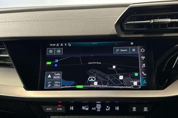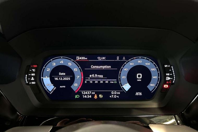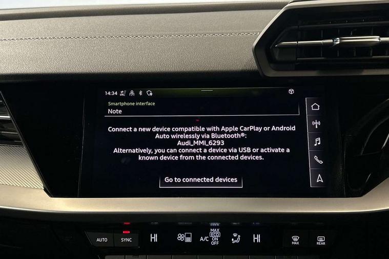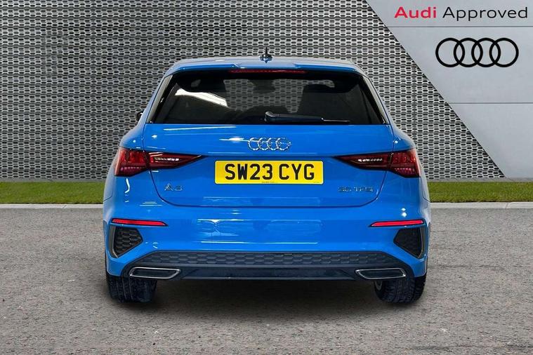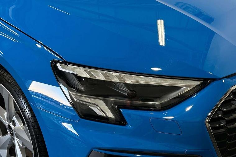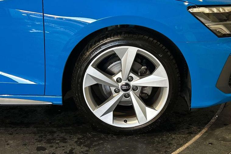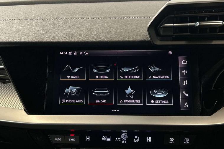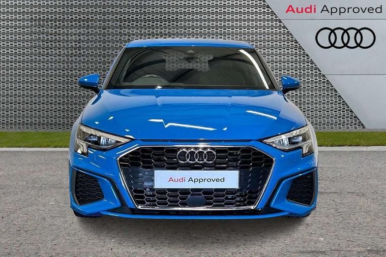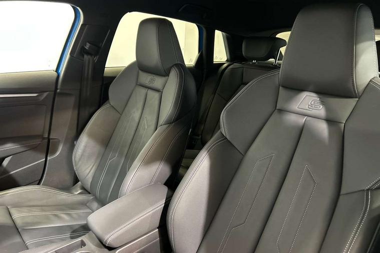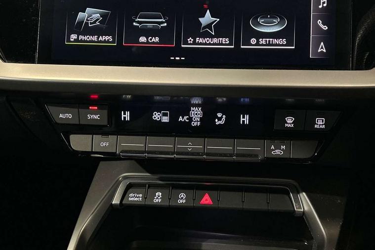 Audi drive select (Auto, Comfort, Dynamic and Individual), Audi smartphone interface, Audi Virtual Cockpit - 10.25" digital and colour instrument cluster, Automatic start/stop system with recuperation, Bluetooth interface, Camera based traffic sign recognition, Collision avoidance assistant, Cruise control, e-Call (emergency call), Electromechanical power speed sensitive steering, Lane departure warning system, MMI Navigation Plus with high resolution 10.1" colour touch screen display, Rear parking sensors, Service indicator, Trip computer, Voice control system with natural language interaction, Sports suspension, 2xUSB-C connection with data and charging functions, 6 passive loudspeakers, DAB Digital radio, 3rd brake light, Acoustic glass windscreen, Aluminium window trim, Auto dimming frameless rear view mirror, Body colour exterior mirrors, Electrically adjustable/heated/folding/auto dimming door mirrors with integrated LED indications + kerb view function for passenger side, Front electric windows, Illuminated aluminium inserts front door sills with S logo, LED daytime running lights, LED headlights with LED rear lights and dynamic rear indicators, Light and rain sensors, Privacy glass - dark tinted rear window, rear door and side windows, Rear electric windows, Rear side air outlets in grained matt black, Rear side wing doors, Rear wiper, S line bumpers, S roof spoiler, 12V socket and storage compartment in front centre console, 3 seat bench in 2nd row, 3 spoke leather multifunction steering wheel, 4 way electrically adjustable lumbar support for driver and front passenger, 60/40 split folding rear seat bench, Black cloth headlining, Dual zone electronic climate control, Front and rear centre armrest in leather, Front and rear headrests, Front/rear floor mats, Height and reach adjustable steering wheel, Interior lighting - glove compartment light and right hand side, Luggage compartment floor covering, Manual boot compartment lid, Manually adjustable front seats, Seat side bolsters, Single front passenger seat, Stainless steel pedals and front footrest in black, Twin leather upholstery with front sports seats S embossed logo, Aluminium interior elements pack - A3 Sportback, LED interior lighting pack - A3 Sportback, S line styling pack - A3 Sportback, 3x3 point rear seat belts, Driver and front passenger airbag with passenger airbag deactivation, Electronic Stabilisation Control (ESC) including ABS, ASR and EDL, First aid kit with warning triangle and 2 safety vests, Front side airbags with head airbags and interaction airbag, Pre-sense front with pedestrian and cyclist detection, Seatbelt monitoring, Tyre pressure loss indicator, Anti theft alarm, Anti-theft wheel bolts, Electronically operated child lock, Immobiliser, Remote control central locking, Dark spectrum aluminium inlays, accent surfaces in the dashboard and centre console in platinum grey silk effect paint finish,