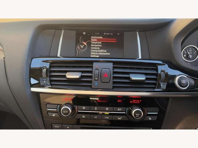 Automatic tailgate operation, BMW Teleservices, Cruise control with brake assist, Engine start/stop button, Front/rear Parking distance control, iDrive Controller and Display w/6.5" monitor, On board computer, Diesel particulate filter, Auxiliary socket for external MP3 player, BMW professional radio/CD/MP3, DAB Digital radio, Auto dimming rear view mirror, Body colour door handles, Body colour electric adjust heated aspherical door mirrors, Body coloured bumpers, Chrome kidney grille with aluminium vertical slats, Fingertip control / anti-trap function on electric window, Follow me home headlights, Front and rear electric windows, Heated windscreen washer jets, Height adjustable headlamps, High gloss black finish B and C pillars, Matt aluminium exterior trim, Matt aluminium roof rails, Matt chrome exhaust tailpipes, Rain sensor including auto headlights activation, Rear wiper, 12V socket in centre console and luggage area, 3 spoke sports leather multi-function steering wheel, 4 lashing points to secure luggage, Ambient lighting, Anthracite Velour floor mats, Centre console storage tray, Cupholders in centre console, Driver/passenger sunvisors with ticket holders + illuminated vanity mirrors, Dual zone automatic air conditioning, Folding grab handles with rear coat hooks, Front centre armrest with storage compartment, Front footwell lights, Front/rear courtesy lights with soft on/off dimming, Front/rear reading lights, Heated front seats, Height adjustable front seats, Height adjustable front/rear head restraints, Illuminated glovebox with lock, Isofix rear child seat preparation, Luggage area underfloor compartment, Nevada leather upholstery, Rake/reach adjustable steering wheel, Rear armrest, Removable / retractable luggage cover, Storage pockets - front doors, 3 rear 3 point seatbelts, ABS/EBD, Automatic Stability Control (ASC), BMW emergency call, Child locks on rear doors, Cornering brake control (CBC), Crash Sensor - activates hazard/interior lighting + unlocks doors, Driver/front passenger airbag, Driver/front passenger side airbags, DSC - Dynamic Stability Control, Dynamic brake control, Dynamic Traction Control - DTC, Electromechanical parking brake, Front and rear head airbags, Front passenger airbag deactivation, Hill descent control, Hill start assist, Inertia reel front seatbelts+pretensioners, Tyre pressure monitoring system, Warning triangle and first aid kit, Engine immobiliser, Locking wheel nuts, Remote central locking, Remote control Thatcham category 1 alarm, Centre instrument panel in high gloss black,