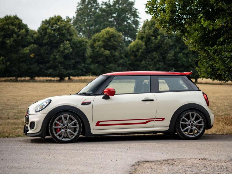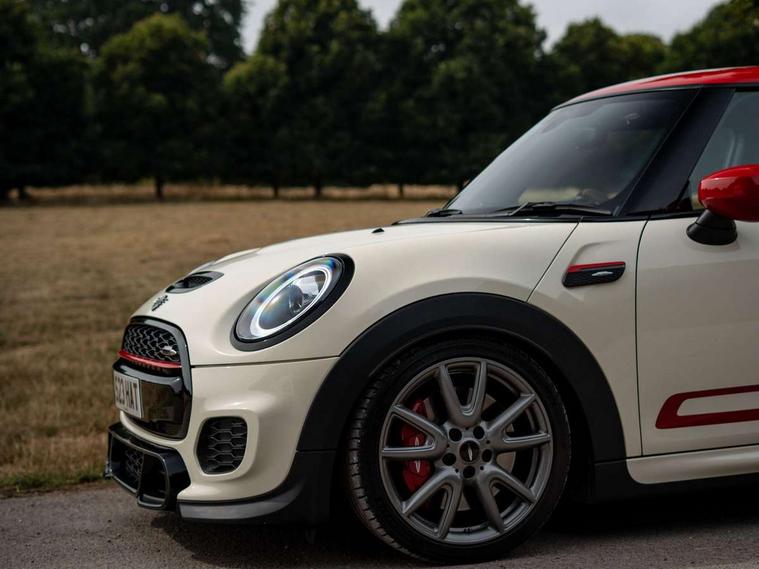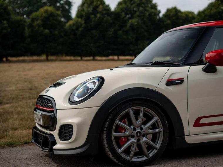Automatic start/stop function with brake energy recuperation, Compatible mobile phone bluetooth with audio streaming, Electro-mechanical speed dependant steering assistance, Instrument cluster, MINI Driving Modes - centre toggle switch to control driving setting (sport, mid and green), Mini E-call, MINI TeleServices, On board computer, Service interval indicator, 6 Speed manual transmission including gear change indicator display, Double Vanos system, Fully variable valve control, High precision injection, Performance Control, 6.5" touchscreen with LED ring, FM tuner and DAB digital radio, Automatic headlight activation switch, Bonnet scoop, Chrome plated fuel cap, Dynamic brake lights, Electric front+rear windows, Heated rear window, Heated windscreen washer jets, John Cooper Works - aerodynamic kit (front and rear apron, spoiler), front and rear sport bumpers and part-painted side sills with door sill finishers, John Cooper Works rear spoiler, Metal look door sill finishers, Model logo on right of tailgate, Piano black border radiator grille with honeycomb structure in black matt and John Cooper Works logo with upper individual grille strut in chilli red, Piano black exterior, Rain sensor window wipers, Rear fog lights, Rear LED lights with union jack design, Rear window wiper, Side scuttle with MINI John Cooper Works logo in black high-gloss with red border, Sun/heat protection glass, Two central exhaust tailpipes with chrome finisher, White indicator lenses, 12V Accessory socket in centre console, 4 lashing eyes in luggage compartment, 60/40 split folding rear seat, Anthracite headlining with grab handles and clothes hooks, Chrome interior highlights, Cupholders, Front and rear head restraints, Front and rear isofix with front passenger airbag deactivation, Glove compartment, Height and length steering column adjustment, Interior lighting with 12 basic colours selectable via toggle switch in roof, John Cooper Works adjustable thigh support, John Cooper Works Logo in seat, John Cooper Works sport leather steering wheel, Knee roll and door armrests, Leather gearshift lever and handbrake gaiters, LED reading lights, vanity mirror lights, front foot well light and spotlight on front seats, Mechanical seat adjustment, driver seat height adjust, forward/back and front seats backrest, Mini logo projection on floor from drivers exterior mirror, Multifunction steering wheel, Stainless steel pedals with rubber inserts, Storage compartments in doors, Storage pocket on back of front seats, Sunvisors with vanity mirrors, 17" front sport brake with 4 piston fixed calliper, 3 point seatbelts on all four seats, 6 Airbags - front, side, head and seat belt tensioners, Anti-lock braking system (ABS), DSC - Dynamic Stability Control, Front and rear disc brakes, Hill start assist, Red brake callipers with John Cooper Works logo, Two tone horn, Tyre pressure monitoring system, Alarm system with tilt sensor, monitoring doors, bonnet interior and tailgate, Electronic vehicle immobiliser, Start/stop toggle with keyless go, Tool kit,