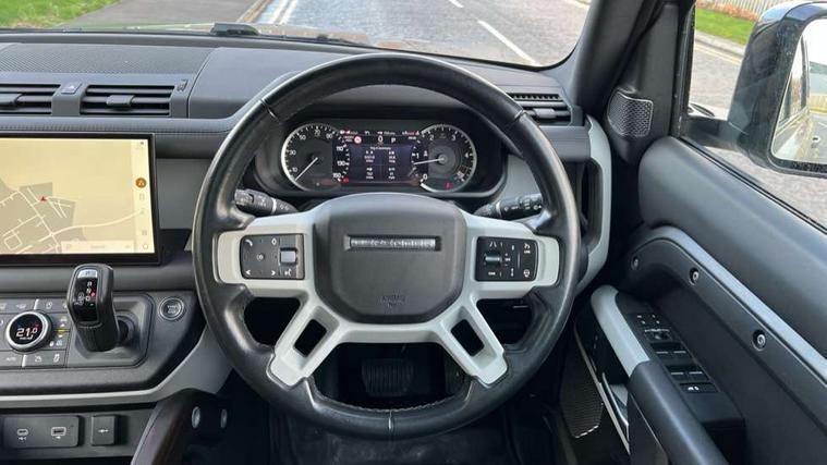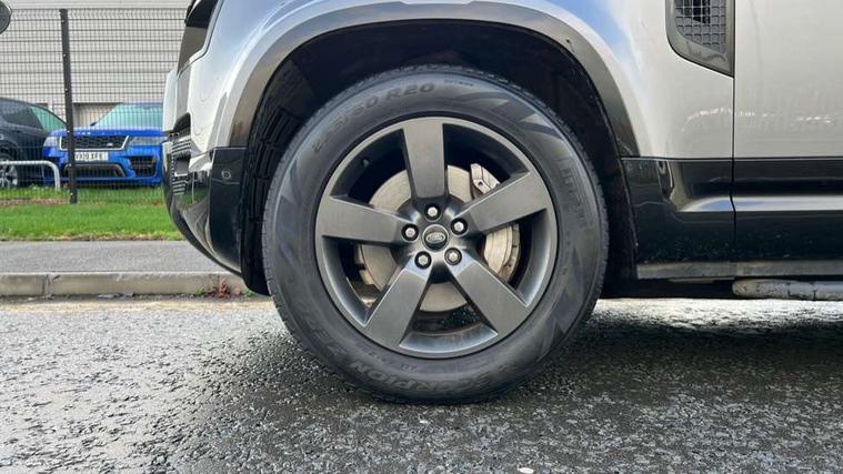 11.4" touchscreen, 360 degree parking aid, 3D Surround Camera with 360 View, 180 Rear View, Front Traffic Detection, Forward Vehicle Guidance, Tow Hitch Assist and clear sight Ground View, Adaptive cruise control, Android Auto, Apple CarPlay, Assisted tailgate with soft close, Blind spot assist, Bluetooth system, Brake pad wear indicator, Clear exit monitor, Connected navigation pro, Driver condition monitor, Electric power assisted steering (EPAS), Lane keep assist, Push button start, Rear collision monitor, Rear traffic monitor, Traffic sign recognition with adaptive speed limiter, Trip computer, Wade Sensing, 8 speed automatic transmission, All wheel drive system, Twin speed transfer box, DAB Radio (Digital Audio Broadcasting), Meridian 700w surround sound audio system with 15 speakers, Pivi pro connected, Automatic headlight levelling, Automatic headlights, Centre high mounted stop light, ClearSight interior rear view mirror, Electric heated/power fold door mirrors with approach lights and auto dimming driver side, Electric windows with one touch open/close and anti-trap, Follow me home lighting, Front fog lights, Heated rear window with timer, Heated windscreen, LED tail lights, Privacy glass, Puddle lights, Rain sensing windscreen wipers, Rear fog lights, Rear side wing doors, Rear wiper, Side hinged tailgate, Trailer stability assist, X-Dynamic badge, 12V power socket in loadspace, 14 way heated and cooled electric adjustable memory front seats with 4 way manual headrests, 2 seat bench in 3rd row, 3 seat bench in 2nd row, Air quality sensor, Alpine lights, Cabin Air Purification plus, Durable rubber cabin flooring, Durable rubber loadspace flooring, Electric reach + rake adjustable steering column, Extended leather upgrade, Footwell lights, Front passenger isofix child seat attachment, Heated steering wheel, Loadspace cover, Loadspace Hook, Multifunction steering wheel, Overhead stowage for sunglasses, Premium cabin lighting, Rear headrests, Rear ISOFIX, Rear reading lights, Single front passenger seat, Storage glovebox, Sunvisors with illuminated vanity mirrors, Twin front cupholders with cover, Online pack with data plan - Defender, 7 three point seatbelts, ABS, Brake hold function, Cornering brake control (CBC), Customer configurable autolock, DSC - Dynamic Stability Control, EBD - Electronic brakeforce distribution, Electric parking brake (EPB), Emergency brake assist, Emergency braking, ESP + traction control, Front airbags with passenger seat occupant detector, HDC - Hill descent control, Hill launch assist, Low traction launch, Power operated child locks, Remote for (e-Call, Optimised assistance call, InControl app, Climate, beep and flash and door), RSC - Roll stability control, Seat belt reminder, TPMS (Tyre pressure monitoring system), Alarm, Immobiliser, Intrusion sensor, Keyless entry, Locking wheel nuts,