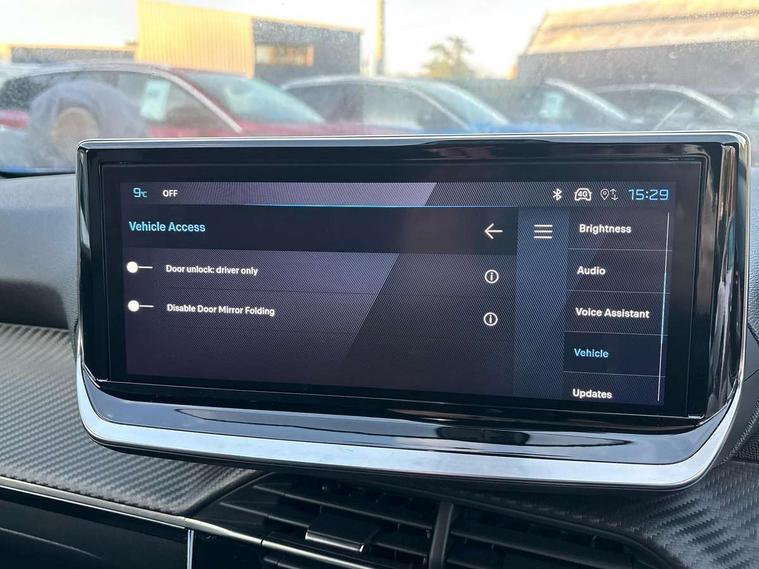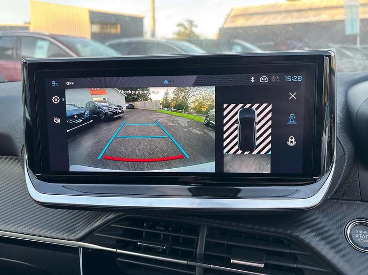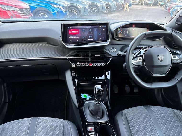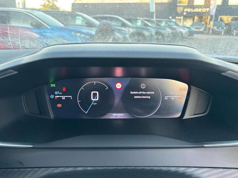 Bluetooth telephone facility, Driver attention warning, E-call, Exterior temperature indicator with ice warning, Front and rear parking sensors, Lane keep assist, Multi function trip computer, PEUGEOT i-Cockpit with 10" high definition capacitive touchscreen, PEUGEOT i-Cockpit with compact steering wheel, PEUGEOT i-Cockpit with configurable headup instrument panel, Programmable cruise control and speed limiter, Speed limit recognition and recommendation, Wireless mirror screen with apple carplay and android auto, Petrol Particulate Filter, 1x USB-C socket in rear and 1x USB-A socket in rear, 2 USB-C ports in the front, 6 speakers radio with mp3 compatible, DAB Radio (Digital Audio Broadcasting), 2 X Rear number plate lights, Automatic hazard light activation upon heavy brake application, Black front wing trim with gloss black detail, Body coloured exterior door handles, Colour coded rear roof spoiler, Colour coded roof, Dark tinted rear side and tailgate windows, Diamond black mirror shells, Eco LED headlights, Electric, heated, and power folding door mirrors, Electrochrome rear view mirror, Front bumper - Meteor grey lower trim, Gloss black finish on B pillar, Gloss black rear cluster connecting strip, Gloss black roof bars, Headlights left on audible warning, LED daytime running lights with distinctive 3 claw signature, LED side indicator lights integrated into door mirrors, LED third brake light, Model designation badges front and rear, One touch electric front/rear windows with pinch protection, Radiator grille - Body coloured top edge trim, Radiator grille - body coloured vertical chequered grille, Rear full LED 3D peugeot signature claw effect lights with daylight function, Rear reversing lights, Rear side wing doors, Rear windscreen wiper triggered automatically in reverse gear, Tailgate with heated rear windscreen and wiper blade, Wheel arch extensions, 1/3 to 2/3 split folding rear seats, 12V socket, 3 seat bench in 2nd row, Automatic air conditioning with pollen and active carbon filter, Central front armrest with storage compartment, Driver and front passenger comfort seats, Driver seat manual adjustment - height, longitudinal and back rest angle, Electric power steering with reach and rake adjustable steering column, Front LED interior light with 2 reading spotlights and rear interior light with timer, Front passenger seat manual adjustment - height, longitudinal and back rest angle, Gear lever top - manual in full grain leather, Gear shift indicator, High centre console, Leather steering wheel, Multifunction steering wheel, Piano keys: Gloss black and chrome toggle switches to access main functions of the vehicle and touchscreen functions, Roof lining - Mistral black, Seatbelt unfastened on the move audible and visual alert for front and rear seats, Single front passenger seat, Tri material cloth/leather effect upholstery, Two position modular boot floor, Visibility pack - 2008, 2x 2nd row ISOFIX child seat mountings, ABS (Anti-lock Braking System) with EBD (Electronic Brakeforce Distribution) and EBA (Emergency Braking Assistance), Active safety brake with night function/cyclists/pedestrians, Adaptive driver and front passenger airbags with passenger airbag deactivation function, Child locking functionality on rear doors, Driver/front passenger side airbags, Electric parking brake, ESP (Electronic Stability Program) + Hill Start Assist, Front and rear curtain airbags, Front and rear disc brakes, Front and rear three-point retractable seatbelts, with force limiters, Front optimised safety headrests and rear retractable headrests (x3), height adjustable, Tyre pressure sensor, Automatic door locking when moving off, Deadlocks, Electronic code immobiliser, Thatcham category 1 alarm, Carbon effect Dashboard, front and rear door panel finish, 17" Karakoy diamond cut alloy wheels,