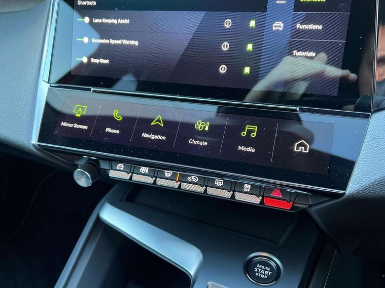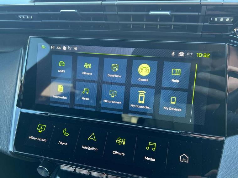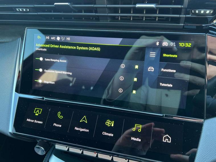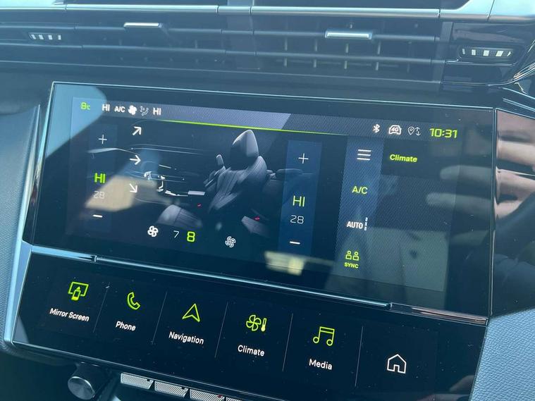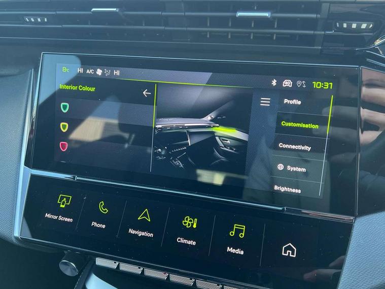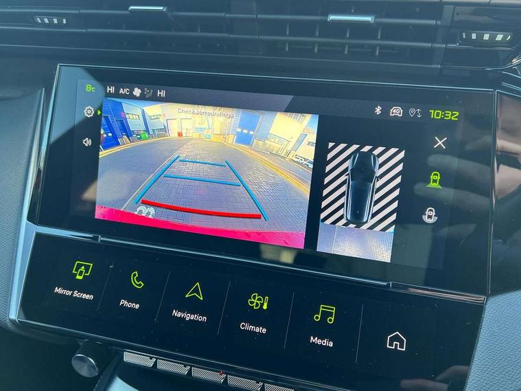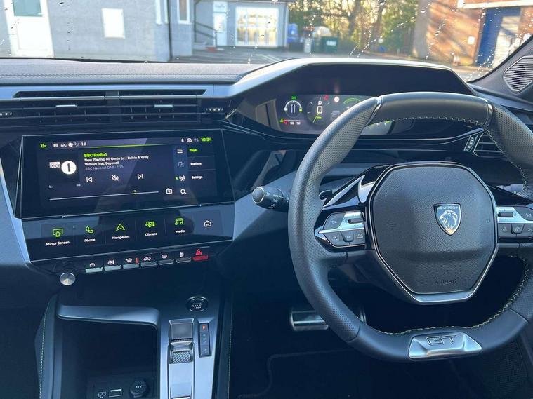Bluetooth telephone facility, Compact drive selector, Driver attention warning, Emergency call service, Exterior temperature indicator with ice warning, Front and rear parking sensors, Intelligent speed adaptation, Lane keep assist, Mirror screen with wireless apple carplay and android auto, Multi driving mode selector - Eco / Normal / Sport mode selector, Multi function trip computer, Peugeot connect advanced with connected 3D navigation, PEUGEOT i-Cockpit - compact steering wheel, 10" HD colour touchscreen with configurable 3D headup instrument panel, Service interval indicator, Speed limit recognition and recommendation, Sport pedals with foot rest, DAB Digital radio, Peugeot customisable iToggles, Voice recognition for radio, navigation and telephony features, 2 X LED rear number plate lights, Acoustic and tinted windscreen, Acoustic laminated front side windows, Automatic hazard light activation upon heavy brake application, Automatic triggered rear windscreen wiper in reverse gear, Bi-tone roof rails, Body colour door handles, Body colour rear roof spoiler, Dark chrome chequered radiator grille, Dark tinted rear side and tailgate windows, Electric operated/heated door mirrors, Extended lower body sills to the front and side, Framed electrochromatic rear view mirror, Front and rear electric windows with one touch/anti pinch, Full LED matrix headlights with automatic adjustment, Gloss black finish B pillar, Gloss black rear cluster connecting strip, GT model designation badging on tailgate, High beam assist, LED 3rd brake light, LED side indicator lights integrated into door mirrors, Lion emblem badging on front wings, Model designation badges on front and rear, Nera black door mirrors, Peugeot aluminium door sills, Peugeot signature LED daytime running lights, Power folding door mirrors, Rear full LED 3D Peugeot new claw effect lights with sequential welcome sequence upon unlocking the vehicle, Rear lower bumper gloss black diffuser effect trim, Rear reversing lights, Rear side wing doors, Tailgate with heated rear windscreen and wiper blade, Twin exhaust pipes with chrome surround, 12V socket, 2 front USB socket including 1 USB type c, 3 seat bench in 2nd row, 40/20/40 flat folding rear seats, 8 Colour personalisable ambient lighting, Automatic air conditioning with AQS 3, Belomka tri-material woven cloth with Isabella leather effect upholstery, Carpet mats, Central front armrest with storage compartment, Dynamic front seats, Electric power steering with reach and rake adjustable steering column, Front central console with two cup holders, LED Glovebox light, Manual driving mode - change gear manually via steering mounted paddles, Multifunction full grain leather steering wheel with admite green stitching & GT badging, Piano keys gloss black plated toggle switches to access main functions of the vehicle, Rear centre armrest with cupholders, Roof lining - Mistral black, Seatbelt unfastened on the move audible and visual alert for front and rear seats, Single front passenger seat, Sunvisor with concealable mirrors and LED lighting, Twin USB charging ports in the rear (Type C), Two position boot floor, Driver sport pack with sports power steering - 308, Visibility pack with automatic magic wash windscreen wipers - 308, 2x Isofix child seat fitting on outer rear seats, 3x Rear three-point retractable seatbelts with force limiters in the outer rear seats, ABS + EBD + EBA, Active safety brake with night function/cyclists/pedestrians, Adaptive driver and front passenger airbags with passenger airbag deactivation function, Automatic post collision braking, Child locks on rear doors, Driver/front passenger side airbags, Electronic parking brake, ESP, Front and rear curtain airbags, Front optimised safety headrests and rear retractable headrests (x3), height adjustable, Front three point retractable seatbelts with force limiters, Front/rear disc brakes, Hill start assist, Tyre pressure sensor, Automatic door locking when moving off, Deadlocking system, Electronic code immobiliser, Locking wheel nuts, PEUGEOT Open and Go keyless entry system, Thatcham cat. 1 alarm with anti lift sensor,
