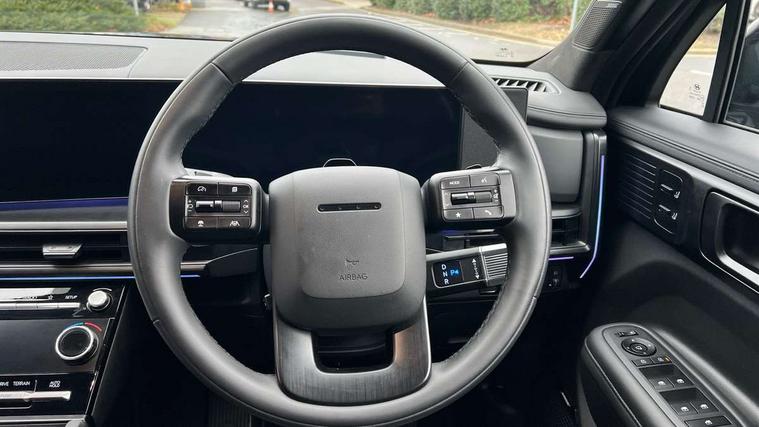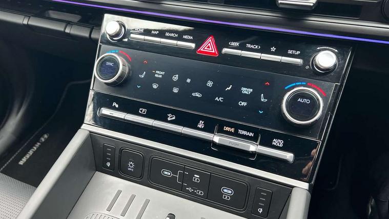 12.3" Drivers supervision instrument cluster with LCD display, 360 degree parking sensors, Blind spot collision avoidance assist (BCA), Blind spot view monitor (BVM), Bluelink and Wireless Apple Carplay/Android Auto, Bluetooth connectivity with voice recognition, Drive mode selector, Driver status monitor (DSM), Dual wireless phone charging pad, Emergency services call system, Forward collision avoidance assist (FCA 2.0), Head up Display, Highway drive assist 2 (HDA 2), Intelligent speed limit assist (ISLA), Lane departure warning system (LDW), Lane Follow Assist 2 (LFA 2), Lane keeping assist (LKA), Low washer fluid warning, Navigation based smart adaptive cruise control with stop and go, Over the air software updates (OTA), Parking Collision Avoidance Assist-Reverse (PCA-R), Power assisted steering, Remote smart parking assist, Safe exist assist (SEA), Smart electric tailgate with hand's free opening function, Surround view monitor, Self levelling suspension, Shift by Wire Gear Selector (SBW), 12.3" Touchscreen display with satellite navigation, 2nd Row USB C Ports x2 Charging, 3rd Row USB C Ports x2 Charging, Front USB C port 1 charging and 1 data/charging, Premium BOSE sound system with 12 speakers and subwoofer, Steering wheel audio, phone and cruise controls, Automatic headlights with dusk sensor, Automatic windscreen wipers with rain sensor, Black Styling (Skid plate, Fender upper garnish, Door side garnish, C/D pillars, Rear bumper moulding, DLO), Body colour bumpers, Digital centre mirror, Dynamic welcome lights, Electric adjustable/heated/auto power folding door mirrors, Front and rear electric windows, Heated rear window, Hidden C pillar assist handle, Hidden rear wiper, High beam assist, LED daytime running lights, LED Headlights, LED indicator lights, LED indicators in door mirrors, LED positioning lights, LED taillights, LED third brake light, Manual rear door blinds, Rear side wing doors, Rear windows and tailgate privacy glass, Roof rails, Solar glass windscreen and front windows, Windscreen acoustic film, Windscreen auto defog function, 2nd and 3rd row center armrest with cupholder, 3rd row head restraints, Centre rear head restraint, Driver and front passenger premium relaxation seats, Dual zone climate control air conditioning, Electrically adjustable front seats with 2 way electric lumbar support, Front head restraints, Front seats with memory, Heated front seats, Heated rear seats, Height and reach electrically adjustable steering column, Leather wrapped heated steering wheel, Luggage cover, Luggage hooks, Luggage net, Multi colour LED ambient lighting, Nappa leather upholstery, Rear head restraints, Single front passenger seat, Split folding (50/50) third row seats, Split folding (60/40), sliding and reclining second row seats, Sun Visors with driver and passenger illuminated vanity mirrors, Two front cup holders, UV-C Tray, Ventilated front seats, Trailer wiring pack - Santa Fe, 3 point seatbelts on all seats, Adjustable regenerative braking paddle shifters, Airbag - Front, front side, curtain and centre front airbags, Anti-lock brake system (ABS), Dynamic brake control, Electric parking brake with auto hold function, Electronic Stability Control (ESC), Hill start assist control (HAC), Manual child lock in rear doors, TSA (Trailer Stability Assist), Tyre pressure monitoring system, Immobiliser, Smart Key - Keyless entry with Power On/Off button, Black ink interior decals, 20" Black calligraphy alloy wheels, Tyre mobility kit,