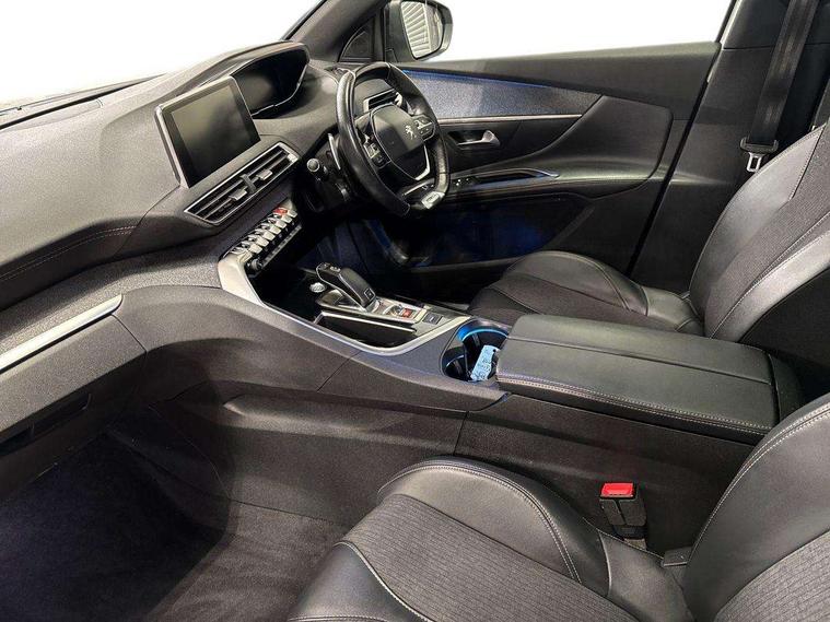 3D connected navigation + voice control, Android Auto, Auto start and stop system, Bluetooth telephone connection, Exterior temperature gauge with frost alarm, Headlight on warning buzzer, Lane departure warning system, Mirror screen with mirror link and car play, Multi function trip computer, PEUGEOT SOS and assistance, Smartphone wireless charging plate, Speed limit recognition, Sports button, Dynamic stability control, DAB Digital radio, MP3 connection, Steering wheel audio controls, USB socket, 2 X Rear number plate lights, Aluminium roof rails, Auto self levelling headlights, Automatic activation of hazard warning lights, Black front wing trim with chrome detail, Body colour door handles, Body coloured bumpers, Body coloured rear spoiler, Body protectors in black, Chrome boot sill trim strip, Chrome front fog light surround, Chrome rear bumper scuff plate, Chrome trim to lower side windows, Dark tinted rear side and tailgate windows, Door mirror mounted LED Peugeot lion approach lights, Electric front/rear windows with one touch/auto up/down, Electrically heated door mirrors, Front windscreen wiper with magic wash cleaning system, Full LED headlights with LED fog lights with static cornering function, sports front bumper and grille, Gloss black B and C pillar and aerodynamic deflector trim, Gloss black rear cluster connecting strip, Gloss black windscreen surround, GT Line emblem in satin copper, Heated rear windscreen with integrated antenna, LED daytime running lights, LED side indicator lights integrated into door mirrors, Lion grey front bumper scuff plate, Nera black door mirrors, Panoramic opening glass roof with electric blind, Power folding door mirrors with blind spot detection indicator and auto dipping function in reverse gear, Radiator grille in chrome edge trim with chequered design and black 'PEUGEOT' lettering, Rear LED Peugeot signature 'Claw Effect' lights, Rear side window blinds, Rear windscreen wiper with auto activation when reversing, Stainless steel roof arches, Twin exhaust tailpipe, Wheel arch protectors, 2 cupholders in front centre console, 2 individual folding 3rd row seats, 230V socket on rear centre console, 3 x 12V power sockets, 4 Grab handles retractable and damped, Aikinite stitching in armrest, gear lever and dashboard facia, Automatic dual-zone climate control, Blue ambient lighting for connecting zone, Blue ambient lighting to front door panels, central storage and cupholders, Blue ambient lighting to head up instrument panel, Electric power steering with reach and rake adjustable steering column, Flat folding rear seats, Flocked front door pocket interior with blue ambient lighting, Flocked glovebox interior, Fold flat front passenger seat with picnic table, Front central armrest with butterfly-wing opening and storage compartment, Front interior light with 2 reading spotlights and rear interior light with timer, Front passenger seat height adjust, Gear shift indicator, Headrests on 2nd/3rd row seats, Heating/air conditioning outlet in rear, Illuminated glovebox, Illuminated vanity mirror, Imila cloth/Leather upholstery, Isofix child seat fittings x 3 in the second row, LED interior illumination, Map pocket on front seat backs, Mistral floor mats with Aikinite contrast stitching, Mistral full grain perforated leather steering wheel with aikinite stitch detail and satin chrome 'GT Line' emblem, Rear centre console with air vents, Rear reading lights x 2, Rear seat underfloor storage, Retractable parcel shelf, Roof lining - Mistral black, Satin chrome digital instrument panel and touchscreen trim, Satin chrome front door panel recess trim, Satin chrome gear lever, Satin chrome interior door handles, Satin chrome scorpion's tail and toggle switch trim, Seatbelt unfastened on the move audible and visual alert for front and rear seats, Stainless Steel Scuff Plates, Twin rear coat hooks, Children's pack - 5008, Driver sport pack - 5008, Safety plus pack - 5008, Visibility pack - 5008, 3 Isofix location points, ABS + EBD + EBA, Adaptive driver and front passenger airbags including passenger airbag deactivation function, Collision mitigation braking system, Electronic parking brake, ESP and ASR traction control with deactivation switch, Five 3 point rear safety belts, Front and rear curtain airbags, Front optimised safety headrests and 3 x rear retractable headrests with height adjustable, Front seatbelt unfastened audible+visual warnings, Front side airbags, Front three point retractable seatbelts height adjustable with pre tensioners and force limiters, Front ventilated disc brakes, Hill start assist, Rear disc brakes, Rear three-point retractable seatbelts (x3) with pre-tensioners and force limiters in the outer rear seats, Tyre pressure monitor, Automatic door lock/re-lock after 30 seconds, Child lock control of rear doors and windows, Electric tailgate with Peugeot open & go system, Remote control central locking with two plip keys, Rolling code transponder immobiliser, Thatcham cat 1 ultrasonic alarm, Brumeo fabric interior trim, Satin chrome dash trim,