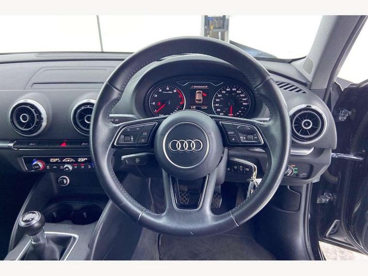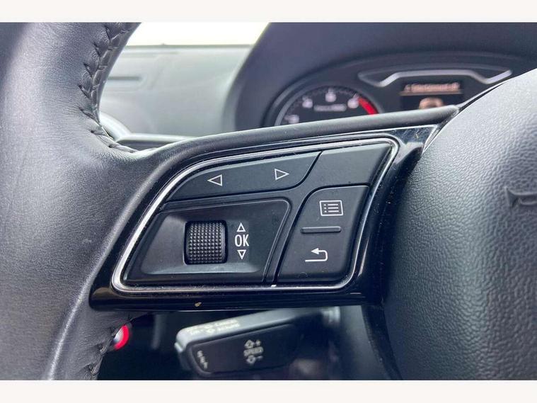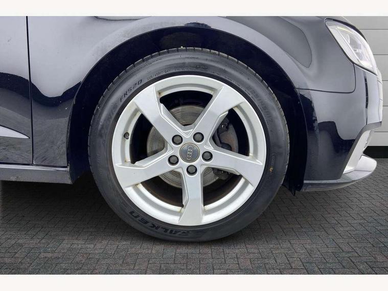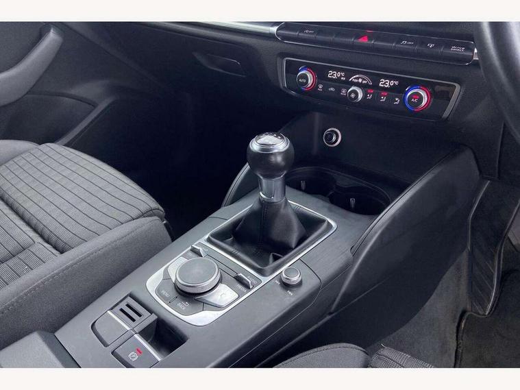 Audi connect, Audi drive select, Audi smartphone interface, Colour driver's information system display, Mobile telephone preparation - bluetooth interface, Service interval indicator, Speed limit display, Voice control system, 2 USB ports, Audi music interface, Auxiliary input socket, DAB Digital radio, Aluminium window trim, Body colour bumpers, Body colour door mirrors with integral indicators, Body colour roof spoiler, Chrome exhaust tailpipes, Electric front windows, Electric operated/heated door mirrors, Heated windscreen washer jets, LED daytime running lights, Matt black radiator grille, Rear wiper, Sport specific side air inlet grille and diffuser insert, 3 adjustable rear headrests, 4 lashing points to secure luggage, Adjustable front armrest, Aluminium door sill trims, Dual zone electronic climate control, Front and rear interior lights with delay, Front passenger seat isofix location point, Front sports seats, Front/rear floor mats, Height adjustable front seats, Height/depth adjustable steering column, Illuminated glovebox, ISOFIX child seat preparation+airbag deactivation, Jack and tool kit, Storage compartment in centre console, Storage compartment under front seats, Storage compartments in doors, Light and rain sensor pack - A3 Hatchback/Sportback, 3 point seatbelts on all seats, ABS/EBD, Active bonnet, Active front headrests, ASR, Curtain airbags, Driver and passenger side airbags, Driver/Front Passenger airbags, Drivers knee airbag, EDL, Electromechanical parking brake, ESC - Electronic Stability Control + traction control, Front passenger airbag deactivation, Manual rear child locks, Multi-Collision braking, Seatbelt warning, Tyre pressure monitor, Warning triangle and first aid kit, Anti theft alarm, Anti-theft wheel bolts, Remote control central locking, Thatcham category 1 alarm + immobiliser, Aluminium air vent surrounds, Aluminium trim elements, Space saver spare wheel,