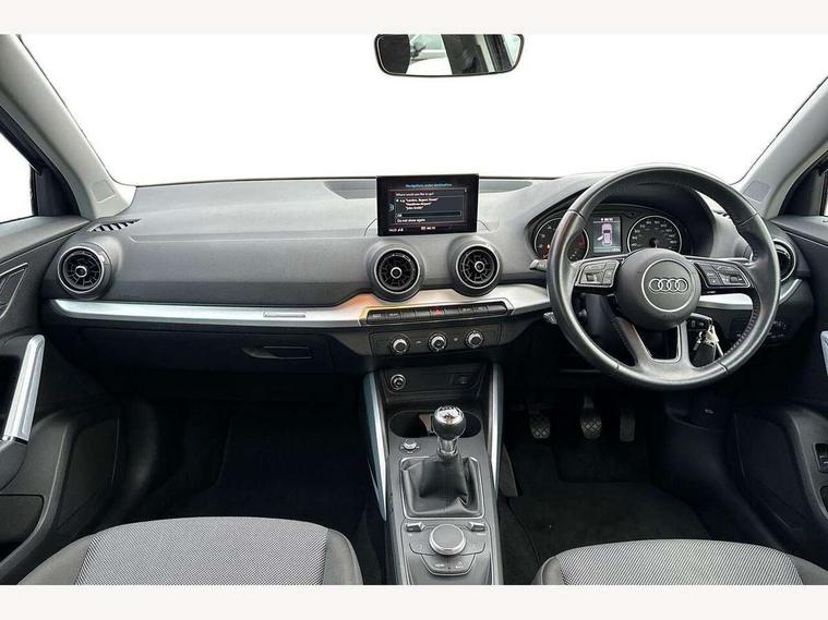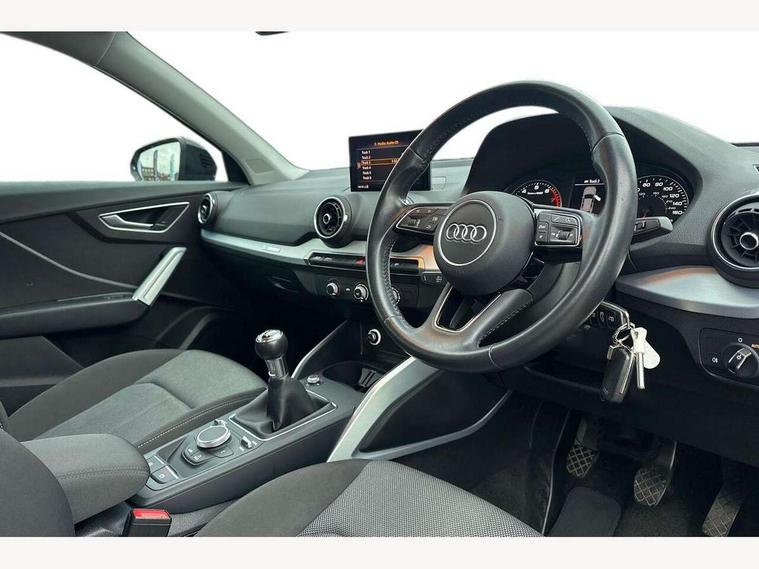 Audi drive select, Audi smartphone interface, Bluetooth hands free telephone connection, MMI - Multi Media Interface control system, MMI SD card Navigation, PAS, Service interval indicator, Voice control system, Dynamic suspension, Audi music interface, Aux input, CD player, DAB digital radio module, MMI radio plus with 7" colour MMI screen and MMI controller, USB port, Body colour door mirrors, Chrome exhaust tailpipe, Door mirror integrated indicators, Electrically adjustable and heated door mirrors, Front and rear electric windows, Rear wiper, Sunband for windscreen, Aluminium door sill trims, Centre console with storage/cupholders, Front and rear door pockets, Front and rear headrests, Front and rear velour floor mats, Front centre armrest, Front sports seats, Glovebox, Height adjustable front seats, Height/reach adjust steering wheel, ISOFIX on front passenger and rear outer seats, Storage compartment in rear centre console, Titanium grey cloth headlining, Non smoking pack - Q2, 3x3 point rear seatbelts, ABS+Electronic Brake force Distribution, Curtain airbags, Driver and passenger airbags, Driver and passenger side airbags, EDL + ASR, Electrically operated child locks on rear doors, Electromechanical parking brake, ESP, Multi-Collision braking, Pre-sense front with pedestrian recognition, Seatbelt warning light, Tyre pressure monitoring system, Warning triangle and first aid kit, Locking wheel bolts, Remote central locking, Thatcham category 1 alarm + immobiliser, Aluminium interior trim,