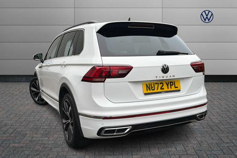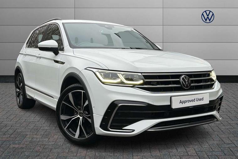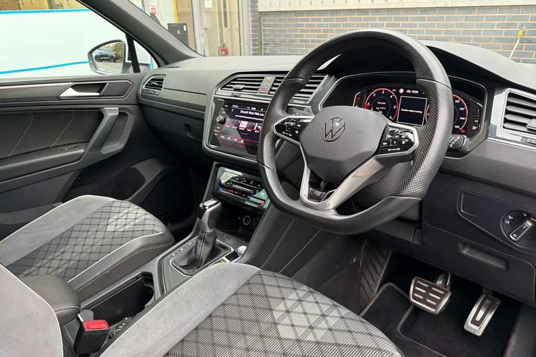 Adaptive cruise control ACC stop and go including speed limiter, App-Connect incl. App-Connect Wireless for Apple CarPlay and Android Auto, Bluetooth phone integration system, Distance control assist, Driver alert system, Driver profile selection, Dynamic road sign display, eCall emergency call system, Electromechanical speed sensitive power steering, Engine start/stop button, Lane keeping system Lane Assist, Lights on warning, Multifunction front facing camera, Outside temperature display, Premium multifunction display with multi colour display, Remote control boot opening, Rev counter, Revision / skills operating concept travel assistant, Service interval indicator, Speed limit display, Start/stop system with regenerative braking, Trip computer, Warning sound and light for doors and tailgate open, Battery regeneration during braking, Diesel particulate filter, Misfuel prevention device for diesel engine, Selective Catalytic Reduction, XDS electronic differential lock for improved traction and handling, 4 X 20 watt output, 8 Speakers, Diversity antenna for FM reception, Radio, SD card slot, Simultaneous pairing of 2 compatible mobile devices, SMS functionality - read, compose and send SMS messages using touch-screen display, Title and cover art display, USB C ports, Auto dimming interior rear view mirror, Automatic headlight control system, Body colour door handles, Chrome moldings on the side windows, Coming/leaving home lighting function, Dynamic headlight range control, Front and rear electric windows, Heated rear window, High level 3rd brake light, Laminated safety glass windshield, heat and sound insulating, LED headlamps with LED separate daytime running light and dynamic cornering light, LED rear combination lamps, LED rear number plate lights, License plate carrier in front and rear, Poor weather light and cornering light, R Line body kit, R Line side sills, Rain sensor windscreen wipers, Rear exhaust tailpipe, Rear fog lamp, Rear side wing doors, Rear spoiler in R style, Rear windscreen washer and wiper with interval delay, Side and rear windows in heat insulating glass, Trailer Stability Programme, Unique R Line badging, Windscreen wipers/ intermittent wipe + 4 position delay, 12V outlet in center console rear and in luggage compartment, 12V outlet in front and tray, 2 cup holders in front, 2 LED front reading lights, 2 LED rear reading lights, 3 bench rear seats in 2nd row, 3 rear headrests, 4 load lashing points, 40:20:40 split folding rear seats, Air Care Climatronic 3 zone automatic climate control with enhanced air filter and controls in the rear, Backrest release for left front seat, Black headlining, Brushed stainless steel pedals and footrest, Carpet mats in front and rear with decorative stitching in Gray, Climate control unit rear with touch function, Door and side trim panel in foam film, insert in leatherette, Front centre armrest, Front footwell illumination, Front seats head restraints (x-adjustment), Height adjustable front seats, Height/reach adjust steering wheel, Instrument lighting white adjustable panel illumination, Interior light with delay, Isofix Preparation 2 Rear child seats, Leather gear knob, Lockable cooled glovebox, Luggage compartment lighting, Luggage net, Rear bench seat asymetrically split folding, longitudinally movable and folding with load-through hatch and center armrest, Remote unlocking for rear seat backrest, Removable luggage cover, Removable rear headrests, Safety optimised front head restraints, Single front passenger seat, Sliding/reclining rear seats, Standard rear seat release, Storage compartment in driver's door, Storage compartment in passenger's door, Storage compartment in rear doors, Storage compartments in luggage area left and right, Storage tray on dashboard, Sun visors with illuminated vanity mirrors, Top front comfort seats, Variable boot floor, height adjustable and removable, Driver assistance pack plus - Tiguan DSG, 3 point seat belt for centre rear seats, 3 point seat belts with seat belt pretensioners for the outer rear seats, Active bonnet, Curtain airbags for front and rear passengers, Driver/Front Passenger airbags, Drivers knee airbag, Electronic parking brake with auto hold, Electronic Stability Control with driver steering recommendation, ABS, ASR, EDL, EDTC and trailer stabilization, Front assist with autonomous emergency braking (for Adaptive Cruise Control ACC up to 130 mph), Front disc brakes, Front passenger airbag deactivation, Front side airbags, Height adjustable front 3 point seatbelts + pretensioners, Hill hold control, Manual child proof rear door locks, Pedestrian monitoring system, Power assisted brakes, Proactive passenger protection system in combination with front assist, Rear disc brakes, Rigid safety cell with front and rear crumple zones, Two tone horn, Warning sound and light for front seat belts if unfastened, Anti theft alarm system with interior monitoring, backup horn and towing protection, Anti theft wheel bolts, Electronic engine immobiliser, Tool kit,