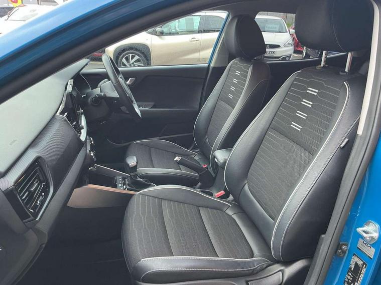 4.2" supervision colour cluster display, 8" touchscreen navigation, Apple car play/Android Auto with voice control, Blind spot collision avoidance assist, Blind spot collision warning, Drive mode selector, Electric power steering, Emergency call service, Emergency stop signalling system, External temperature display, Forward Collision-Avoidance Assist (FCA) - City/Pedestrian/Cyclist, Front parking sensors, Intelligent speed limit warning, Lane keeping assist system (LKAS), Driver attention warning (DAW) and High beam assist (HBA), Rear parking sensor, Reversing camera system, Smart cruise control, Trip computer, Intelligent Stop and Go, Audio system with 6 speakers, Bluetooth with music streaming, Front USB port, Steering wheel mounted controls, All round electric windows with drivers auto up/down function, Auto dimming rear view mirror, Automatic defog system, Automatic headlights control, Black rear roof spoiler with high mounted LED braking light, Black side sill, door garnish and wheel arch trims, Black/body colour bumpers, Body coloured exterior door handles, Chrome side window trim, Electrically adjustable/heated/folding door mirrors with LED indicators, Front and rear silver skid plates, Gloss black door mirrors with matt black lower housing, GT-Line body kit, Headlight levelling device, Heated rear window, High gloss black and satin radiator grille, LED Bi-function projection headlights with static bending, LED daytime running lights, LED front fog lights, LED position light, LED rear combination lights, Privacy glass - Rear windows and tailgate, Rain sensing front wipers, Rear fog lights, Rear side wing doors, Rear wash/wipe, Roof rails, Shark fin antenna, Solar windshield glass, Speed variable front aeroblade wipers, Tinted glass, Welcome and follow-me home light functionality, Windscreen Washer Level Warning, 12V power point front, 3 seat bench in 2nd row, 60/40 split folding rear seat, Air filter, All-round height adjustable headrests, Aluminium pedals, Automatic air conditioning, Centre armrest storage box, Centre console with cupholders, D-Cut perforated leather trimmed steering wheel, Dash illumination dimmer switch, Driver's seat height adjuster, Front and centre cabin lights, Front and rear door map pockets with bottle holder, Gear shift indicator, Glovebox illumination, GT-Line cloth/faux leather upholstery, Heated front seats, Heated steering wheel, ISOFIX Child seat top tethers and anchor fixings outer rear seats, Leather trimmed gearshift, Luggage area light, Luggage area parcel shelf, Luggage net, Luggage net with hooks, Overhead console lamp, Overhead console with sunglasses cases, Passenger front seatback pockets, Passenger seat height adjuster, Rear USB charging port, Satin chrome interior door handles, Single front passenger seat, Sunvisors with vanity mirror illumination (Driver and front passenger), Tilt/telescopic adjustable steering wheel, ABS with Electronic Brakeforce Distribution (EBD) and Brake Assist System (BAS), All round 3-point seatbelts, Electronic stability control (ESC) and vehicle stability management (VSM), Front passenger airbag cut-off switch, Front seatbelt pretensioners + load limiters, Height adjustable front seatbelts, Hill start assist control (HAC), Impact sensing auto door unlocking, Manual child lock in rear doors, Rear seat Occupancy alert, Seatbelt reminder warning, Twin curtain airbags, Twin front airbags, Twin front side airbags, Tyre pressure monitoring system, Alarm system, Door deadlocks, Engine immobiliser, Locking wheel nuts, Smart key with engine start/stop button, Speed sensitive auto door locking, Visible vehicle identification number, High gloss black centre fascia, 17" GT-Line alloy wheels, Tyre mobility kit,