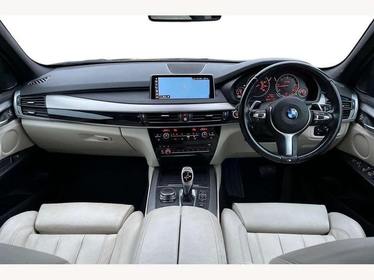 20GB Hard drive, 6.5" colour display screen, BMW online + Apps interface, BMW remote services, BMW Teleservices, Brake force display, Check control system, iDrive controller and display with 10.2" colour display monitor, Lights on warning, On board computer, Outside temperature gauge, Park distance control, Professional multimedia navigation system, Real time traffic information, Remote tailgate release, Service interval indicator, Servotronic PAS, Stop/start button, Voice control system, Adaptive M suspension, Diesel particulate filter, Sport automatic transmission, Auxiliary point for auxiliary devices, BMW professional twin tuner radio with single CD player and MP3 CD playback facility, DAB Digital radio, Auto dimming rear view mirror, Auto upper tailgate release, Body colour bumpers, Body colour door handles, Body colour door mirrors, Chrome exhaust tailpipes, Clear indicator lenses, Door mirror integrated indicators, Double kidney grille with chrome surround and black slats, Downlights in exterior door handles, Electric folding/heated door mirrors + electrochromic on drivers side, Electric front/rear windows with anti-trap, Electric headlight adjustment, Follow me home headlights, Green tinted glass, Headlight washer jets, Heat insulated glass, Heated washer nozzles, Individual door sill finishers, Intermittent rear wash/wipe, M aerodynamic body kit, Rain sensor with auto light activation system, Two piece tailgate, 12V accessory power point in centre console, 12V socket in luggage compartment, 2 x 12V socket in rear centre console, 40:20:40 split folding rear seats, Ambient interior lighting, Anthracite Velour floor mats, Boot lashing points, Electric front seats + driver memory, Front and rear cupholders, Front armrest with storage bin, Front/rear courtesy lights with soft on/off dimming, Front/rear reading lights, Gearshift paddles on steering wheel, Heated front seats, Height adj rear head restraints, Illuminated glovebox with lock, Isofix child seat preparation, LED footwell lights, Luggage compartment cover, M leather steering wheel, Reach + rake adjustable steering column, Securing rings in luggage compartment, Storage bins on all doors, Sunvisors with illuminated vanity mirrors, Tilt/height adjustable front head restraints, Toolkit located in luggage compartment, Extended storage pack - X5, 3 rear 3 point seatbelts, ABS, ADB - Automatic Differential Brake, Automatic Stability Control (ASC), BMW emergency call, Child locks on rear doors, Cornering brake control (CBC), Crash Sensor - activates hazard/interior lighting + unlocks doors, Driver/Front Passenger airbags, DSC - Dynamic Stability Control, Dynamic brake control, Dynamic Traction Control - DTC, Electronic brake force distribution, Electronic parking brake, Front and rear head airbags, Front passenger airbag deactivation, Front passenger seat occupancy sensor, Front side airbags, Height adjustable front seatbelts, Hill start assist, Pyrotechnically pre-tensioned front seatbelts, Tyre pressure monitor, Warning triangle and first aid kit, Locking wheel nuts, Remote central locking, Thatcham cat 1 remote alarm/immobiliser, Run flat tyres,