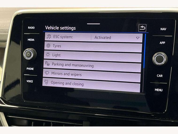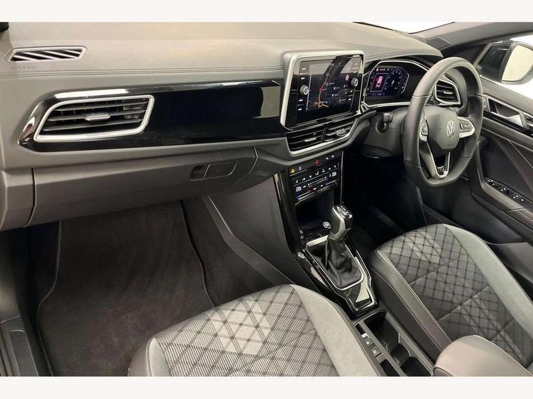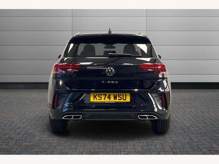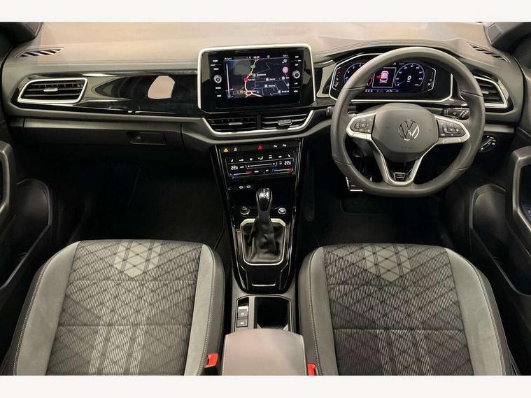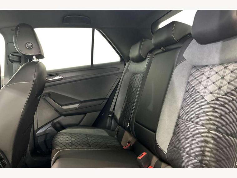 10.25" Digital cockpit pro, Advanced driver attention and drowsiness monitor, Emergency call service, Lane keeping system Lane Assist, Mobile phone interface, Modified key software - reduce switch off time for key status change to Long no motion, Online services, Park assist including front and rear parking sensors, Service interval indicator, Tailgate/trunk lid release from outside, Think blue trainer driver tips and journey analysis, Warning sound and light for front seatbelts unfastened, Wireless app connect, Battery regeneration during braking, Start/stop function with battery regeneration, DAB Digital radio, Diversity antenna for FM reception, Front and rear 6 speakers, Music playback - MP3, WMA and AAC files, Premium USB cable in choice of either Apple or Android smartphone compatibility, SD card slot, Simultaneous pairing of 2 compatible mobile devices, Title and cover art display, We Connect and We Connect Plus functionality, Auto dimming interior rear view mirror, Automatic hazard lights activation under emergency braking, Automatic headlight control with LED separate daytime running lights with coming/leaving home function, Body coloured exterior mirror housings and door handles, Electrically adjustable and heated door mirrors, Extended roof spoiler, Exterior mirrors aspherical on driver side, convex on front passenger side, External USB type C socket and charging sockets, Front windscreen wiper with intermittent wipe and 4 position delay, Heated rear window, LED 3rd brake light, LED rear combination lamps, LED rear number plate lights, Power windows with comfort operation and circuit breaker, Privacy glass for rear side windows and rear window, R-Line design body coloured bumpers, Rain sensor, Rear exhaust tailpipe, Rear fog light on one side and reversing lights on both sides, Rear side wing doors, Rear wash/wipe with intermittent wipe setting, Remote electrically foldable door mirrors, puddle lights and reverse activated passenger's door mirror, 12V power socket in centre console, 3 rear head restraints, 3 seat bench in 2nd row, 4 load lashing points in luggage compartment, Air care climatronic air conditoning system with active combination filter and 2-zone temperature control, Black roof lining, Chrome plated decorative trims, Chrome plated radiator grille inserts, air vent surrounds and light switch surrounds, Door and side trim panel with leatherette insert, Front + rear carpet mats, Front centre armrest, Front cupholders x 2, Front footwell illumination, Front reading light, Front scuff plates with R Line logo, Front seat back storage pockets, Glove compartment door with light, Instrument lighting, white adjustable panel illumination, Interior ambient lighting and surround lighting, Interior light delay, Isofix child seat preparation, Leather gearshift handle, Load-through provision with cup holder when folded down ('Unsplit rear seat bench, split folding backrest, with centre armrest), Luggage compartment lighting, Single front passenger seat, Stainless steel pedals, Storage compartment in left and right luggage area, Storage compartment in rear doors, Storage compartments in driver and front passenger doors, Sunvisors with illuminated vanity mirrors, Variable boot floor, height adjustable and removable, Driver assistance pack without proactive passenger protection - T-Roc, 3 point height adj front seatbelts + pretensioners, 3 point seatbelts in outer rear with ECE label, ABS, Child locks on rear doors, City emergency braking and pedestrian monitoring, Driver and front passenger airbag with front passenger airbag deactivation, Driver and front passenger safety-optimised head restraints, Drivers seatbelt reminder, Electronic parking brake, Electronic Stability Control (ESC) inc EDL (Electronic Differential Lock) and ASR (Traction Control), Front and rear passengers curtain airbag system including front side airbags, Hill start assist, Predictive pedestrian protection, Rear disc brakes, Two tone horn, Tyre pressure loss indicator, Volkswagen roadside assistance, Piano black decorative inserts in dashboard and front door trim panels, Trims for alloy wheels,