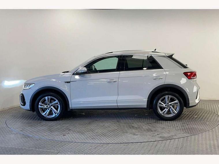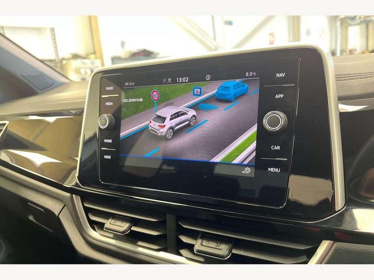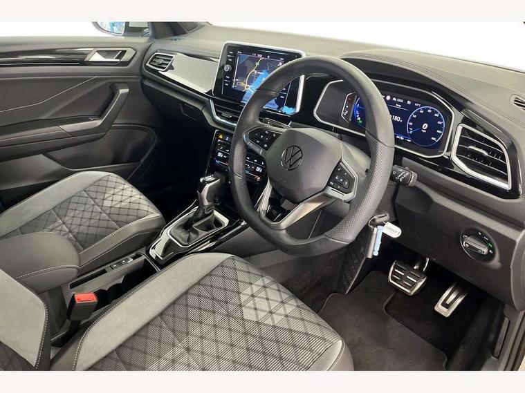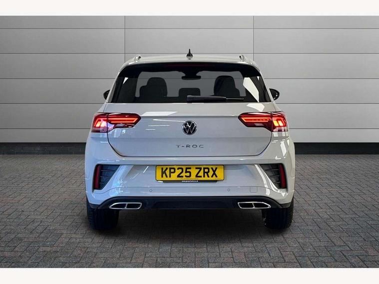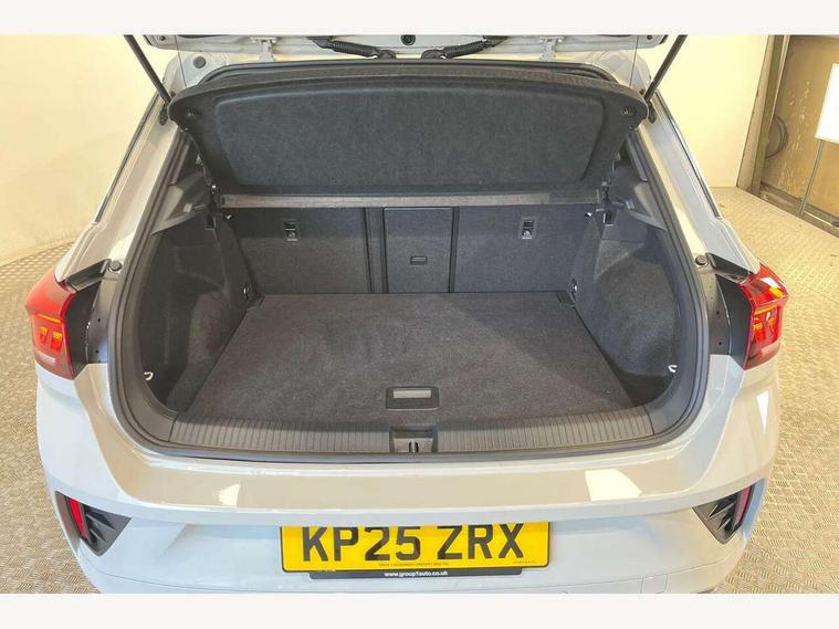10.25" Digital cockpit pro, Advanced driver attention and drowsiness monitor, Dynamic road sign display, Emergency call service, Lane keeping system Lane Assist, Mobile phone interface, Modified key software - reduce switch off time for key status change to Long no motion, Online services, Park assist including front and rear parking sensors, Service interval indicator, Tailgate/trunk lid release from outside, Think blue trainer driver tips and journey analysis, Warning sound and light for front seatbelts unfastened, Wireless app connect, Battery regeneration during braking, Start/stop function with battery regeneration, DAB Digital radio, Diversity antenna for FM reception, Front and rear 6 speakers, Music playback - MP3, WMA and AAC files, Premium USB cable in choice of either Apple or Android smartphone compatibility, SD card slot, Simultaneous pairing of 2 compatible mobile devices, Title and cover art display, We Connect and We Connect Plus functionality, Auto dimming interior rear view mirror, Automatic hazard lights activation under emergency braking, Automatic headlight control with LED separate daytime running lights with coming/leaving home function, Body coloured exterior mirror housings and door handles, Electrically adjustable and heated door mirrors, Extended roof spoiler, Exterior mirrors aspherical on driver side, convex on front passenger side, External USB type C socket and charging sockets, Front windscreen wiper with intermittent wipe and 4 position delay, Heated rear window, LED 3rd brake light, LED rear combination lamps, LED rear number plate lights, Power windows with comfort operation and circuit breaker, Privacy glass for rear side windows and rear window, R-Line design body coloured bumpers, Rain sensor, Rear exhaust tailpipe, Rear fog light on one side and reversing lights on both sides, Rear side wing doors, Rear wash/wipe with intermittent wipe setting, Remote electrically foldable door mirrors, puddle lights and reverse activated passenger's door mirror, 12V power socket in centre console, 3 rear head restraints, 3 seat bench in 2nd row, 4 load lashing points in luggage compartment, Air care climatronic air conditoning system with active combination filter and 2-zone temperature control, Black roof lining, Chrome plated decorative trims, Chrome plated radiator grille inserts, air vent surrounds and light switch surrounds, Door and side trim panel with leatherette insert, Front + rear carpet mats, Front centre armrest, Front cupholders x 2, Front footwell illumination, Front reading light, Front scuff plates with R Line logo, Front seat back storage pockets, Glove compartment door with light, Instrument lighting, white adjustable panel illumination, Interior ambient lighting and surround lighting, Interior light delay, Isofix child seat preparation, Leather gearshift handle, Load-through provision with cup holder when folded down ('Unsplit rear seat bench, split folding backrest, with centre armrest), Luggage compartment lighting, Single front passenger seat, Stainless steel pedals, Storage compartment in left and right luggage area, Storage compartment in rear doors, Storage compartments in driver and front passenger doors, Sunvisors with illuminated vanity mirrors, Variable boot floor, height adjustable and removable, Driver assistance pack without proactive passenger protection - T-Roc, 3 point height adj front seatbelts + pretensioners, 3 point seatbelts in outer rear with ECE label, ABS, Child locks on rear doors, City emergency braking and pedestrian monitoring, Driver and front passenger airbag with front passenger airbag deactivation, Driver and front passenger safety-optimised head restraints, Drivers seatbelt reminder, Electronic parking brake, Electronic Stability Control (ESC) inc EDL (Electronic Differential Lock) and ASR (Traction Control), Front and rear passengers curtain airbag system including front side airbags, Hill start assist, Predictive pedestrian protection, Rear disc brakes, Two tone horn, Tyre pressure loss indicator, Volkswagen roadside assistance, Piano black decorative inserts in dashboard and front door trim panels, Trims for alloy wheels,