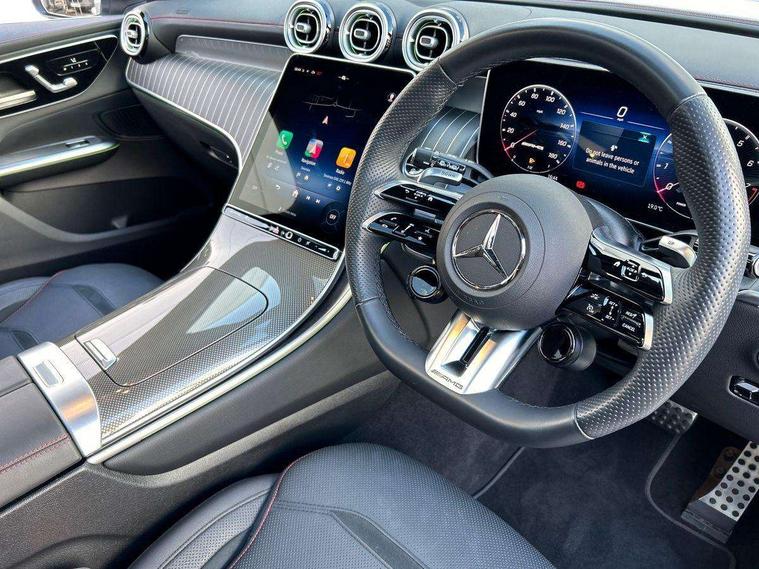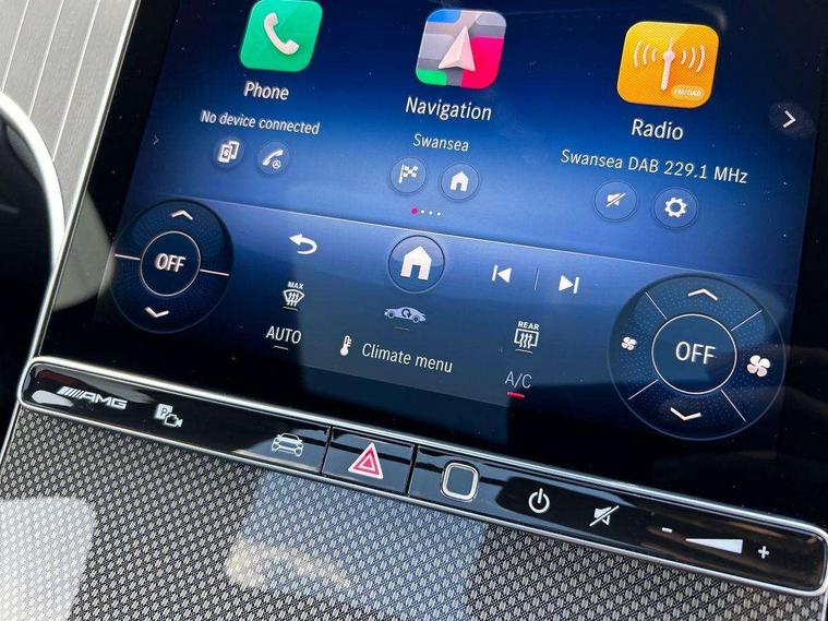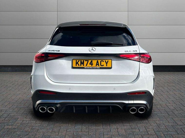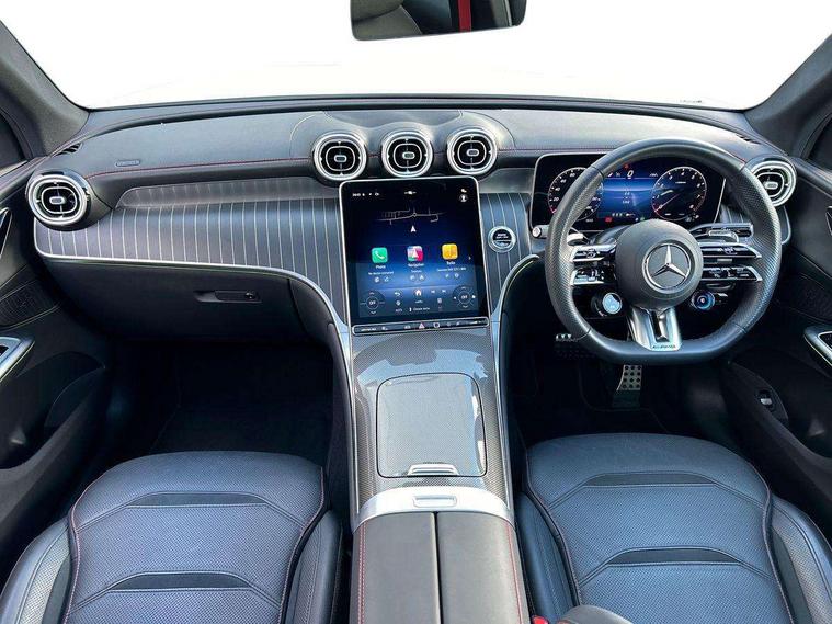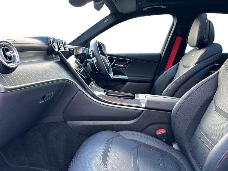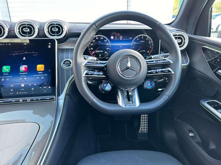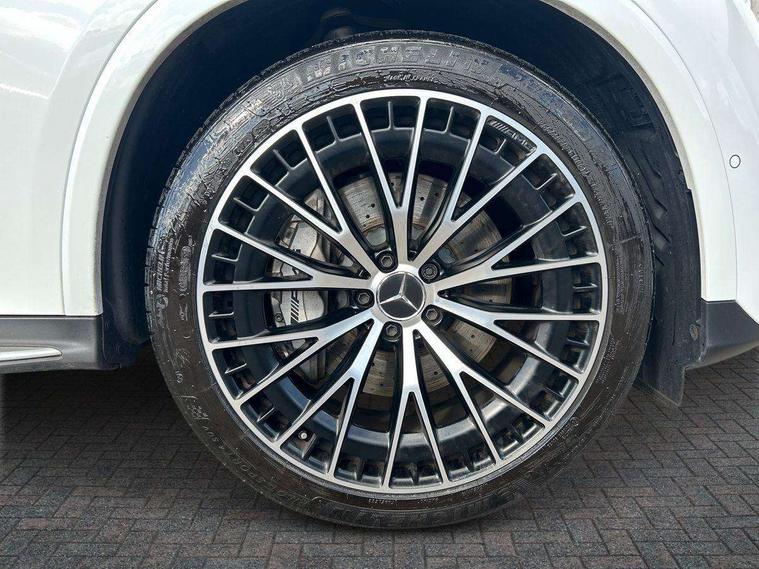 11.9" high resolution multimedia colour display, 12.3" Digital individually configurable instrument display, 360 degree view camera, Active brake assist plus, Active parking assist with parktronic system, AMG DYNAMIC SELECT with a choice of driving modes (Slippery, Comfort, Sport, Sport+, Individual), Attention assist, Blind spot assist, Bluetooth interface for hands free telephone, Dashcam - front camera for video recording, Easy pack automatic powered tailgate, eCall emergency call system, MBUX augmented reality for navigation, MBUX navigation premium, MBUX voice control activated by keywords "Hey Mercedes", Mercedes connect me with remote online services, Outside temperature display, Pre-installation for digital key transfer, Rear axle steering, Remote boot release, Service indicator (ASSYST), Smartphone integration, Speed limit assist, Sports direct steer system with speed sensitive steering, Status display for rear seat belts in instrument cluster, Traffic sign assist, Trip computer, Wireless charging surface integrated into quick stowage tray in front of centre console, 4MATIC permanent four wheel drive, 63 litre fuel tank, 9G TRONIC plus automatic transmission, Agility control comfort suspension, Petrol Particulate Filter (PPF), DAB digital radio tuner, MBUX extended functions, Adaptive brake lights, AMG bodystyling front apron, rear apron and side skirts, AMG exhaust system with sporty engine sound, AMG fuel cap, AMG radiator grille with vertical struts in high gloss chrome and AMG logo, AMG spoiler lip, Auto dimming rear view mirror, Auto headlights, Body colour door mirrors, Chrome roof rails, Digital light LED headlights, Electric windows with one touch opening/closing and obstruction sensors, Electrically adjustable and heated door mirrors, Headlight washers, Heat and noise insulating acoustic glass, Heated rear window, High level LED brake light, Illuminated front door sill panels, Integrated LED daytime running lights, LED indicator lights, LED rear fog lights, LED tail lamp, Mercedes AMG exterior, Rain sensor windscreen wipers, Range adjustable headlights, Rear side wing doors, Rear wiper, Tinted glass all round green, Variable front intermittent wipers, Welcome and follow-me home light functionality, 3 seat bench in 2nd row, 3 Spoke multi function AMG steering wheel in black nappa leather, 40:20:40 split folding rear seats, Ambient lighting, AMG sports seats, AMG steering wheel buttons, Artico leather dashboard with contrast stitching, Audio and onboard settings control on multifunction steering wheel, Automatic child seat recognition sensor, Black floor mats with AMG lettering, Double cup holder in centre console, Electrically height/reach adjustable steering column, Front centre armrest with stowage compartment, Front head restraints, Gearshift paddles on steering wheel, Heated front seats, Illuminated door sill panels with AMG lettering and with exchangable cover, Illuminated glove compartment, Load compartment cover, Mercedes AMG interior, Rear head restraints, Rear top tether child seat ISOFIX attachment, Single front passenger seat, Sports pedals with stainless steel surfaces and rubber studs, Sun visors with illuminated vanity mirrors, THERMATIC 2 zone automatic climate control, Interior lighting pack - GLC AMG, Memory pack - GLC, Mirror pack - GLC AMG, Seat comfort package - GLC AMG, Stowage pack - GLC AMG, USB Plus Pack - GLC, 3 rear 3 point seatbelts, Active bonnet, Adaptive brake system with HOLD function and brake drying in the wet, Anti-lock braking system (ABS), Child proof door locks, Dual-stage airbags - driver and front passenger, sidebags in front seats, driver kneebag, pelvis bag and window bags for driver, Electronic key chrome surround, Electronic parking brake, Electronic Stability Programme (ESP), Front and rear seatbelt reminder, Front passenger seat occupancy sensor, Front seatbelt pretensioners, Hill start assist, Silver brake calipers, Tyre pressure monitoring system, Warning triangle and first aid kit, Central locking with interior switch, automatic locking and crash sensor with emergency opening function, Guard 360 degree vehicle protection, Immobiliser, Keyless Go comfort access, Anthracite linestructure lime wood trim, Black open-pore aluminium lines wood trim, Centre console in metal structure finish, 21" AMG Y spoke light alloy wheels painted in tantalum grey with high sheen rim finish, TIREFIT with tyre inflation compressor,