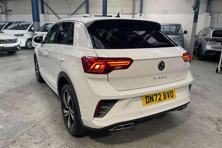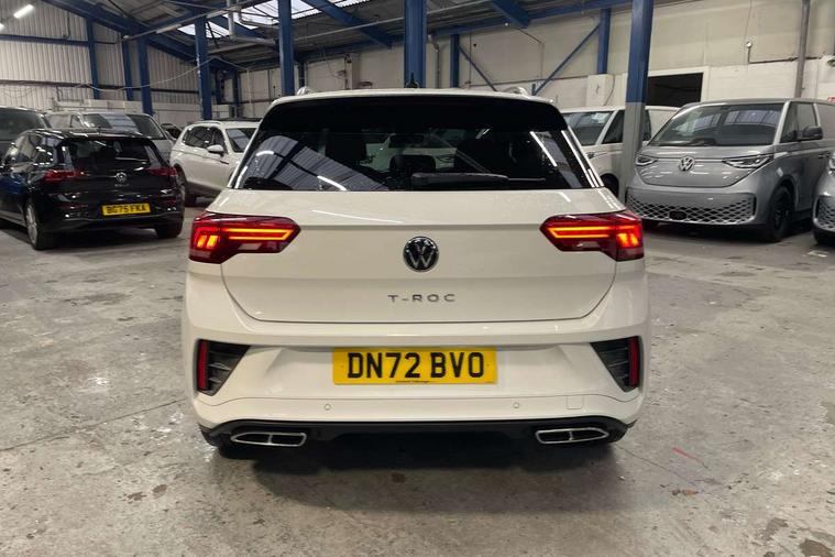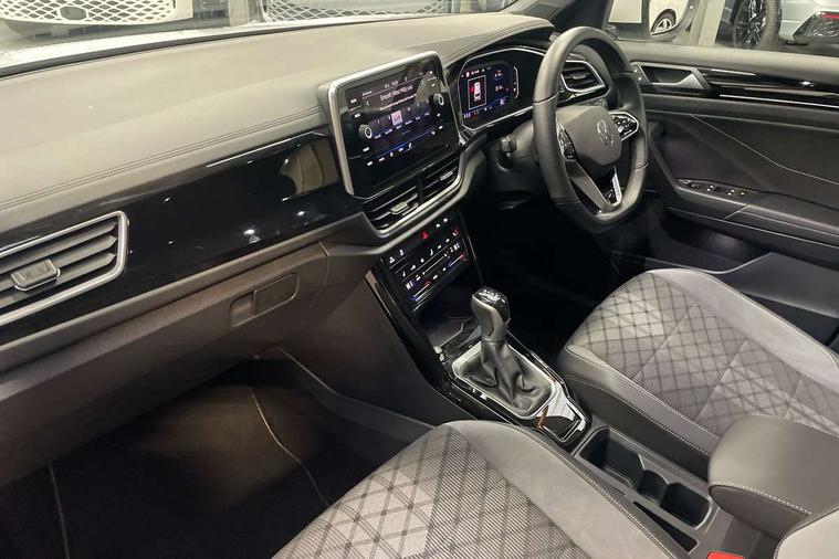 10.25" Digital cockpit pro, Bluetooth mobile phone interface, Driver alert system with fatigue detection, Driver tips and journey analysis, Emergency call service, Lane keeping system Lane Assist, Modified key software - reduce switch off time for key status change to Long no motion, Online services, Park assist including front and rear parking sensors, Service interval indicator, Tailgate/trunk lid release from outside, Think blue trainer driver tips and journey analysis, Warning sound and light for front seatbelts unfastened, Wireless app connect, Battery regeneration during braking, Start/stop function with battery regeneration, Diversity antenna for FM reception, Front and rear 6 speakers, Music playback - MP3, WMA and AAC files, Premium USB cable in choice of either Apple or Android smartphone compatibility, SD card slot, Simultaneous pairing of 2 compatible mobile devices, Title and cover art display, We Connect and We Connect Plus functionality, 3rd brake light, Auto dimming interior rear view mirror, Automatic hazard lights activation under emergency braking, Automatic headlight control with LED separate daytime running lights with coming/leaving home function, Extended roof spoiler, Exterior mirrors aspherical on driver side, convex on front passenger side, External USB type C socket and charging sockets, Front windscreen wiper with intermittent wipe and 4 position delay, Heated rear window, LED Plus headlamps, LED rear combination lamps, LED rear number plate lights, LED tail lamp rear comination lamps, Power windows with comfort operation and circuit breaker, R-Line design body coloured bumpers, Rain sensor, Rear exhaust tailpipe, Rear fog light on one side and reversing lights on both sides, Rear side wing doors, Rear wash/wipe with intermittent wipe setting, Remote electrically foldable door mirrors, puddle lights and reverse activated passenger's door mirror, 12V power socket in centre console, 3 rear head restraints, 3 seat bench in 2nd row, 4 load lashing points in luggage compartment, Air care climatronic air conditoning system with active combination filter and 2-zone temperature control, Black roof lining, Chrome plated radiator grille inserts, air vent surrounds and light switch surrounds, Door and side trim panel with leatherette insert, Drawer under drivers seat, Front + rear carpet mats, Front centre armrest, Front cupholders x 2, Front footwell illumination, Front reading light, Front scuff plates with R logo, Instrument lighting, white adjustable panel illumination, Interior ambient lighting and surround lighting, Interior light delay, Isofix child seat preparation, Leather gearshift handle, Load-through provision with cup holder when folded down ('Unsplit rear seat bench, split folding backrest, with centre armrest), Luggage compartment lighting, Single front passenger seat, Stainless steel pedals, Storage compartment in left and right luggage area, Storage compartment in rear doors, Storage compartments in driver and front passenger doors, Sunvisors with illuminated vanity mirrors, Variable boot floor, height adjustable and removable, Driver assistance pack without proactive passenger protection - T-Roc, 3 point height adj front seatbelts + pretensioners, 3 point seatbelts in outer rear with ECE label, ABS, Child locks on rear doors, Driver and front passenger airbag with front passenger airbag deactivation, Driver and front passenger safety-optimised head restraints, Drivers seatbelt reminder, Electronic parking brake, Electronic Stability Control (ESC) inc EDL (Electronic Differential Lock) and ASR (Traction Control), Front and rear passengers curtain airbag system including front side airbags, Front assist with city emergency braking and pedestrian monitoring, Front seat side impact airbags, Hill start assist, Predictive pedestrian protection, Rear disc brakes, Single tone horn, Tyre pressure loss indicator, Volkswagen roadside assistance, Alarm with interior protection, Anti-theft alarm system with interior monitoring, backup horn, and towing protection, Remote central locking with SAFELOCK, radio remote control with 2 remote control folding keys, Trims for alloy wheels,