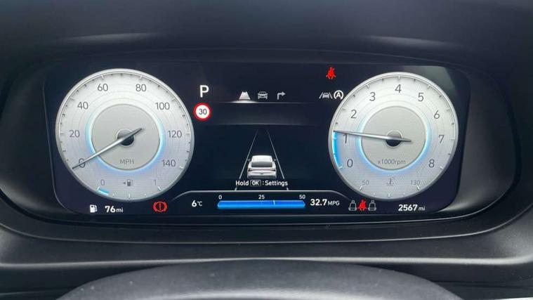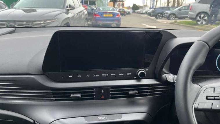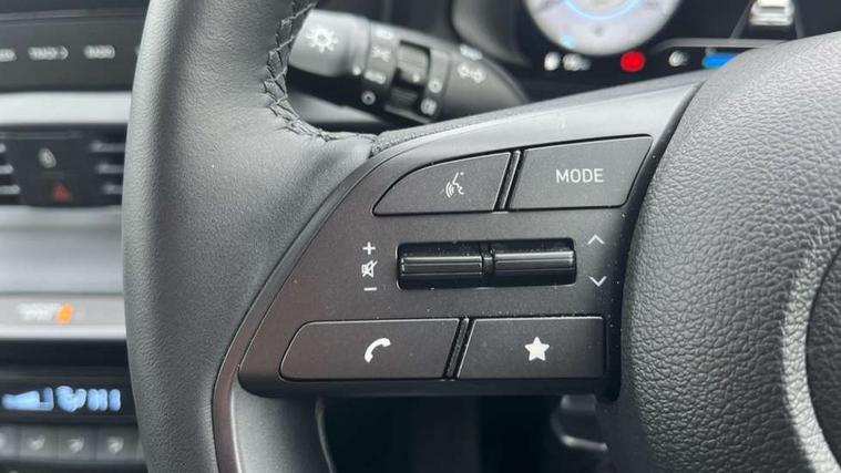 10.25" touchscreen + navigation, 2nd Gen eCall, 8" Touchscreen DAB Radio with android auto and apple carplay, Forward collision assist with car, pedestrian and cycle detection, Front parking sensor, Intelligent speed assist, Intelligent speed limit warning, Lane follow assist, Lane keep assist, MAP OTA updates, PAS, Rear parking sensor, Rear view camera with dynamic guidelines, USB C port front, USB C Port in rear, Automatic headlights with dusk sensor, Electric adjustable heated door mirrors, Electric folding door mirrors, Front grille mesh pattern design, High beam assist, LED 3rd brake light, LED daytime running lights, LED Headlights, LED taillights, Privacy glass - Rear windows and tailgate, Rain sensor, Rear side wing doors, Rear wiper, Repositioned flat metal hyundai emblem, Trailer wiring, 3 seat bench in 2nd row, Adjustable head restraints, Automatic air conditioning, Cloth upholstery, Floor mats, Heated front seats, Heated steering wheel, Leather steering wheel, Multi colour ambient lighting, Single front passenger seat, 3x3 point rear seatbelts, ABS with front and rear diagonally split, Autonomous emergency braking, Child locks on rear doors, Front ventilated disc brakes, Rear solid disc brakes, Tyre pressure monitoring system, 17" Alloy wheels, Tyre repair kit,