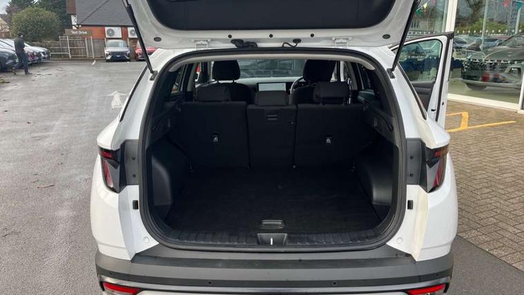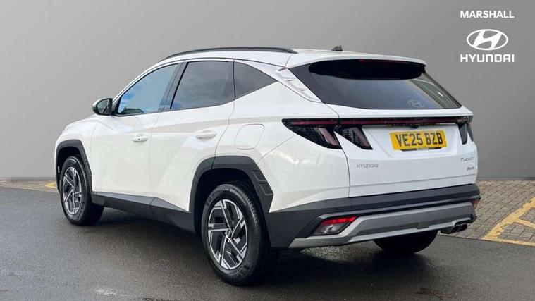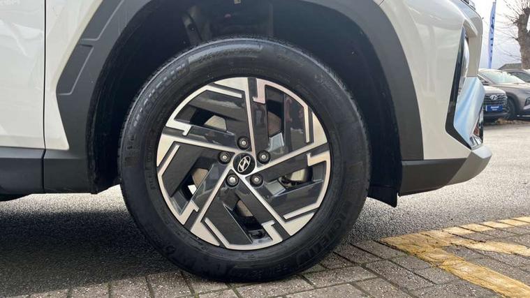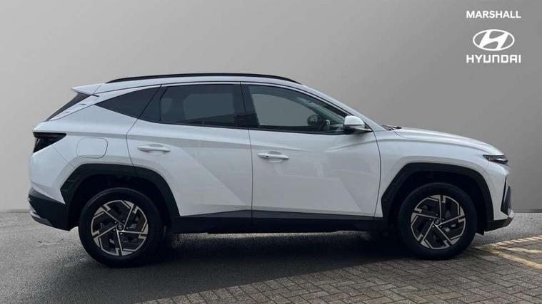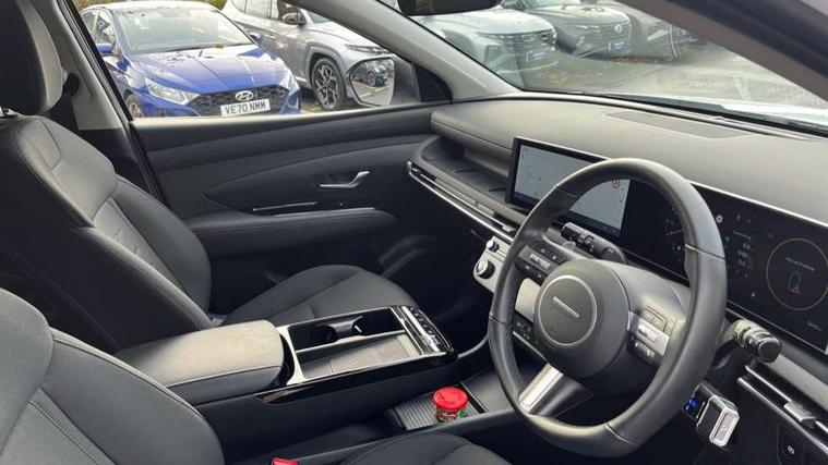 12.3" LCD display with driver's supervision instrument cluster, 12.3" widescreen navigation with bluelink and mapcare, Bluetooth system, Cruise control, Digital clock, Drive mode selector, Driver attention warning, E-call, Emergency stop signalling system, Forward Collision Avoidance Assist (FCA) - Car, Pedestrian and Cycle, Front and rear parking sensors, Hyundai road side assistance, Intelligent speed limit assist, Lane follow assist, Lane keep assist, Over the air updates(OTA), PAS, Rear camera and guidance parking system, Rev counter, Tailgate open warning light, Trip computer, Trip odometer, Voice recognition, Water temperature gauge, Windscreen washer fluid sensor and warning indicator, Wireless Apple CarPlay/Android Auto, Wireless phone charging pad, Charging cable - 7 pin type 2, Charging cable - Emergency 3 pin connector mode 2 (ICCB), 2 front and 2 rear speakers with 2 tweeters, 2 front and 2 rear USB-C ports, DAB Digital radio, Steering wheel mounted audio/phone controls, Adjustable intermittent front windscreen wipers with aero wiper blade, Auto dimming rear view mirror, Automatic defog system, Automatic headlights with dusk sensor, Automatic windscreen wipers with rain sensor, Black wheel arches, Body colour bumpers, Body colour door mirrors with integrated indicators, Body colour exterior door handles, Electrically adjustable, heated and power folding door mirrors, Follow me home headlights, Front and rear electric windows with anti-trap mechanism and one touch control, Front fog lights, LED 3rd brake light, LED daytime running lights, LED Headlights, LED rear lights, Positioning Lights - LED, Privacy glass - Rear windows and tailgate, Rear side wing doors, Rear wash/wipe with intermittent wipe setting, Roof rails, Soft touch rear door paneling, Tinted glass with windscreen shade band, Trailer stability assist, 12V power outlets in front console and luggage compartment, 3 seat bench in 2nd row, 40/20/40 split folding rear seat, 64 colours interior ambient lighting, Adjustable head restraints (Up and down), Cupholders in rear armrest, Door courtesy lights, Driver and passenger sunvisors with illuminated LED vanity mirrors, Driver's seat manual height adjust, Dual zone climate control, Front and rear door pockets, Front armrest with storage box, Front centre console and door bottle holders, Height/reach adjustable steering column, Illuminated/air conditioned glove compartment, ISOFIX child seat anchorage points attached on outer rear seats, Leather wrapped steering wheel and gear knob, LED interior lighting, Luggage compartment lighting, Luggage cover, Luggage hooks, Luggage net, Manual height adjustable front passenger seat, Map and reading lights, Premium cloth upholstery, Rear seat remote folding function, Reclining rear seats, Retractable load cover, Single front passenger seat, Sunglasses holder, Touch sensitive climate controls with temperature dials, Underfloor boot compartment, Trailer wiring package - Tucson, 3x3 point rear seatbelts, Active bonnet, Airbag - Front, front side, curtain and centre front airbags, Anti-lock brake system (ABS), Brake assist function, Childproof rear door locks, Curtain airbag roll over sensor, Downhill brake control, Electric parking brake, Electronic stability control, Front and rear seatbelt reminder, Front passenger airbag deactivation switch, Front seatbelt pretensioners, Hill start assist control (HAC), Multi-Collision braking, Outer rear seatbelt height adjustment, Seatbelt height adjustment for front seats, Traction control, Tyre pressure monitoring system with individual tyre pressure display - TPMS, Vehicle stability management, Deadlocks, Immobiliser, Locking wheel nuts, Remote control central locking, Smart key with keyless entry and engine start/stop button, Speed sensitive auto door locking, Thatcham category 1 alarm, 17" Alloy wheels, Tyre repair kit,