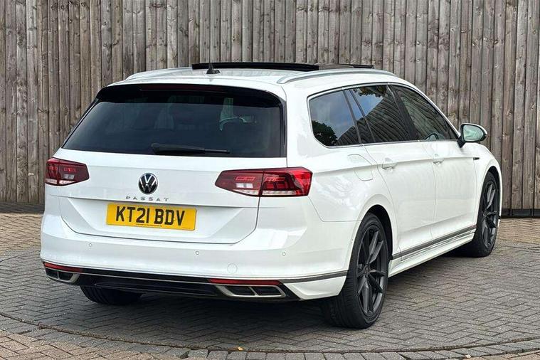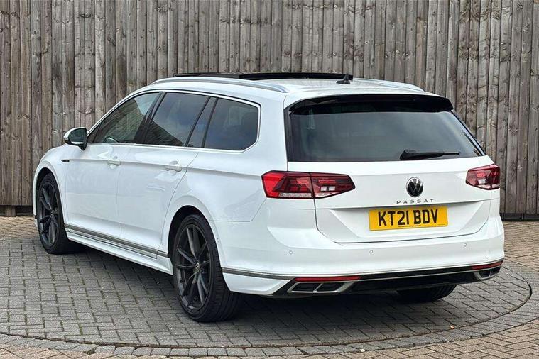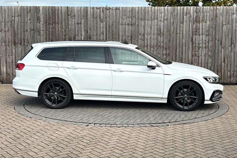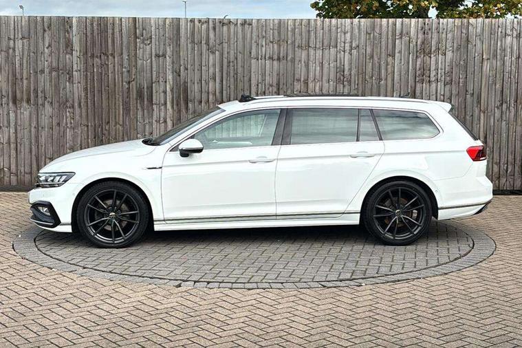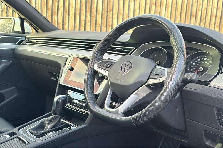 Adaptive cruise control including Front Assist, radar sensor controlled distance monitoring system, City emergency braking system, Driver alert system, Driver profile selection, Exterior temperature gauge with frost alarm, Lane assist, Low washer fluid warning light, Multifunction computer includes visual gear, One touch indicator turn signal, Proactive occupant protection, Security and service including e-call, Speed sensitive power steering, Speedo and rev counter, electronic odometer, trip, service interval display and fuel gauge, Start/Stop function, Traffic jam assist, Voice activation, Warning buzzer and light for front seatbelts unfastened, Battery regeneration during braking, Diesel particulate filter, Misfuel prevention device, Aerial for radio integrated into rear windscreen, DAB Digital radio receiver, Auto dimming interior rear view mirror, Automatic headlights with dusk sensor, Automatic leaving home and manual coming home lighting functions, Black radiator grille with chrome louvres, Body colour bumpers, Body colour door handles, Body coloured door mirrors with intergrated indicators, Chrome side window surrounds, Electric heated windscreen washer jets, Front and rear electric windows, Fully galvanised body, Gloss black finish on B pillar, Heated rear window, High level 3rd brake light, LED rear lights, LED rear number plate lights, Plastic load sill protection, Rain sensor, Rear tinted glass from B pillar backwards, approx 65% tinted, Rear window wash/wipe, Remote electrically adjustable and foldable heated door mirrors including automatic dimming function on drivers side door mirror puddle lights, Silver anodised roof rails, Warning lights for open tailgate and doors, White instrument lighting, Windscreen wipers/ intermittent wipe + 4 position delay, 12V socket in front centre console, 12V socket in luggage compartment, 40:20:40 split folding rear seats with backrest, Carbon optic side bolsters, Climate control - 3 Zone electronic air conditioning with automatic air recirculation, Driver's door storage compartment for 1.0 litre bottle, Extending luggage compartment cover with convenience opening, stowable, Front and rear interior lighting with delay and dimming function, Front centre armrest with storage compartment and two rear air vents, Front cupholders x2 with covers, Front passenger storage compartment for 1.5 litre bottle, Front seats with embroidered R Line logo on backrest, Height adjustable and removable variable boot floor, Height adjustable rear seat head restraints (x3), Height/reach adjust steering wheel, Illuminated vanity mirrors, Isofix child seat preparation, outer rear seats, Load lashing points x 4 in luggage compartment, Load through provision, Lockable, illuminated, cooled glovebox, Luggage compartment lighting, Nappa leather upholstery, Rear seat centre armrest with storage compartment, Stainless steel pedals, Storage compartment in rear doors, Storage compartment in roof console with cover, Unique R Line door sill protectors, Unique R Line front and rear carpet mats, Easy open package with full electric tailgate/ boot - Passat (Estate), R line styling pack - Passat (Estate), 3x3 point rear seatbelts, ABS (Anti locking brake system) includes BAS (Brake assist) and EBD (Electronic brake pressure distribution), Automatic post collision braking, Disc brakes front and rear, Door open warning reflectors, Driver/Front Passenger airbags, Drivers and front passengers safety optimised head restraints, longitudinal and height adjustable, Drivers knee airbag, Electronic parking brake with auto hold, First aid kit, Front and rear passenger curtain airbags, Front passenger airbag deactivation switch, Front side impact airbag, Height adjustable front 3 point seatbelts + pretensioners, Hill hold function, Pre crash preventive occupant protection, Rear seat side impact airbags, Rigid safety cell with front and rear crumple zones, Volkswagen roadside assistance, Warning light for rear seat belts if unfastened, Alarm with interior protection and deactivation via infotainment system, Electronic engine immobiliser, Chrome air vent and instrument surround, Unique R Line dark diamond flag decorative inserts in dash and door panels, Tyre mobility kit,