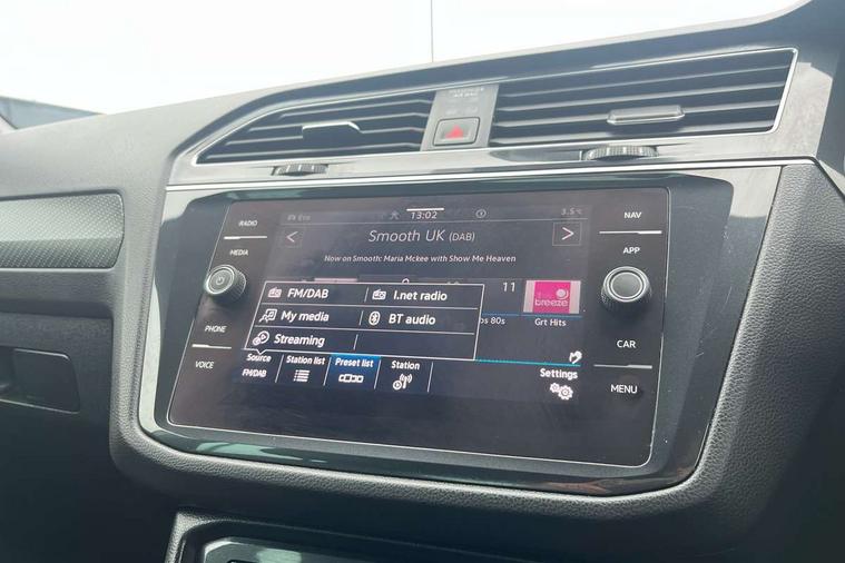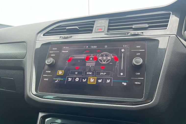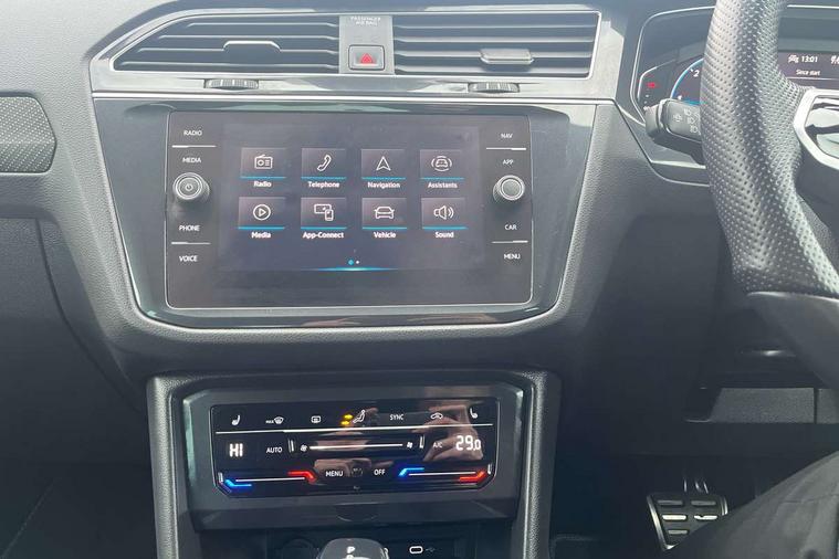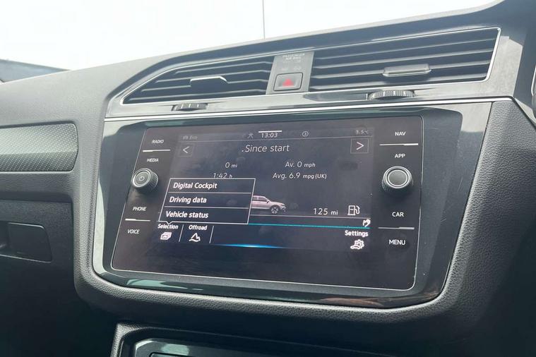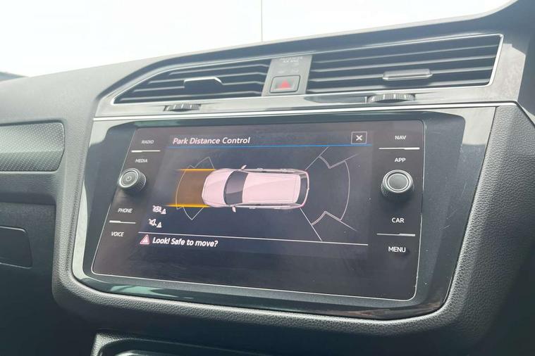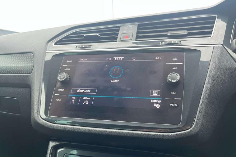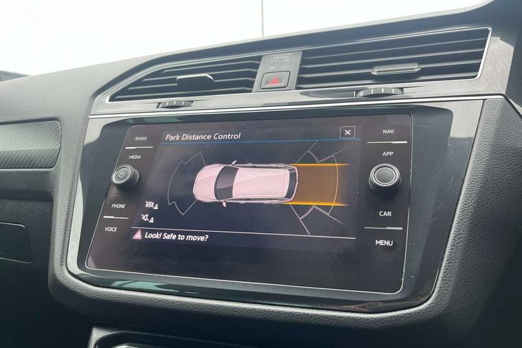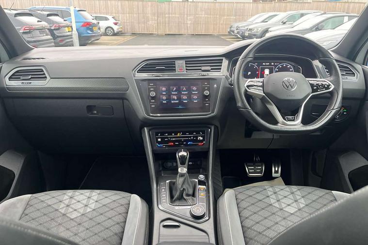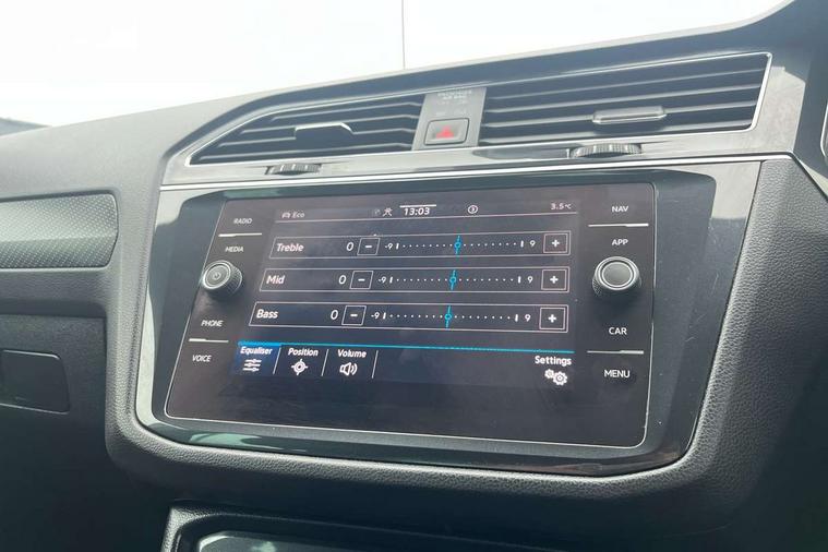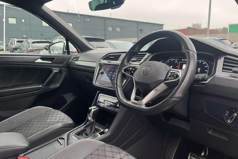Adaptive cruise control ACC stop and go including speed limiter, App-Connect incl. App-Connect Wireless for Apple CarPlay and Android Auto, Bluetooth phone integration system, Distance control assist, Driver alert system, Driver profile selection, Dynamic road sign display, eCall emergency call system, Electromechanical speed sensitive power steering, Engine start/stop button, Lane keeping system Lane Assist, Lights on warning, Multifunction front facing camera, Outside temperature display, Premium multifunction display with multi colour display, Remote control boot opening, Rev counter, Revision / skills operating concept travel assistant, Service interval indicator, Speed limit display, Start/stop system with regenerative braking, Trip computer, Warning sound and light for doors and tailgate open, All wheel drive - 4Motion, Battery regeneration during braking, Diesel particulate filter, Misfuel prevention device for diesel engine, Selective Catalytic Reduction, XDS electronic differential lock for improved traction and handling, 4 X 20 watt output, 8 Speakers, Diversity antenna for FM reception, Radio, SD card slot, Simultaneous pairing of 2 compatible mobile devices, SMS functionality - read, compose and send SMS messages using touch-screen display, Title and cover art display, USB C ports, Auto dimming interior rear view mirror, Automatic headlight control system, Body colour door handles, Chrome moldings on the side windows, Coming/leaving home lighting function, Dynamic headlight range control, Front and rear electric windows, Heated rear window, High level 3rd brake light, Laminated safety glass windshield, heat and sound insulating, LED headlamps with LED separate daytime running light and dynamic cornering light, LED rear combination lamps, LED rear number plate lights, License plate carrier in front and rear, Poor weather light and cornering light, R Line body kit, R Line side sills, Rain sensor windscreen wipers, Rear exhaust tailpipe, Rear fog lamp, Rear side wing doors, Rear spoiler in R style, Rear windscreen washer and wiper with interval delay, Side and rear windows in heat insulating glass, Trailer Stability Programme, Unique R Line badging, Windscreen wipers/ intermittent wipe + 4 position delay, 12V outlet in center console rear and in luggage compartment, 12V outlet in front and tray, 2 cup holders in front, 2 LED front reading lights, 2 LED rear reading lights, 3 bench rear seats in 2nd row, 3 rear headrests, 4 load lashing points, 40:20:40 split folding rear seats, Air Care Climatronic 3 zone automatic climate control with enhanced air filter and controls in the rear, Backrest release for left front seat, Black headlining, Brushed stainless steel pedals and footrest, Carpet mats in front and rear with decorative stitching in Gray, Climate control unit rear with touch function, Door and side trim panel in foam film, insert in leatherette, Front centre armrest, Front footwell illumination, Front seats head restraints (x-adjustment), Height adjustable front seats, Height/reach adjust steering wheel, Instrument lighting white adjustable panel illumination, Interior light with delay, Isofix Preparation 2 Rear child seats, Leather gear knob, Lockable cooled glovebox, Luggage compartment lighting, Luggage net, Rear bench seat asymetrically split folding, longitudinally movable and folding with load-through hatch and center armrest, Remote unlocking for rear seat backrest, Removable luggage cover, Removable rear headrests, Safety optimised front head restraints, Single front passenger seat, Sliding/reclining rear seats, Standard rear seat release, Storage compartment in driver's door, Storage compartment in passenger's door, Storage compartment in rear doors, Storage compartments in luggage area left and right, Storage tray on dashboard, Sun visors with illuminated vanity mirrors, Top front comfort seats, Variable boot floor, height adjustable and removable, Driver assistance pack plus - Tiguan DSG, 3 point seat belt for centre rear seats, 3 point seat belts with seat belt pretensioners for the outer rear seats, Active bonnet, Curtain airbags for front and rear passengers, Driver/Front Passenger airbags, Drivers knee airbag, Electronic parking brake with auto hold, Electronic Stability Control with driver steering recommendation, ABS, ASR, EDL, EDTC and trailer stabilization, Front assist with autonomous emergency braking (for Adaptive Cruise Control ACC up to 130 mph), Front disc brakes, Front passenger airbag deactivation, Front side airbags, Height adjustable front 3 point seatbelts + pretensioners, Hill hold control, Manual child proof rear door locks, Pedestrian monitoring system, Power assisted brakes, Proactive passenger protection system in combination with front assist, Rear disc brakes, Rigid safety cell with front and rear crumple zones, Two tone horn, Warning sound and light for front seat belts if unfastened, Anti theft alarm system with interior monitoring, backup horn and towing protection, Anti theft wheel bolts, Electronic engine immobiliser, Tool kit,