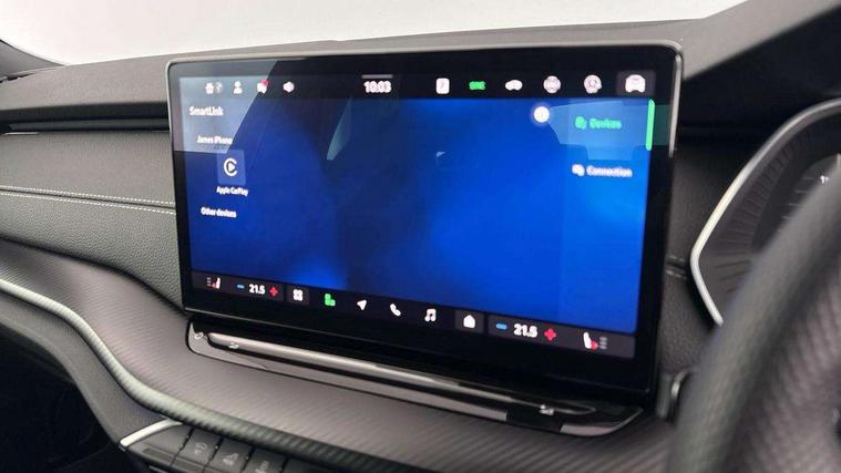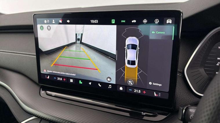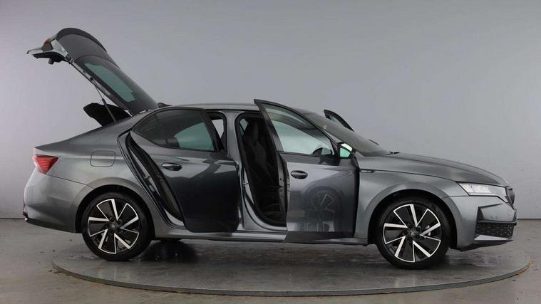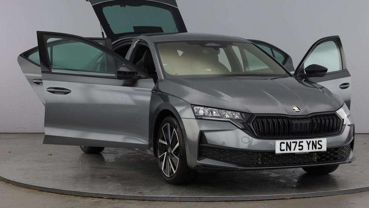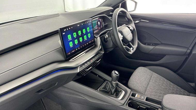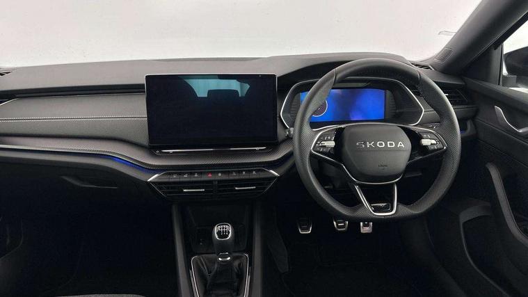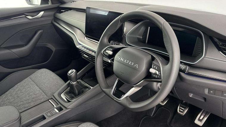 1x USB Typc C port in rear view mirror, 4x USB Type C ports - 2x in front centre console and 2x in rear (45W), Drive mode selection, Driver fatigue sensor, eCall emergency system, Front and rear parking sensors with manoeuvre assist, Front assist system, Progressive dynamic steering, Traffic sign recognition, Turn Assist, Virtual Cockpit - 10.25" digital display, Voice control system, Wireless charging (15W) with cooling function, Wireless SmartLink for Apple CarPlay and Android Auto, Sports suspension with 15mm lower, 13" touchscreen display with navigation, DAB Digital radio, Aero front windscreen wipers with intermittent function, Auto dimming rear view mirror, Body colour bumpers, Body colour door handles, Chrome strip in lower front bumper, Electric front and rear windows, Exterior gloss black sports styling including front grille, window surrounds, door mirrors and badging, Gloss black diffuser, Gloss black spoiler, Heated rear windscreen, High beam control, High level third brake light, Ice scraper in fuel cap, LED daytime running lights, Logo projection in front doors, Rain and light sensors, Rear fog light on one side and reversing lights on both sides, Rear privacy glass, Rear side wing doors, Rear wiper, 12 volt socket in boot, 3 rear headrests, 3 seat bench in 2nd row, 4 foldable roof handles, Aluminium pedals, Boot net programme, Front head restraints, Front sport seats, Heated front seats, Illuminated glovebox, Interior door handles in dark chrome, Jumbo Box storage, Luggage compartment lighting x2 lights, Mechanical rear seat release from boot, Parcel shelf - folding, Single front passenger seat, Steering wheel in black leather with black stitching, Storage compartment under passenger seat, Storage compartments in left and right of boot, Sun visors with mirrors, Sunglasses storage, Three spoke leather sports multifunction steering wheel, Ticket holder, Umbrella in door panel, Unsplit rear bench seat, split folding backrest with centre armrest with cupholder, SportLine Design Selection pack - Octavia, 3x3 point rear seat belts, Alarm with interior monitoring, tilt sensor and back up horn, Curtain airbags and front side airbags, Driver and front passenger airbags, Drivers knee airbag, Electronic parking brake, ESC including ABS, EBV, MSR, ASR, EDS, HBA, DSR, Front central airbag, Hill hold assist, ISOFIX on front passenger seat and outer rear seats, Passenger airbag deactivate switch, Three point seat belts in front and rear, Two tone horn, Tyre pressure monitor, Visual and acoustic seat belt reminder, Warning reflectors in front door, Anti-theft wheel bolts, Keyless entry and start/stop, Remote central locking, Gloss black air vent surrounds,