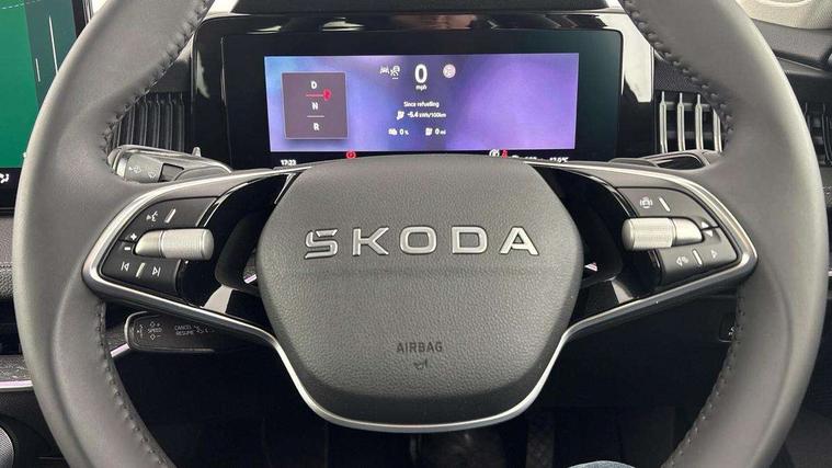 13" touchscreen display with satellite navigation, 4x USB-C ports (2x in front centre console and 2x in rear) (45W), Adaptive cruise control with speed assist, lane assist plus and traffic tram assist, Blind spot detection with door exit warning, Bluetooth system, CareConnect and Emergency Call, ChatGPT functionality, Drive mode selection, Driver fatigue sensor, Front assist with extended predictive pedestrian protection, Front cross traffic assist, Quick start all heating software functionality, Stop/start engine system, Traffic sign recognition, Turn assist with evasive assistance, Virtual Cockpit - 10.25" digital display, Voice control system, Washer for rear camera, Wireless charging for one smartphone (15W) with cooling function, Wireless smartlink apple carplay, SmartLink+ android auto, Mode 3 charging cable, DAB Digital radio, Display cleaner, FM radio connection, Web radio connection, Acoustic side windows and interior noise suppression, Backdrop lighting, Body colour door handles, Body coloured door mirrors, Chrome roof rails, Chrome window surround, Dark chrome grille surround, Dynamic range control with poor weather light and integrated fog light, Electrically adjustable, heated, folding and driver side auto-dimming door mirrors with memory function, integrated indicators and logo projection, Frameless auto-dimming rear view mirror with USB-C, Ice scraper in fuel tank cap, LED 3rd brake light, Light assist with High beam control, Light assistant (coming/leaving home/tunnel light), Privacy glass, Rear fog lights (x2), Rear roof spoiler, Rear side wing doors, Rear windscreen wiper, Unique dark chrome design logo on alloy wheels, Windscreen wipers with rain sensor, 12V socket 1x centre console 1x boot, 14-way electrically adjustable, memory, front seats with 4-way pneumatic lumbar support, and extendable thigh support with smart comfort entry aid, 2x cargo elements in boot, 2x light in boot, 3 seat bench in 2nd row, 4x foldable bag hooks in boot, 60:40 Split folding rear seats, Advanced massage function for front seats, Bottle holders in the front doors 1.5 litre bottle and rear 1.5 litre bottle, Cup holder in front with easy open mat, Front armrest with storage box, Front sports comfort seats, Heated and ventilated front seats, Height adjustable front and rear head restraints, Illuminated glovebox, Interior lights with control switches, Isofix child seat fittings in outer rear and front passenger seats, LED front and rear reading lights, Single front passenger seat, Skoda lettering on steering wheel, Storage compartment with cover, Storage pockets on back of front seats, Sun visors with illuminated vanity mirrors, Ticket holder on A Pillar, Tri zone climate control, Umbrella in driver's door, Light and view package - Superb, Transport package - Superb Estate, 3 rear seatbelts, 8 Airbags - Front driver and passenger, front side driver and passenger, centre, curtain front and rear, drivers knee, Crew protect assist, Driver and passenger seatbelts with warning light, Electronic parking brake, ESC including ABS, EBV, MSR, ASR, EDS, HBA, DSR, RBS, CBC, multi-collision brake (MKB) and Auto hold, Hill hold assist, Power operated child lock in rear doors, Alarm with interior monitoring tilt sensor and back up horn, Backrest remote release from trunk, Electronic engine immobiliser, Keyless start/stop, Remote central locking with SAFE system, Third key, Walk away locking, Decorative front door sills, Tyre repair kit,