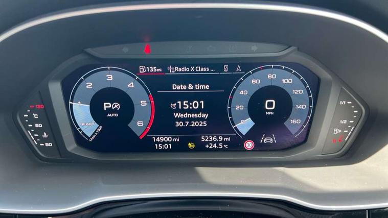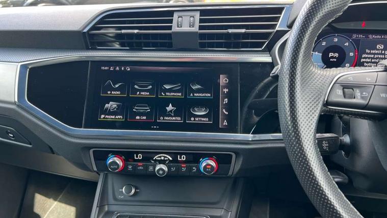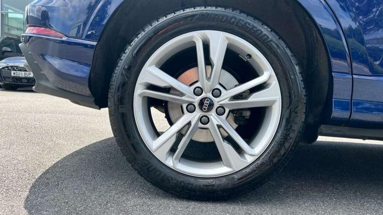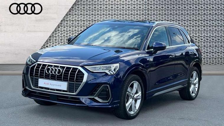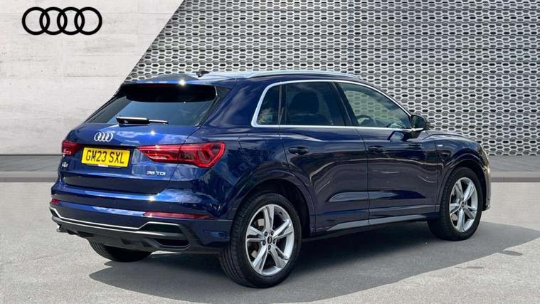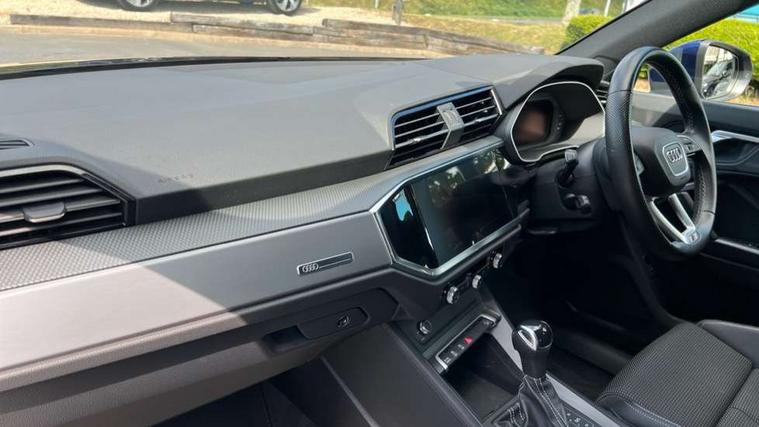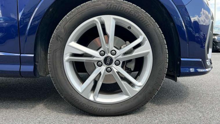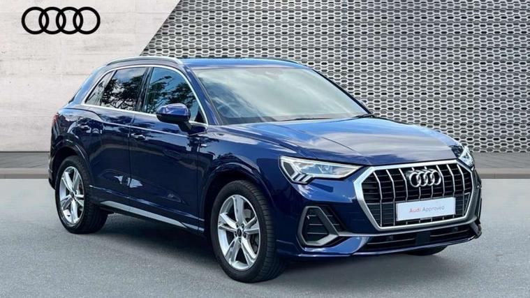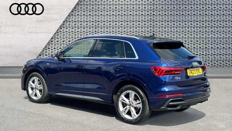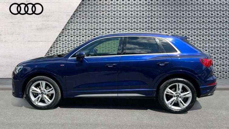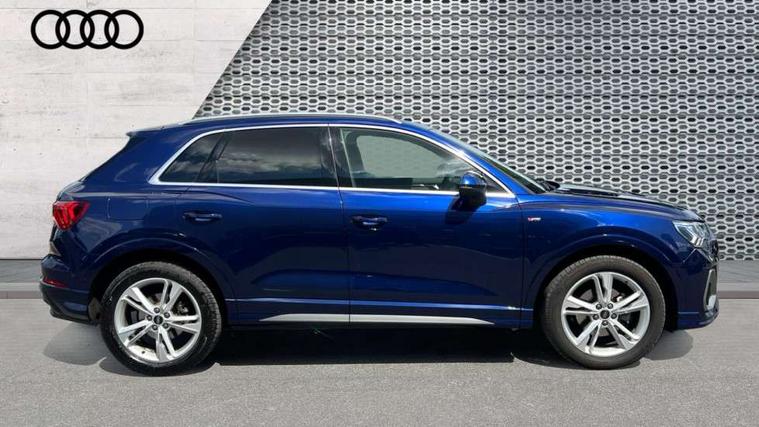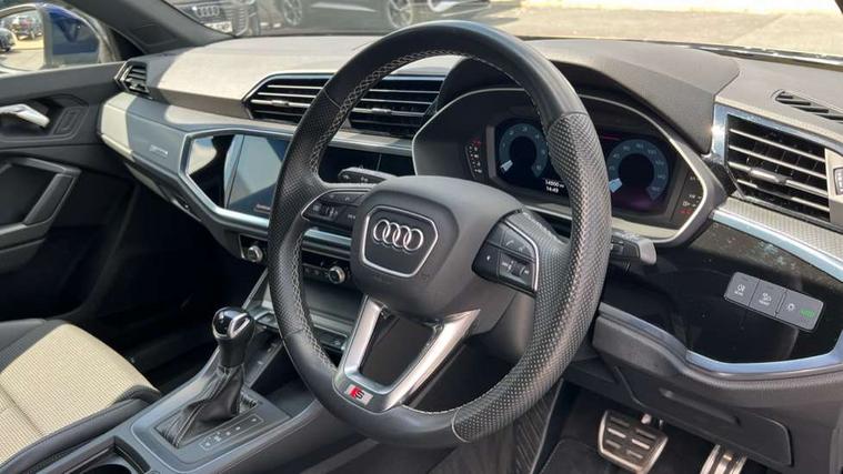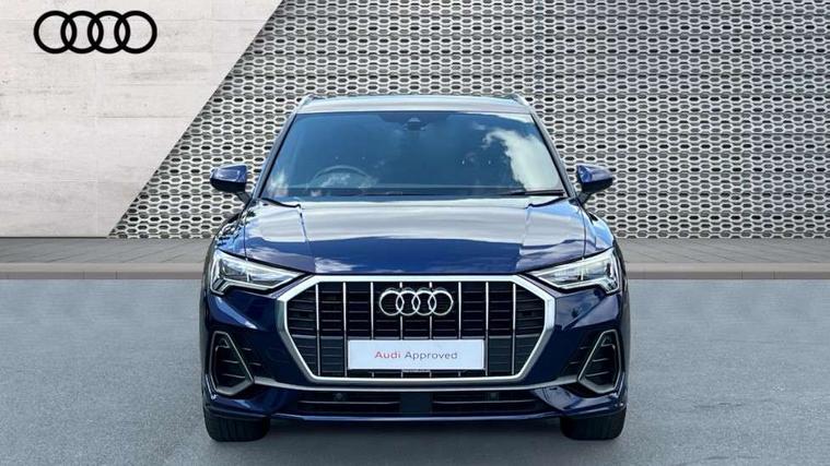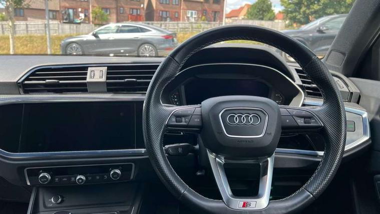 Amazon alexa Integration, Audi drive select, Audi lane departure warning, Audi smartphone interface includes wireless Apple carplay/Android Auto, Audi Virtual Cockpit - 10.25" display, Bluetooth interface, Camera based traffic sign recognition, Legal emergency call, MMI Navigation Plus with high resolution 10.1 inch touchscreen colour display, Power operated tailgate, Progressive steering, Service interval indicator, Start stop system with recuperation, Voice control system with natural language interaction, Diesel particulate filter, Sports suspension, 2 USB-C ports with charge and data functions, 6 passive loudspeakers, DAB digital radio module, Acoustic windscreen, Aluminium roof rails, Aluminium window trim, Anthracite black radiator grille, Auto dimming frameless rear view mirror, Body colour front spoiler blade, Body coloured bumpers, Electrically folding, adjustable and heated door mirrors with integrated LED side indicators and kerb view function for passenger side, Front and rear electric windows, Front fog lights, Front side air inlets in matt platinum grey, Grille vertical bars in aluminium silver/Matt, High gloss black finish B and C pillars, LED Dynamic rear indicators, LED headlights with LED daytime running lights, LED rear lights, LED third brake light, Privacy glass dark tinted rear and rear-side windows (from B-pillar backwards), Rain and light sensors, Rear diffuser grille in grained matt black, Rear diffuser strip in matt anthracite black, Rear side wing doors, Rear wiper, S line badges on front wings, S Line front and rear bumpers, Side skirt insert in matt Platinium grey, Variable front intermittent wipers, 12V socket in rear centre console, 3 seat bench in 2nd row, 3 spoke leather multifunction steering wheel features S badging and grips in perforated leather with contrast stitching, 40:20:40 folding with manual adjustment for 60:40 forwards/backwards position and backrest angle, Adjustable rear seat bench/backrest with centre armrest and cupholder, Black cloth headlining, Dual zone electronic climate control, Front and rear black floor mats with contrast stitching in rock grey, Front and rear headrests, Front and rear roof module including reading lights, Front centre armrest, Glove compartment lighting, Height and reach adjustable steering wheel, Illuminated door sill trims with S logo, ISOFIX child seat mounting for front passenger with airbag deactivation and outer rear seat including top tether attachment point for outer rear seats, Luggage compartment light, Manual front seats with height adjustment, Perforated leather gearknob, Single front passenger seat, Stainless steel luggage compartment sill finisher, Stainless steel pedals, Ambient lighting pack - Q3, Non smoking pack - Q3, 3x3 point rear seatbelts, 6 airbags - Driver, front passenger, curtain and side windows, Audi pre-sense front with pedestrain and cyclist recognition, Electrically operated child locks on rear doors, Electromechanical parking brake, Electronic stabilisation control including ABS, ASR and EDL, Front seatbelt reminder, Hill descent control, Hill hold assist, Pre sense basic, Seatbelt monitoring, Tyre pressure warning, Warning triangle and first aid kit, Anti theft alarm, Anti theft wheel bolts, Immobiliser, Remote central locking, Aluminium look interior elements, Dark matt brushed aluminium inlay, Detail dashboard around MMI touch colour display in glass look, black with surround in aluminium look, Leatherette door armrest,