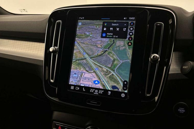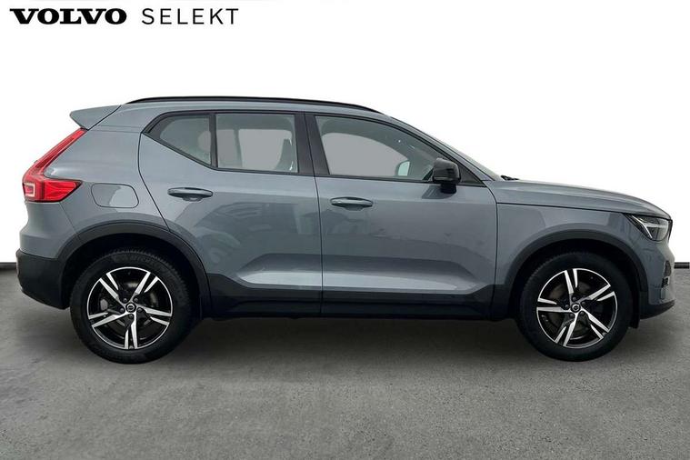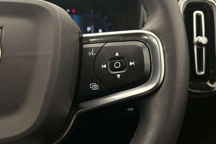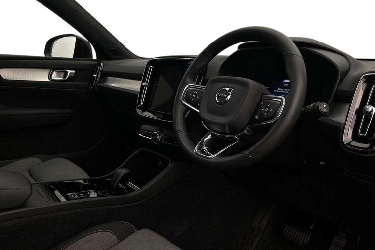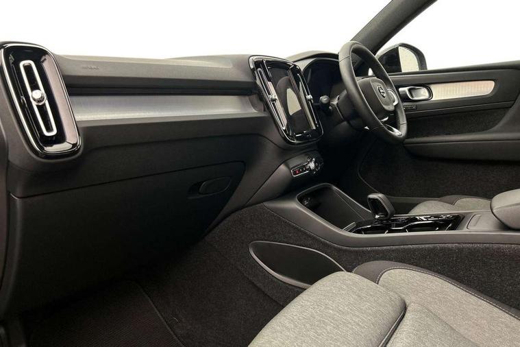 12.3" Progressive Driver Display, 9" centre console portrait touch screen, Adjustable steering wheel force, Bluetooth hands free telephone kit, Cruise control, Driver awareness - blind spot information system with steer assist, cross traffic alert with autobrake, rear collision warning and migitation, E-call, Front park assist, Google automatic services - Nav with google maps, apple carplay/android auto, voice recognition with google assistant, Hands free power tailgate, Lane keep assist with driver alert control, Oncoming Lane Mitigation, Rear park assist, Rear park assist camera, Speed limiter, Speed sensitive steering, Wireless/Inductive Mobile Phone Charging, Dynamic chassis, DAB Digital radio, High performance sound, 8 speakers/250W, front USB and 2 rear type C USB, Steering wheel mounted remote controls, Adaptive brake lights with high level LED brake lights, Auto dimming feature for exterior door mirrors, Auto dimming interior mirror, Automatic headlamp levelling, Automatic LED Headlights + Active high beam incorporating daytime running lights, Front aluminium tread plates, Front and rear electric windows, High gloss black front and rear skid plate, High gloss black mesh front grille with high gloss black surround, High gloss black window trim, Home safe and approach lighting, Integrated roof rails in high gloss black, LED front fog lights, Puddle lights, Rain sensor with automatic windscreen wiper activation, Rear side wing doors, Rear wiper, Roof antenna, Roof spoiler, Visible VIN plate, 12V socket in front tunnel console and luggage compartment, 2-Zone electronic climate control with CleanZone air quality system and pollen filter, 3 seat bench in 2nd row, 3 Spoke tailored steering wheel with chrome trim, 60/40 versatile split folding rear seat, A-pillar parking ticket holder, Ambient front door and instrumental panel lighting, Centre console cupholders and storage, Flexible load floor and grocery bag holder, Floor mats, Front door pocket and front cupholder illumination, Front footwell illumination, Front headrests, Front reading light and theatre lighting, Front seat cushion extensions, Front tunnel pocket, Glovebox bag hook, Heated front seats, Height adjustable passenger seat, Height/reach adjustable steering column, High gloss centre tunnel deco, Illuminated glovebox, Illuminated luggage compartment, Illuminated tailgate, Illuminated vanity mirrors, Integrated waste bin, Isofix attachments on outer rear seats, Load protection net, Multi directional lumbar support, Power driver seat with memory + exterior mirrors memory, Rear armrest / integral cup holders / storage tray, Rear headrests, Rear reading and courtesy lights, Single front passenger seat, Underfloor cargo storage, Climate pack without heated front seats - XC40, 3x3 point rear seatbelts, City safety with steering support with Pedestrian + cyclist + front collision warning with full auto brake and rear auto brake, Drivers knee airbag, Dual stage driver/passenger airbags, Electronic parking brake with auto hold, First aid kit, Front and outer rear seatbelt reminder and pretensioners, Front seats SIPS airbags, Hill descent control, Hill start assist, Inflatable curtain, Passenger airbag cut-off device, Power child locks on rear doors, Road sign information display, Run off Road Mitigation, Run off Road Protection, SIPS (Side Impact Protection System), Slippery road and hazard light alert, Stability and Traction Control with Spin control, Engine Drag Control and Corner Traction Control, Tyre pressure monitoring system, Vehicle deceleration control with Anti-lock Brake System, Electronic Brake Distribution and Emergency Brake Assist, Warning triangle, WHIPS whiplash protection system - front, Anti-theft alarm including immobiliser/volume sensor + level sensor, Key integrated remote control central locking + fuel flap with deadlocking system and auto open/close power windows, Keyless drive includes keyless entry and keyless start, Locking wheel nuts,