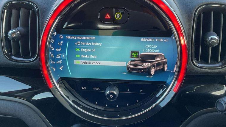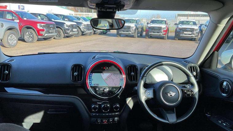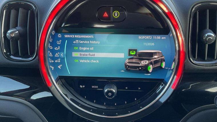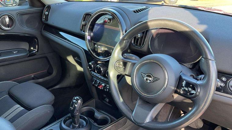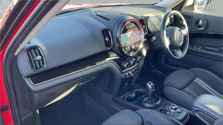 Active Guard incl speed limiting and lane departure functions with auto steering, and front collision warning with brake intervention, Automatic start/stop function with brake energy recuperation, Compatible mobile phone bluetooth with audio streaming, Cruise control with brake assist, Electro-mechanical speed dependant steering assistance, Instrument cluster, On board computer, Rear parking distance control, 51 Litre fuel tank, Double Vanos system, Fully variable valve control, High precision injection, Performance Control, Steptronic transmission with double clutch, FM tuner and DAB digital radio, Body colour fuel filler cap, Day time driving lights, Door sill strips, Dynamic brake lights, Electric windows, Heated rear window, Heated windscreen washer jets, LED fog lights, LED Headlights, Left exhaust tailpipe with chrome finisher, Model logo, Model logo on Tailgate, Radiator grille, Rain sensor with auto headlights, Rear fog lights, Rear window wiper, Side scuttle panel with integrated indicator, Split rear doors, Sun/heat protection glass, White indicator lenses, 12V socket in centre console, 3 spoke sport leather steering wheel + limiter function and audio controls, 360L luggage compartment capacity, 4 lashing eyes in luggage compartment, 40:20:40 split folding rear seats, Chrome interior highlights, Colour line - Carbon black, Cupholders, English handbook, Floor mats, Front headrests, Glove compartment, Headliner with grab handles and clothes hooks, Height and length steering column adjustment, Interior lighting with 12 basic colours selectable via toggle switch in roof, Isofix rear child seat preparation, Leather gearshift lever and handbrake gaiters, LED reading lights, vanity mirror lights, front foot well light and spotlight on front seats, Manual air conditioning, Mechanical seat adjustment, driver seat height adjust, forward/back and front seats backrest, Multifunction steering wheel, Passenger seat height adjuster, Rear headrests, Storage compartments in doors, Sunvisors with vanity mirrors, Tool kit, Excitement pack - Countryman, Navigation pack - Countryman, 2 tone horn, 3 point seatbelts on all seats, 6 Airbags - front, side, head and seat belt tensioners, Anti-lock braking system (ABS), DSC - Dynamic Stability Control, Electronic handbrake, Front and rear disc brakes, Hill start assist, Tyre pressure monitoring system, Alarm system with tilt sensor, monitoring doors, bonnet interior and tailgate, Auto drive away locking, Deadlocking function, Electronic vehicle immobiliser, Locking wheel bolts, Start/stop toggle with keyless go,
