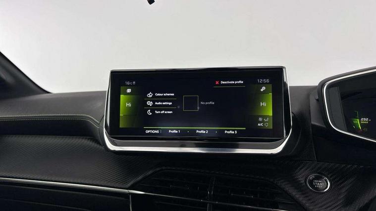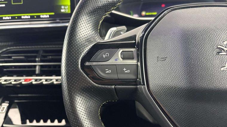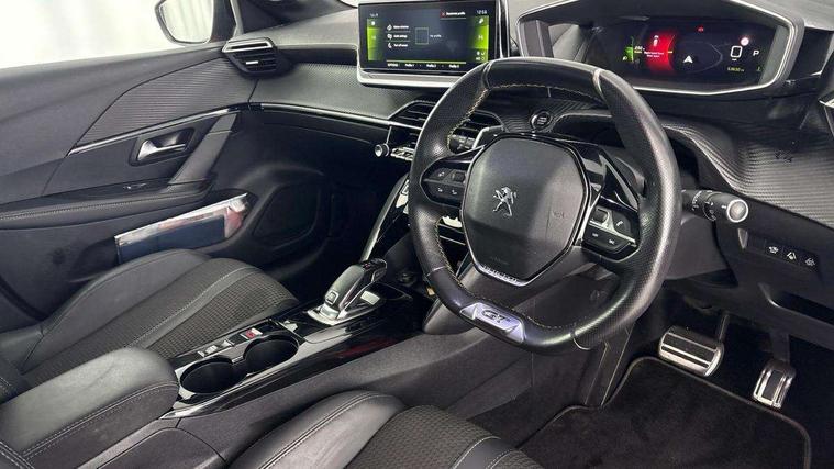 Bluetooth telephone facility, Driver attention warning, Exterior temperature indicator with ice warning, Front and rear parking sensors, Lane keep assist, Mirror screen with mirror link, apple carplay and android auto, Multi function trip computer, PEUGEOT i-Cockpit with compact steering wheel, PEUGEOT i-Cockpit with configurable 3D headup instrument panel, PEUGEOT SOS and assistance, Programmable cruise control and speed limiter, Push button start, Smart phone docking station, Smartphone charging plate, Speed limit recognition and recommendation, Visio Park 1 with 180 degree Colour reversing camera, 2 front USB socket with USB-C, 2x USB sockets in rear, 6 speakers radio with mp3 compatible, DAB Digital radio, Voice recognition for radio, navigation and telephony features, 2 X Rear number plate lights, Automatic hazard light activation upon heavy brake application, Automatic lights, Automatic windscreen wipers, Body coloured exterior door handles, Dark tinted rear side and tailgate windows, Diamond Black roof, Electric front windows + one touch + anti-pinch, Electrically adjustable, heated and power folding door mirrors, Extended diamond black rear spoiler, Follow me home headlights, Frameless electrochrome interior rear view mirror, Front windscreen wiper with magic wash cleaning system, Full LED headlights with smartbeam assist, Gloss black finish on B pillar, Gloss black rear cluster connecting strip, Gloss black wheel arch extensions, Gloss black window surround, GT Line model designation badging on C pillar, GT Line model designation badging on tailgate, Headlights left on audible warning, LED daytime running lights with 3 claw headlight with distinctive tooth design, LED side indicator lights integrated into door mirrors, Model designation badges front and rear, Nera black door mirror shells, Radiator grille - Dark chrome chequered and gloss black edge trim, Rear bumper with gloss black finish, Rear full LED 3D peugeot signature claw effect lights with daylight function, Rear lower bumper diffuser effect trim in gloss black, Rear reversing lights, Rear windscreen wiper triggered automatically in reverse gear, Stainless steel door sill scuff plates, Tailgate with heated rear windscreen and wiper blade, Twin chrome exhaust tailpipes, 1/3 to 2/3 split folding rear seats, 12V socket, 8 Colour personalisable ambient lighting, Aluminium pedals and foot rest, Automatic gear lever in full grain leather and satin chrome, Driver and front passenger seat manual adjustment in longitudinal and back rest angle, Driver and front passenger seat mechanical height adjustment, Driver and front passenger sport seats, Dual zone electronic climate control, Electric power steering with reach and rake adjustable steering column, Front and rear carpet mats in black with lime green stitch detail, Front centre armrest with storage compartment, Front LED interior light with 2 reading spotlights and rear interior light with timer, ISOFIX child seat mounting points on passenger seat, Lime green contrast stitching to armrest, front centre console, door panels and dashboard facia, Map pockets on the backs of the front seats, Mistral full grain perforated leather steering wheel with aikinite stitch detail and satin chrome 'GT' emblem, Piano keys gloss black plated toggle switches to access main functions of the vehicle, Roof lining - Mistral black, Seatbelt unfastened on the move audible and visual alert for front and rear seats, 2x 2nd row ISOFIX child seat mountings, 3 rear 3 point seatbelts, ABS (Anti-lock Braking System) with EBD (Electronic Brakeforce Distribution) and EBA (Emergency Braking Assistance), Active safety brake with night function/cyclists/pedestrians, Child locking functionality on rear doors, Driver and passenger airbags with Passenger airbag deactivation system, Driver/front passenger side airbags, Electric parking brake, ESP with Hill Assist, Front and rear curtain airbags, Front and rear disc brakes, Front optimised safety headrests and 3 x rear retractable headrests with height adjustable, Front three point retractable seatbelts with force limiters, Tyre pressure sensor, Automatic door locking when moving off, Deadlock, Electronic code immobiliser, Thatcham Cat.1 alarm, Carbon effect Dashboard, front and rear door panel finish, 17" Camden diamond cut two tone alloy wheels, Space saver spare wheel,