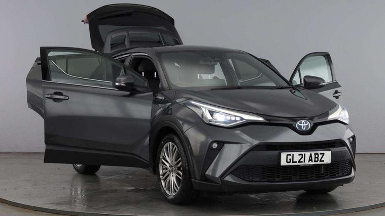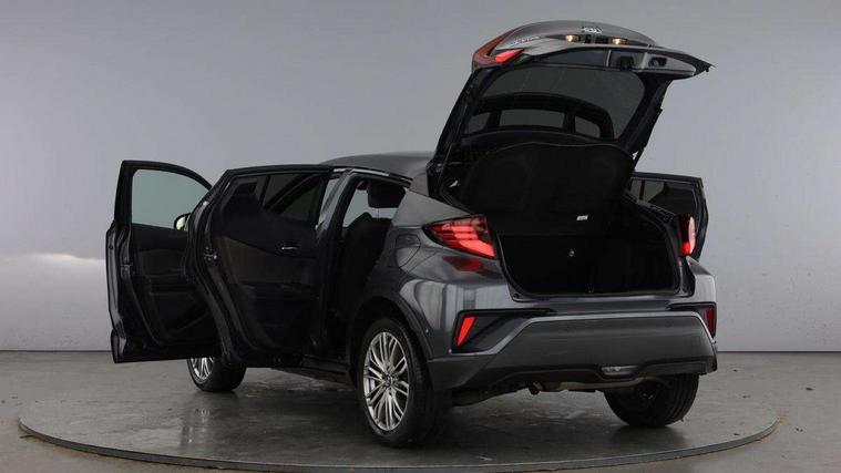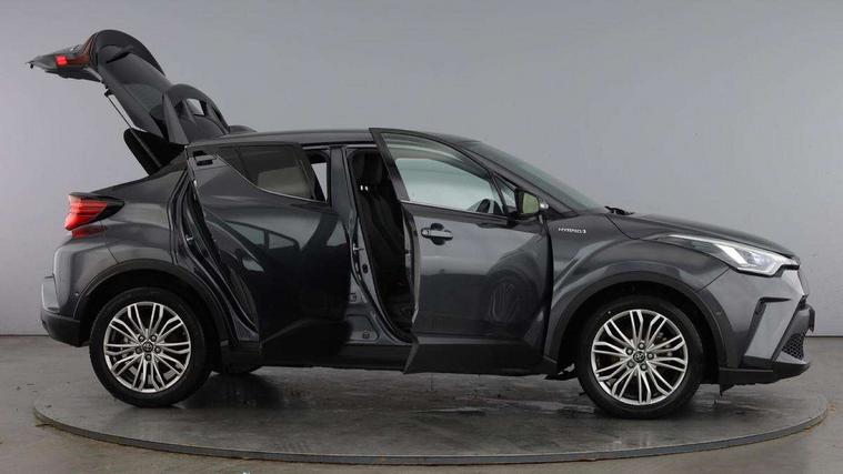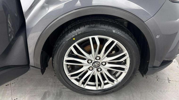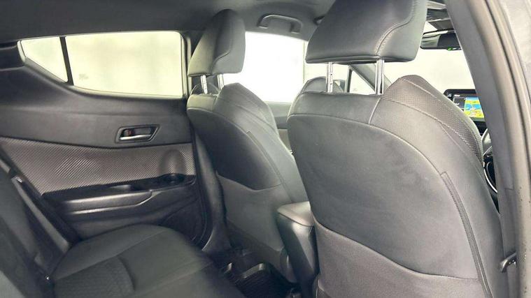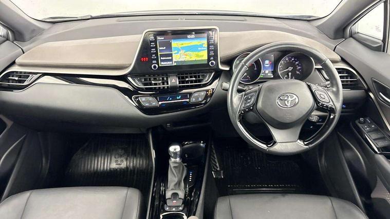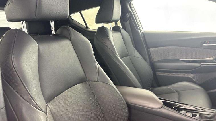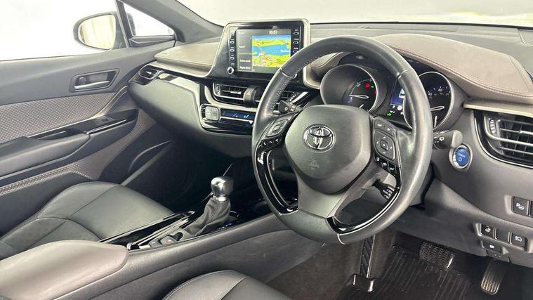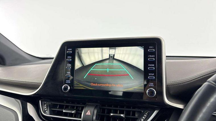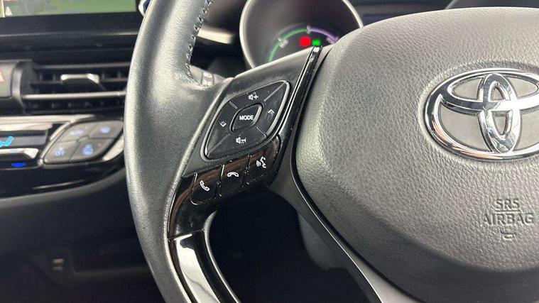 4.2" coloured TFT screen for multi-information display, Adaptive cruise control, Bluetooth connectivity, Electric power steering, Hybrid system indicator, Lane departure alert with steering control, Remote boot door release in cabin, Remote boot door release in key, Reversing camera, Road sign assist - RSA, Simple Intelligent parking assist, Touch 2 Go navigation system, Trip computer, Voice recognition, Vehicle Stability Control (VSC), 6 speakers, AM/FM radio, DAB Radio (Digital Audio Broadcasting), Toyota touch 2 multimedia system with 8" display, USB connector, Wi-fi connectivity, Adaptive front light system, Adaptive LED Headlights, Anti-jam protection on power windows, Auto high beam, Auto up and down function on all power windows, Automatic headlight levelling, Automatic headlights, Automatic headlights cut-off, Black and body coloured rear bumper, Black upper front grille, Body colour door handles, Body colour door mirrors, Body colour front spoiler lip, Body coloured front bumper, Boot door release with push button, Electric heated door mirrors, Follow me home headlights, Front and rear power windows, Hard tonneau cover, Honeycomb lower front grille, LED daytime running lights, LED fog lights, LED front light guide, LED High mounted stop light, LED rear brake lights, LED rear combination lights, Noise reduction layer on front windows and windscreen, Power adjustable door mirrors, Privacy glass, Rear sequential indicators, Rear spoiler, Rear tailgate, Rear window defogger, Rear window wiper, Shark fin antenna, UV-filter on driver and passenger windows, UV-filter on rear windows, 12v power outlet - front, 3 rear headrests, 3 spoke leather steering wheel, 60/40 split folding rear seat, Adjustable rear headrests, Adjustable speed limiter switch on steering wheel, Assist grips front and centre pillar, Audio and telephone switches on steering wheel, Black front door assist grips, Blue ambient lighting on front cup holders, Blue ambient lighting on front doors, Boot light, Chrome interior door handles, Driver and front passenger personal light, Driver and front passenger Whiplash Injury Lessening seats, Driver and passenger seatback pockets, Dual zone automatic air conditioning, Floor mats, Front cupholders, Front head restraints, Front sports seats, Glovebox with internal light, Heated driver and front passenger seats, Heated steering wheel, Hooks for luggage holding net, Humidifying Nanoe air purifier, Illuminated entry system, Isofix attachments on rear seats, Leather gearshift, Light on driver sun visor, Light on passenger sun visor, Manual telescopic steering wheel, Manual tilt steering wheel, Microphone on front personal light, Mirror on driver sun visor, Mirror on passenger sun visor, Multimedia switches on steering wheel, Pollen filter, Power adjustable lumbar support on driver seat, Power tilting cushion on driver seat, Shopping bag hooks, Slow opening on lower glovebox, Voice recognition switch on steering wheel, Leather pack - C-HR, Tech with parking sensor pack - C-HR, 16 Disk front wheel brake, 3x3 point rear seatbelts, ABS+EBD+Brake assist, Electronic parking brake, Front and rear seatbelt reminder, Front passenger airbag on/off switch, Hill start assist control (HAC), Pre collision system with pedestrian detection, Pre-tensioners and force limiters, Rear door child safety locks, SRS Airbags - Driver + Front passenger, front side, front and rear curtain and driver's knee airbags, Toyota safety sense, Tyre pressure monitoring system, Acoustic vehicle alert system (AVAS), Glass-breaking alarm sensors, Immobiliser, Intrusion alarm, Intrusion sensor, Motion sensor alarm, Power door locks, Power passenger window lock, Remote central locking, Black lower dashboard, Dark brown upper dashboard, Piano black console, Silver deco line on upper dashboard, Tyre repair kit,