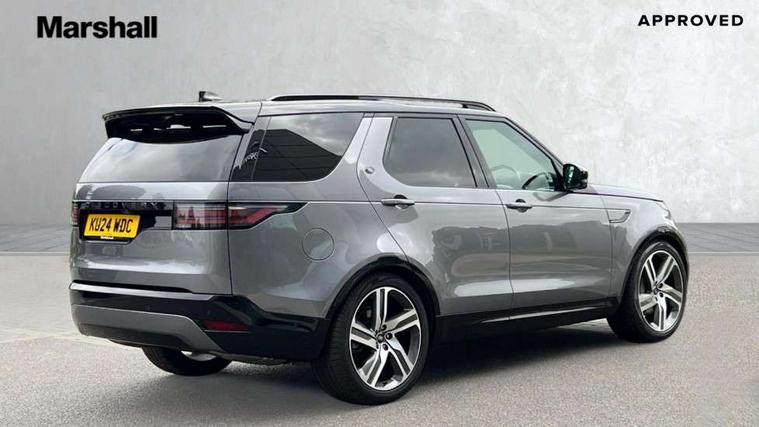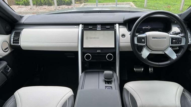 11.4" touchscreen, 3D surround camera, Adaptive cruise control, Android Auto, Apple car play, Blind spot assist, Driver condition monitor, Electric power assisted steering (EPAS), Emergency services call system, Front and rear parking aid, Interactive driver display, Lane keep assist, Power inner tailgate, Power tailgate/boot lid, Push button start, Rear collision monitor, Rear traffic monitor, Remote, Remote boot release, Service interval indicator, Speed proportional steering, Sportshift selector, Stop/start system, Traffic sign recognition with adaptive speed limiter, Trip computer, Wade Sensing, Adaptive dynamics, Dynamic stability control, Electronic air suspension, Front axle open differential, Digital Audio Broadcast radio-DAB, Dynamic volume control, Pivi pro connected, USB/aux input socket, Acoustic laminated windscreen, Animated directional indicators, Auto dimming interior rear view mirror, Automatic headlight levelling, Automatic headlights, Body colour bumpers, Body colour door handles, Centre high mounted stop light, D300 badge, Electric heated/power fold memory door mirrors with approach lights and auto dimming driver side, Electric windows with one touch open/close and anti-trap, Heated rear window, Heated windscreen, LED darkend tail lights, Matrix LED headlights with signature DRL, Narvik black Discovery script, Privacy glass, Puddle lights, Rain sensing windscreen wipers, Rear fog lights, Rear side wing doors, Rear wash/wipe, Trailer stability assist, Variable intermittent wiper, 12V power sockets, 12V USB charging socket in loadspace, 2 seat bench in 3rd row, 3 seat bench in 2nd row, 60/40 electric heated folding rear seats with manual slide and powered recline, centre headrest and armrest, Central hinged twin lidded storage, Configurable cabin lighting, Ebony morzine headlining, Electric adjustable steering column, First and second row door bins, Footwell lights, Front and rear 12V with front USB, Front passenger seat isofix location point, In-facia storage, Isofix child seat preparation for front passenger seat, Leather steering wheel, Loadspace cover, Loadspace Hook, Loadspace light, Lockable glovebox, Lower centre console storage, Luggage tie downs in loadspace, Multi function steering wheel, Overhead lighting console, Premium carpet mats, Rear ISOFIX, Shopping bag hook, Single front passenger seat, Storage glovebox, Sunvisors with illuminated vanity mirrors, Third row storage, Treadplates with metal inserts, Twin front cupholders with cover, USB with 12V socket in centre console, Black exterior pack - Discovery Dynamic SE/HSE, Online pack with data plan - Discovery, 3x3 point rear seatbelts, Anti-lock braking system (ABS), Brake pre-fill technology, Cornering brake control, Curtain airbags, Customer configurable autolock, Driver and passenger airbags, EBD - Electronic brakeforce distribution, Electronic traction control, Emergency brake assist, Emergency braking, ESP, Front side airbags, Gradient acceleration control, Hill descent control, Hill launch assist, Power operated child locks, Rear airbags, Roll stability control, Seat belt reminder, Torque vectoring brake, Tyre pressure monitoring system, Immobiliser, Intrusion sensor, Keyless entry, Locking wheel nuts, Remote central locking, All terrain tyres,