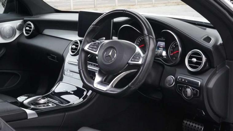 8.4" high resolution display, Active park assist with parktronic system, AMG instrument cluster, Attention assist, Bluetooth interface for hands free telephone, Collision prevention assist plus, COMAND online nav with colour display, radio/CD/DVD/MP3, SD card, 10GB music, Emergency Call system, speed limit assist, linguatronic voice control, DYNAMIC SELECT with a choice of driving modes (ECO, Comfort, Sport, Sport+ and Individual), Instrument cluster with 5.5-inch TFT multi-function display, Multi function trip computer, Outside temperature gauge, Remote boot release, Service indicator (ASSYST), Speed sensitive steering, 66 litre fuel tank, AMG rear axle limited slip differential lock, AMG Ride Control sports suspension, 2 USB ports, Burmester surround sound system, DAB digital radio module, Frontbass loudspeakers, Steering column mounted multifunction controls, Adaptive brake lights, AMG boot lid spoiler in body colour, AMG front, rear apron and side skirts, AMG performance exhaust system, Auto dimming driver's door mirror, Auto dimming rear view mirror, Body coloured bumpers, Electric adjustable/heated/folding door mirrors, Electric front sliding and fixed rear panoramic glass sunroof, Electric windows one touch open/close, Green tinted glass, Heated windscreen washers, Intelligent LED headlight system with active Light System, cornering light function, Adaptive High Beam Assist and blue LED locator lighting, LED daytime running lights, LED tail lights, Rain sensor windscreen wipers, Side windows surround in polished aluminium, 2 cupholders in front centre console, 2 rear head restraints, 3 spoke AMG Performance steering wheel in black nappa leather, 4-way lumbar support for drivers seat, 4-way lumbar support for front passenger seat, 40:20:40 split folding rear seats, Advanced multicolour ambient light and LED interior light, AMG floormats, AMG illuminated door sills, Artico man-made leather dashboard and beltline with contrast stitching, Auto dual-zone climate control system, Auto Mercedes-Benz child seat recognition sensor, Door courtesy lamps, Electric front seats, Electric height adjustable front seats, Electric height/reach adjustable steering column, Front centre armrest with storage compartment, Front footwell illumination, Heated front seats, Illuminated front/rear door handle recesses, Illuminated glovebox, Isofix rear child seat fastenings, LED reading lights, Nappa leather upholstery, Sports pedals with stainless steel surfaces and rubber studs, Steering wheel gearshift paddles, Sunvisors with illuminated vanity mirrors, Exclusive pack - C class, Memory pack - C Class, Stowage space pack - C Class, 2 rear seatbelts, ABS + BAS, Active bonnet, Adaptive brake system, AMG high performance braking system, Drivers knee airbag, Drivers pelvis airbag, Dual stage driver/passenger airbags, Electronic parking brake, ESP with ASR, Front side airbags, Hill hold control, Hill start assist, Silver painted brake calipers, Tyre pressure monitoring system, Warning triangle and first aid kit, Window airbags, Alarm system/interior protection/immobiliser, Chrome surround in electric key, Keyless entry and keyless start, Remote central locking, High gloss black with aluminium trim, Tyre inflation kit,