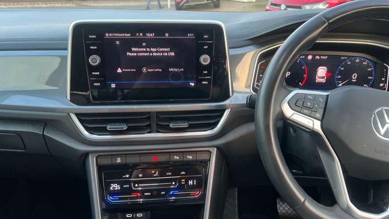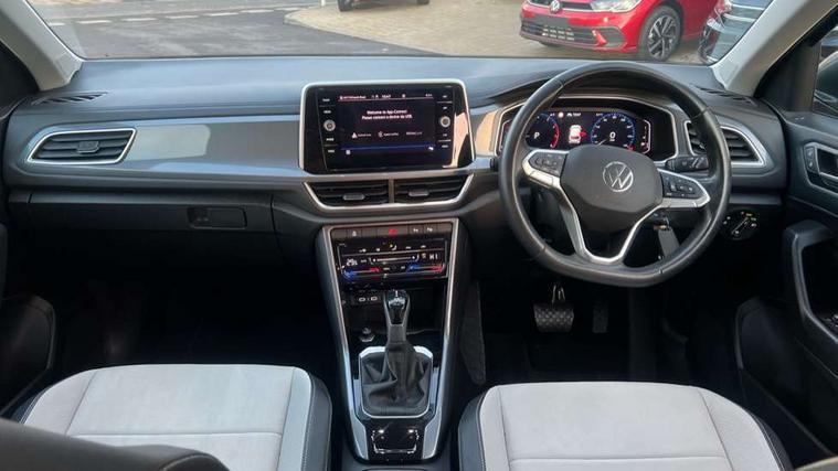 10.25" Digital cockpit pro, Bluetooth mobile phone interface, Driver alert system with fatigue detection, Driver tips and journey analysis, Emergency call service, Lane keeping system Lane Assist, Modified key software - reduce switch off time for key status change to Long no motion, Online services, Park assist including front and rear parking sensors, Service interval indicator, Tailgate/trunk lid release from outside, Think blue trainer driver tips and journey analysis, Warning sound and light for front seatbelts unfastened, Wireless app connect, Battery regeneration during braking, Start/stop function with battery regeneration, Diversity antenna for FM reception, Front and rear 6 speakers, Music playback - MP3, WMA and AAC files, Premium USB cable in choice of either Apple or Android smartphone compatibility, SD card slot, Simultaneous pairing of 2 compatible mobile devices, Title and cover art display, We Connect and We Connect Plus functionality, 3rd brake light, Auto dimming interior rear view mirror, Automatic hazard lights activation under emergency braking, Automatic headlight control with LED separate daytime running lights with coming/leaving home function, Body colour sports bumpers with silver metallic underbody fascia, Dynamic headlight range control with self adjusting whilst driving, Extended roof spoiler, Exterior mirrors aspherical on driver side, convex on front passenger side, External USB type C socket and charging sockets, Front windscreen wiper with intermittent wipe and 4 position delay, Heated rear window, LED Plus headlamps, LED rear combination lamps, LED rear number plate lights, LED tail lamp rear comination lamps, Light mode for poor weather, rain, fog or snow, Power windows with comfort operation and circuit breaker, Rain sensor, Rear exhaust tailpipe, Rear fog light on one side and reversing lights on both sides, Rear side wing doors, Rear wash/wipe with intermittent wipe setting, Remote electrically foldable door mirrors, puddle lights and reverse activated passenger's door mirror, 12V power socket in centre console, 3 rear head restraints, 3 seat bench in 2nd row, 4 load lashing points in luggage compartment, Air care climatronic air conditoning system with active combination filter and 2-zone temperature control, Chrome plated radiator grille inserts, air vent surrounds and light switch surrounds, Door and side trim panel with leatherette insert, Drawer under drivers seat, Front + rear carpet mats, Front centre armrest, Front comfort sports seats, Front cupholders x 2, Front footwell illumination, Instrument lighting, white adjustable panel illumination, Interior ambient lighting and surround lighting, Interior light delay, Isofix child seat preparation, Leather gearshift handle, LED interior light with switch off delay/dimmer and 2 front/rear LED reading lights, Load-through provision with cup holder when folded down ('Unsplit rear seat bench, split folding backrest, with centre armrest), Luggage compartment lighting, Non-folding front passenger seat backrest, Single front passenger seat, Storage compartment in left and right luggage area, Storage compartment in rear doors, Storage compartments in driver and front passenger doors, Sunvisors with illuminated vanity mirrors, Variable boot floor, height adjustable and removable, Driver assistance pack without proactive passenger protection - T-Roc, 3 point height adj front seatbelts + pretensioners, 3 point seatbelts in outer rear with ECE label, ABS, Child locks on rear doors, Driver and front passenger airbag with front passenger airbag deactivation, Driver and front passenger safety-optimised head restraints, Drivers seatbelt reminder, Electronic parking brake, Electronic Stability Control (ESC) inc EDL (Electronic Differential Lock) and ASR (Traction Control), Front and rear passengers curtain airbag system including front side airbags, Front assist with city emergency braking and pedestrian monitoring, Front seat side impact airbags, Predictive pedestrian protection, Rear disc brakes, Single tone horn, Tyre pressure loss indicator, Volkswagen roadside assistance, Alarm with interior protection, Anti-theft alarm system with interior monitoring, backup horn, and towing protection, Remote central locking with SAFELOCK, radio remote control with 2 remote control folding keys, Trims for alloy wheels,