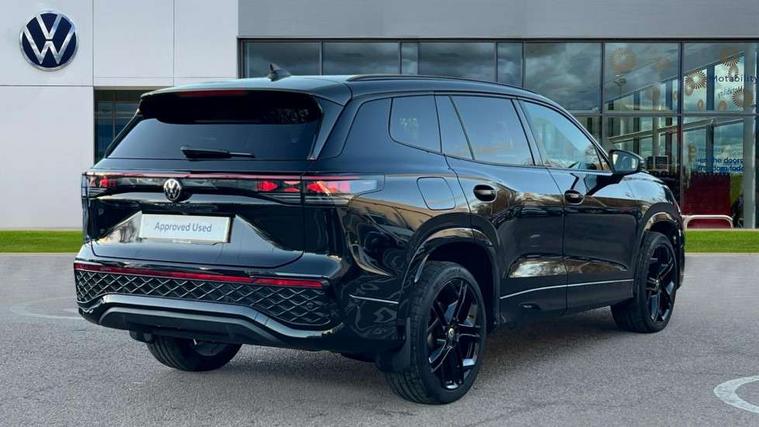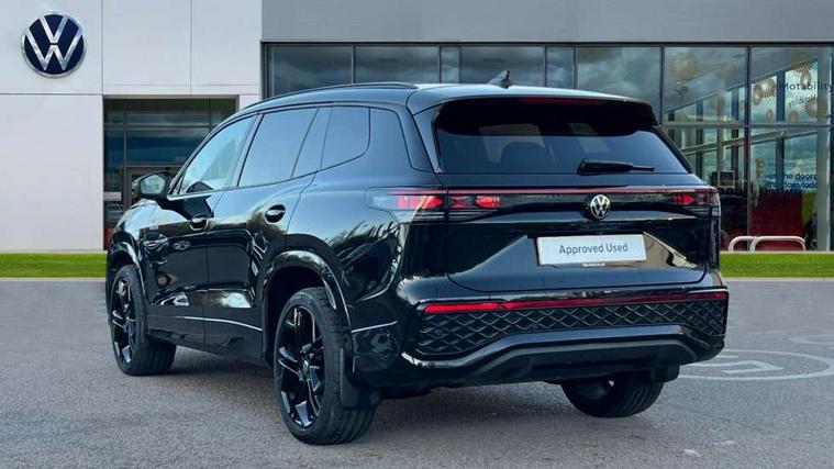 Adaptive cruise control (ACC), Digital Cockpit Pro - 10.25" high resolution dash display screen with customisable menus and information, Driver alert system, Driver attention monitoring system, Dynamic road sign display, E-Sim card for online connectivity, eCall emergency call system, Lane change system, Side assist, Rear traffic alert and Exit warning system, Multifunction front facing camera, Oncoming vehicle braking when turning including swerve support, Start/stop system with regenerative braking, Voice activation spoken voice commands for telephone and navigation system, Warning signal and warning light for front and rear seatbelts not fastened, Wireless App-Connect, All wheel drive - 4Motion, Digital radio reception (DAB), Diversity antenna for FM reception, Air intake with Chrome trim, Auto dimming interior rear view mirror, Automatic headlight control system, Body colour door handles, Chrome moldings on the side windows, Coming/leaving home lighting function, Dynamic headlight range control with dynamic cornering light, Exterior mirrors convex on the left and aspherical on the right, Heat insulating glass in side and rear windows, Illuminated Volkswagen logo rear with animation, Laminated safety glass windshield, heat insulating, LED 3rd brake light, LED separate signature day time running light, Puddle lights, Rain sensor windscreen wipers, Rear fog light on one side, reversing light on both sides, Rear side wing doors, Rear wiper, Reverse activated passenger's door mirror, Surround lighting with welcome light, Volkswagen logo in front, illuminated lighting animation with wake up/goodbye scenario and illuminated door handles, 10 colour interior ambient lighting, 12V outlet in center console rear and in luggage compartment, 3 rear headrests, 3 rear seat bench in 2nd row, backrest split folding with centre armrest and 2 seats in 3rd row of seats, Black roof lining, Brushed stainless steel pedals, Carpet mats, front and rear, Centre console with illuminated storage compartment with sliding cover and two drinks holders, Chrome elements on the mirror switch and power window switches and door pulls, Door and side trim panel insert in Art velour, Flat luggage compartment floor, Front centre armrest, Front scuff plates in aluminium, ISOFIX anchors for child seats on outer rear seats and front passenger seat compatible with i-Size, Mechanical rear seat release, Power adjustable lumbar support in front, Single front passenger seat, Sports comfort seats in front, Sun visors with illuminated vanity mirrors, 3 Point seat belts in front with pretensioners, 3 point seatbelts in outer rear with ECE label, Autonomous emergency braking front assist with pedestrian and cyclist monitoring, Driver and front passenger airbag with front passenger airbag deactivation, Electronic parking brake with auto hold, First aid kit with warning triangle and safety vest, Front and rear curtain airbags, Front and rear side airbags, Front centre airbag, Front disc brakes, Hill decent control, Hill start assist, Rear disc brakes, Two tone horn, Decorative material set R-Line, Interior door handle in matte chrome,
